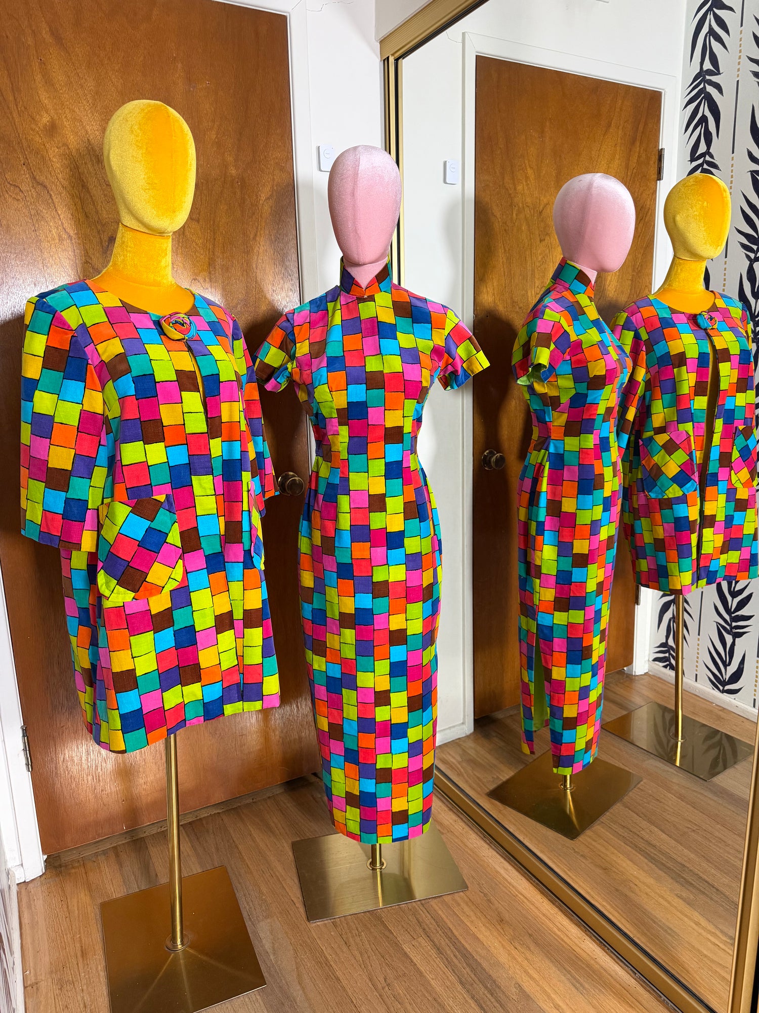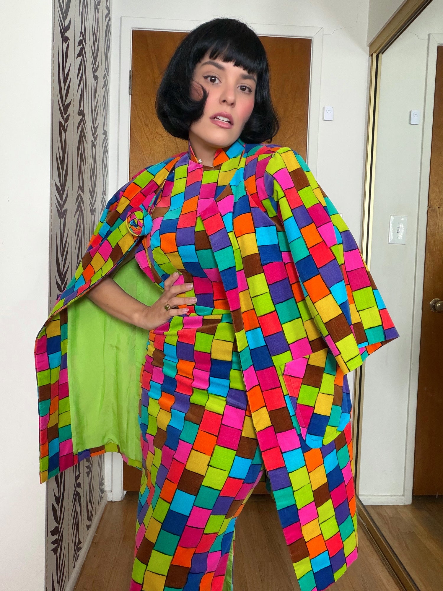 Vintage 60s Two Potato of Laguna Beach Neon Bell Sleeves Maxi Caftan Dress Fits S-L