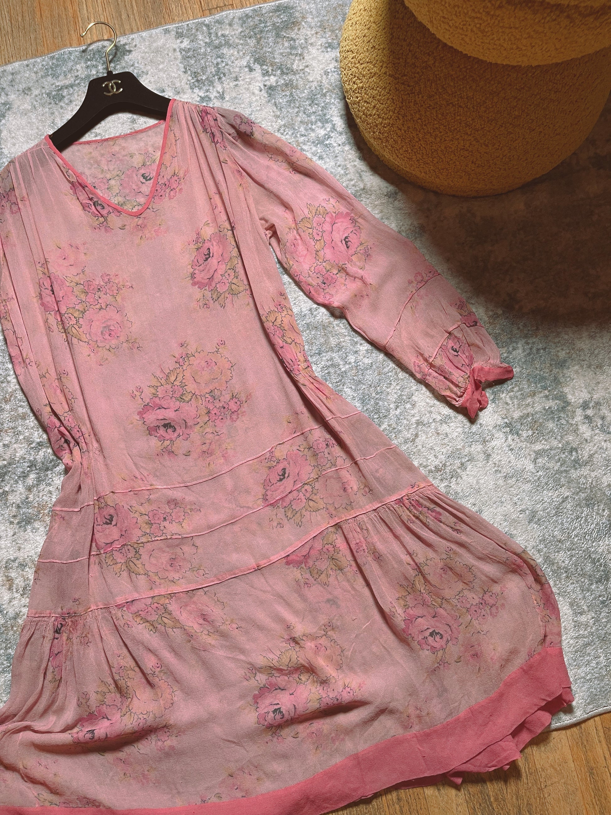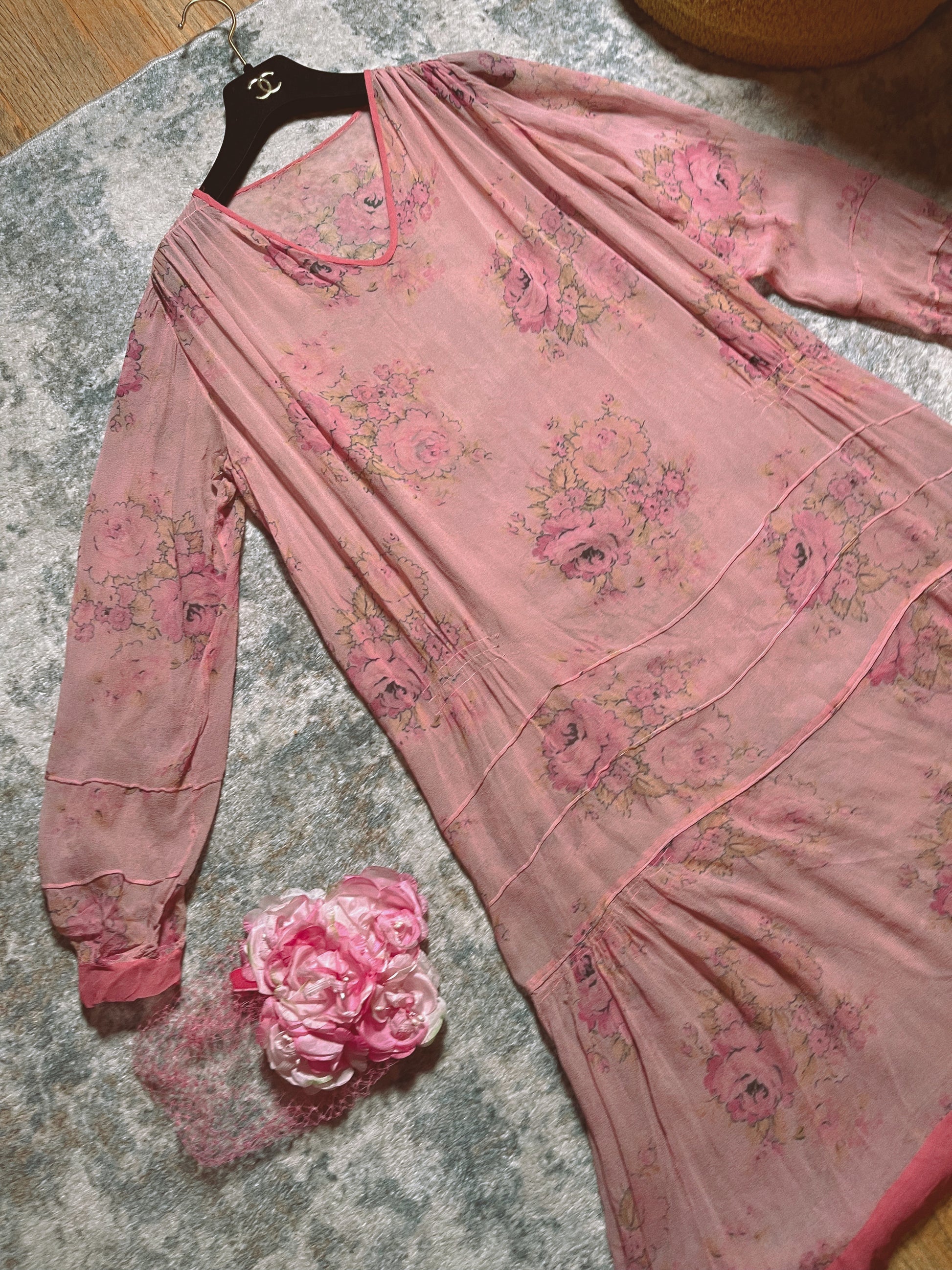 1920s Silk Chiffon Floral Print Dress Fits Most Sizes. It’s Absolutely stunning and can be worn sheer or with a slip dress.