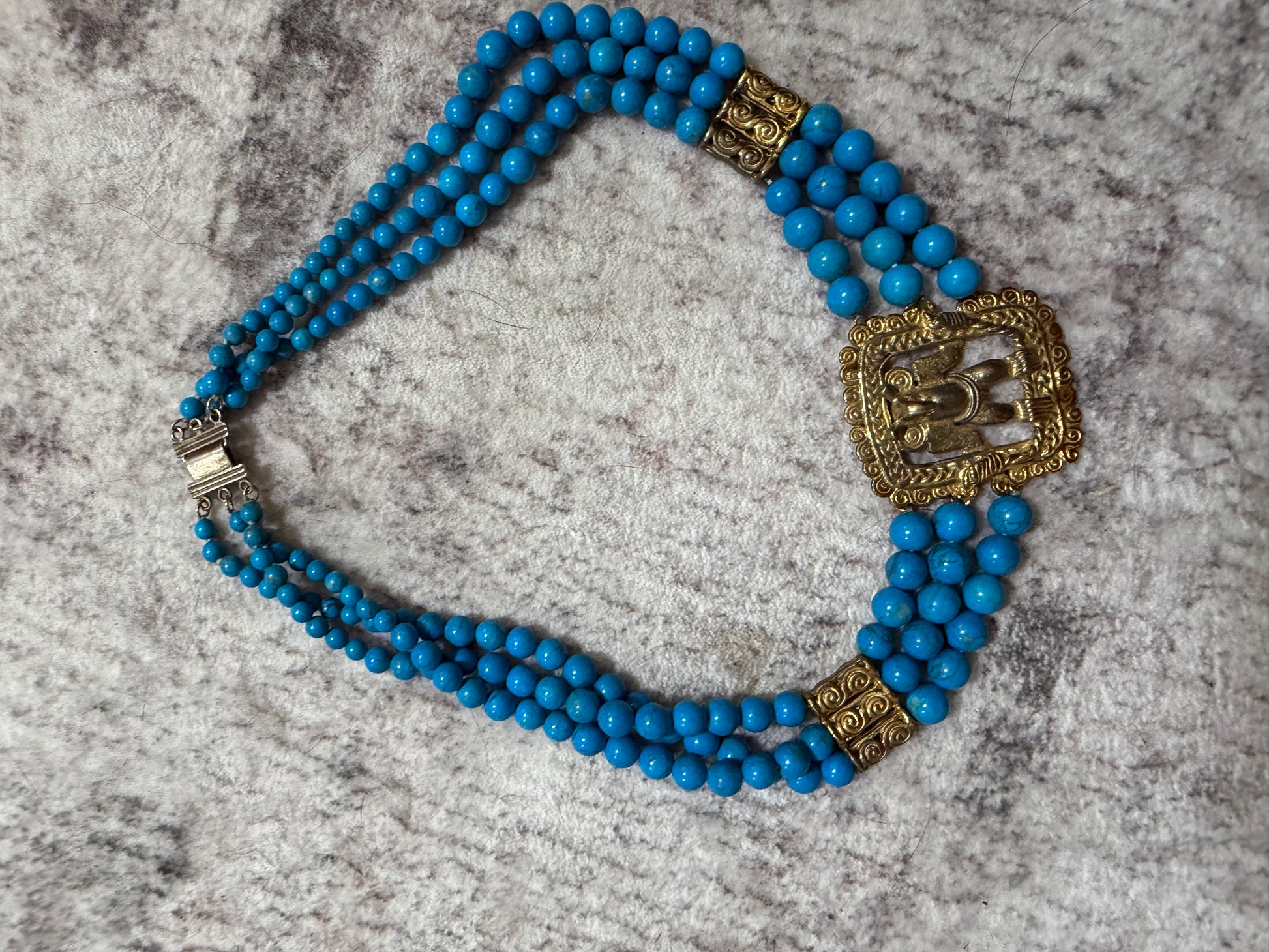 50/60s Egyptian Revival Goldtone Silver & Stone Necklace