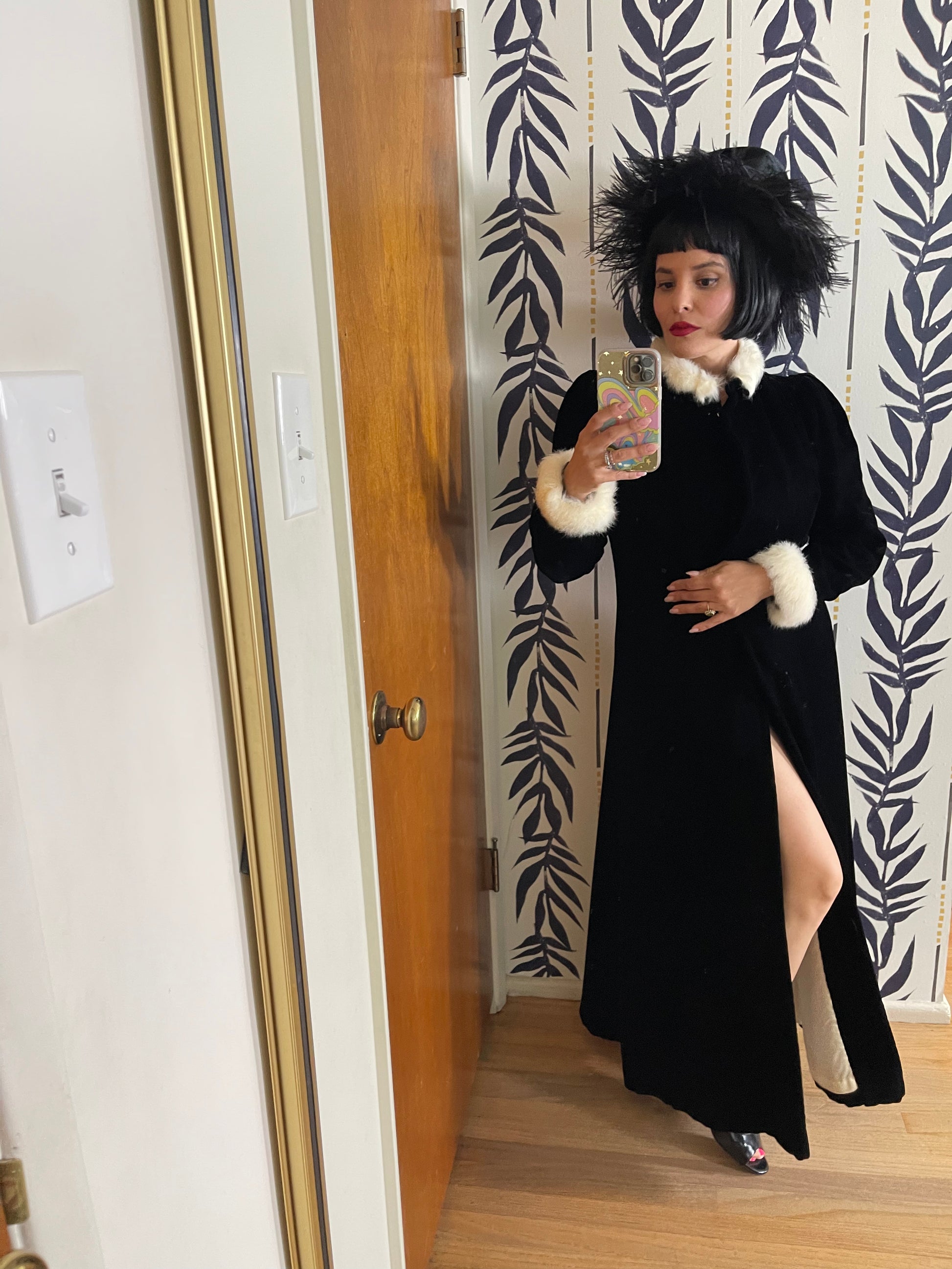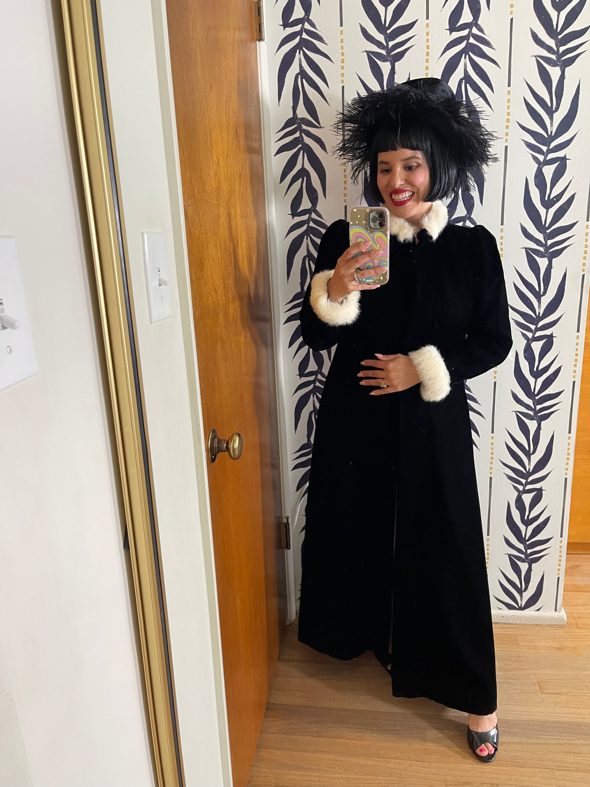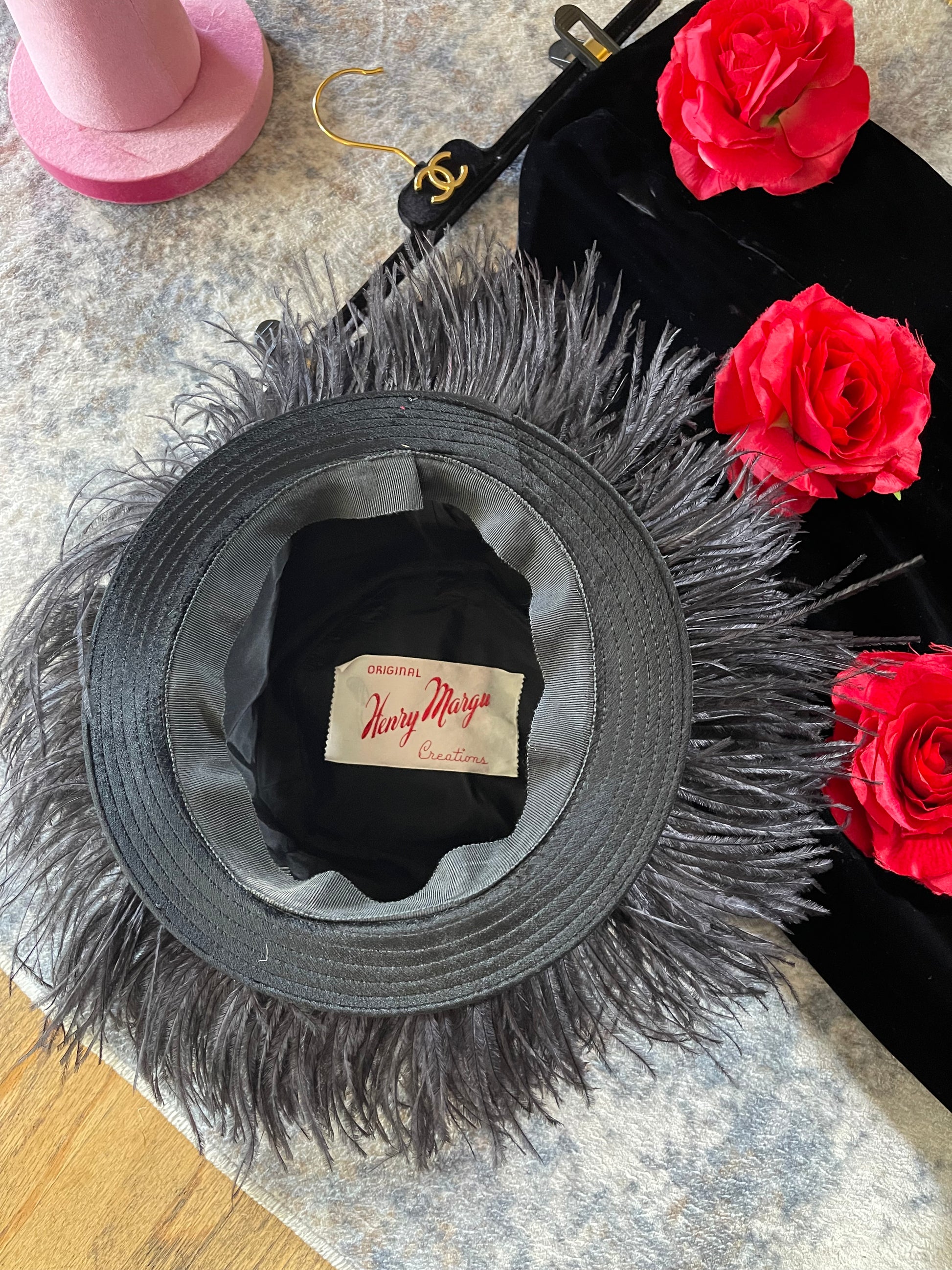 60s Black Ostrich Original Henry Margu Creations Velvet Feather Hat