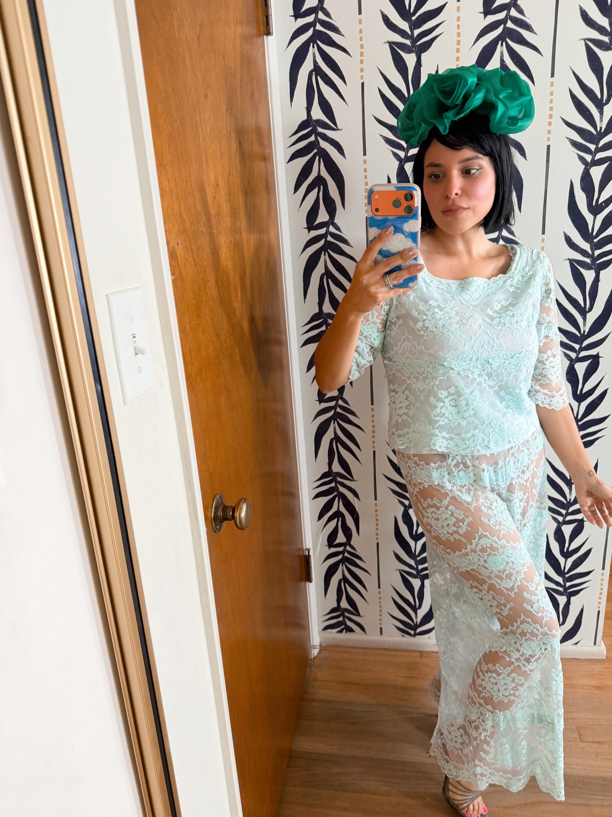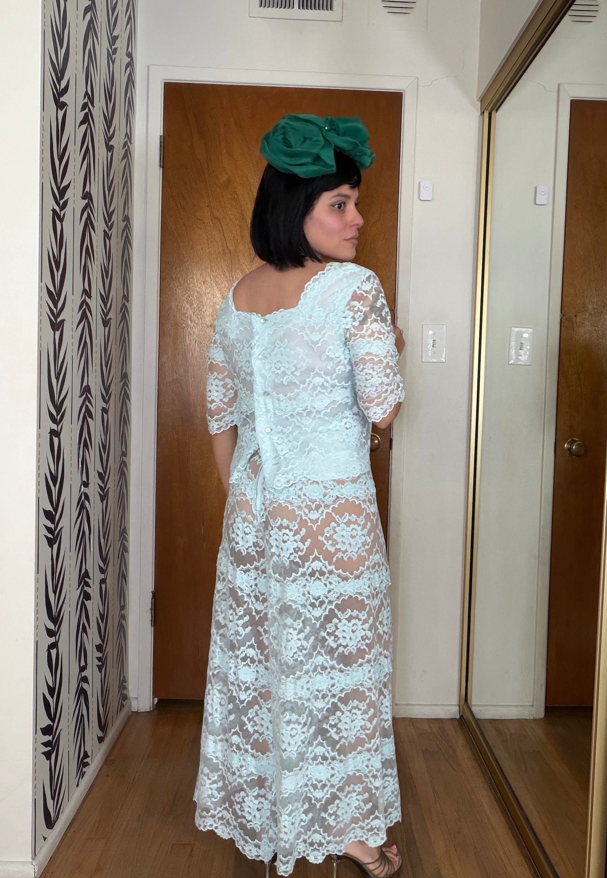 60s Blue Lace Sheer Bottoms and Matching Blouse XS-SM