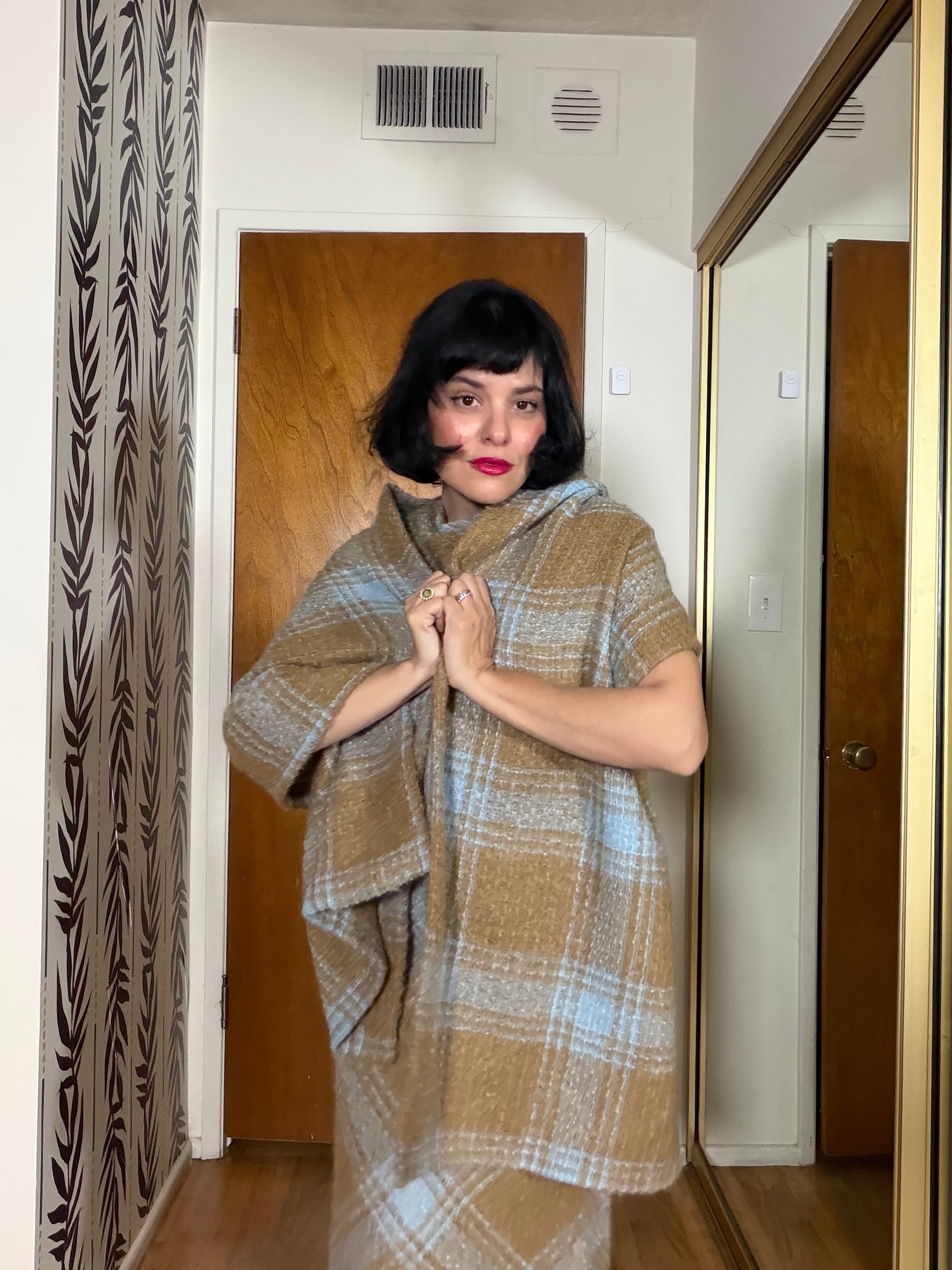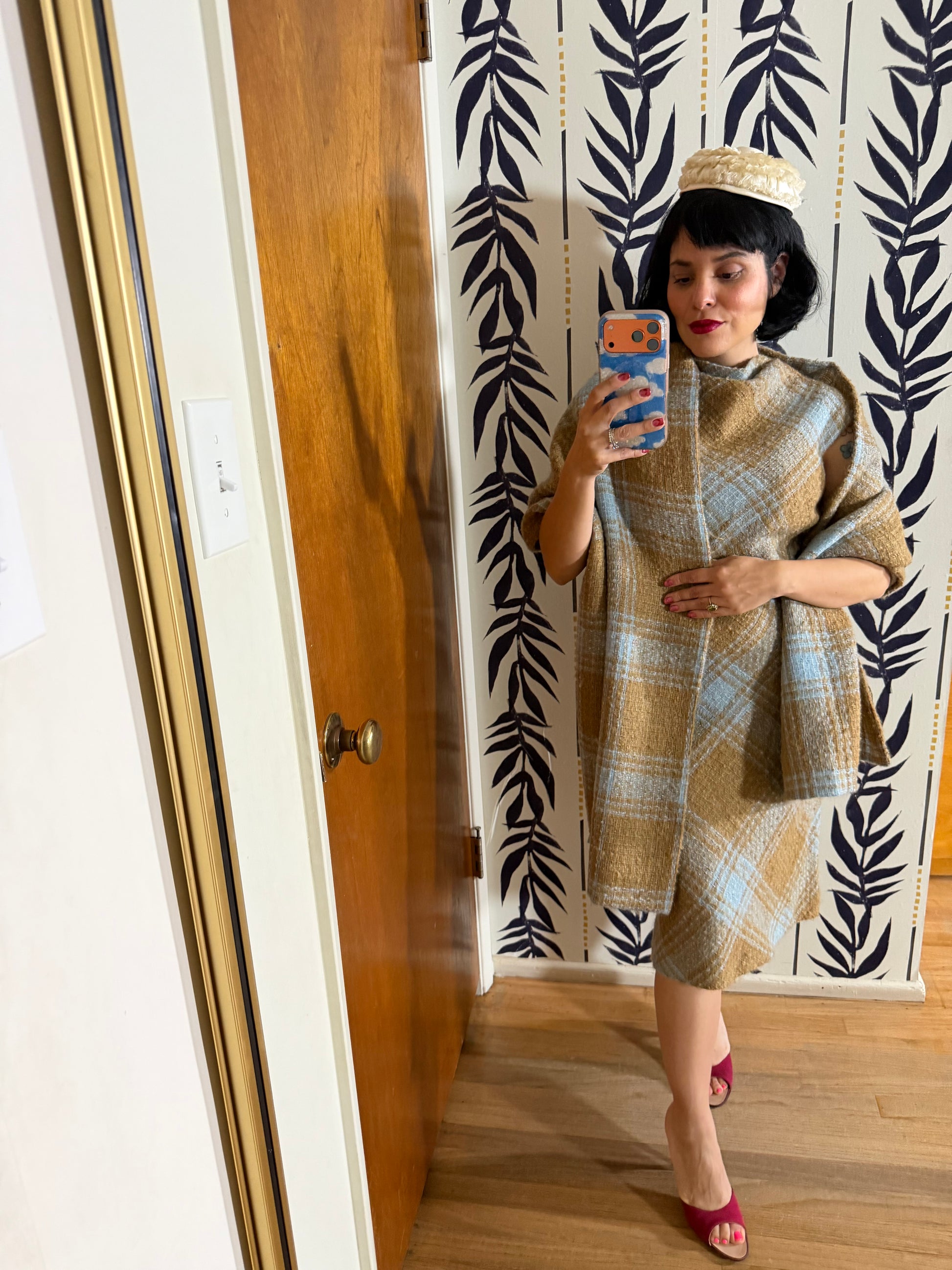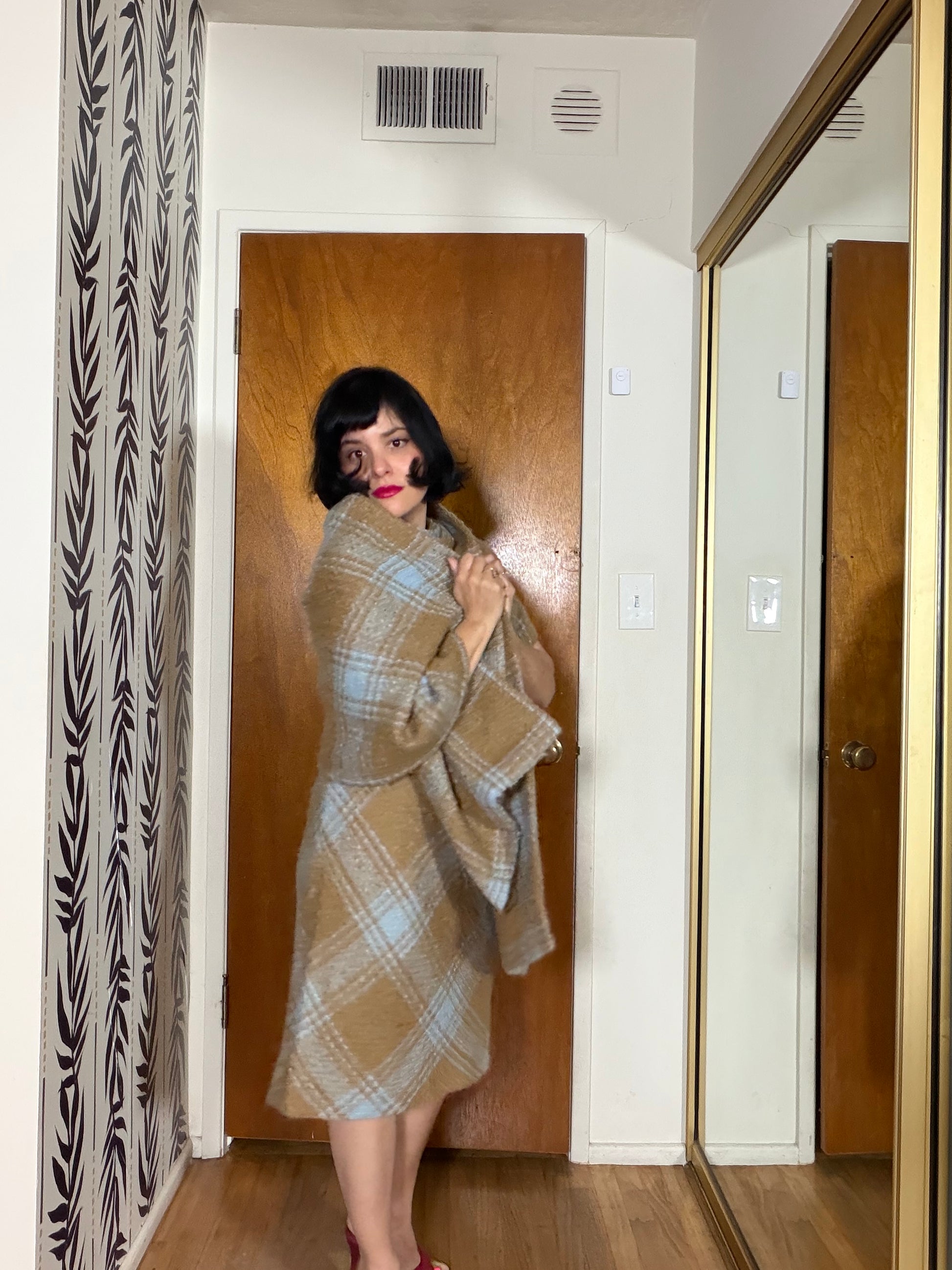 60s Plaid Boucle Dress and Shawl Set fits XS-SM