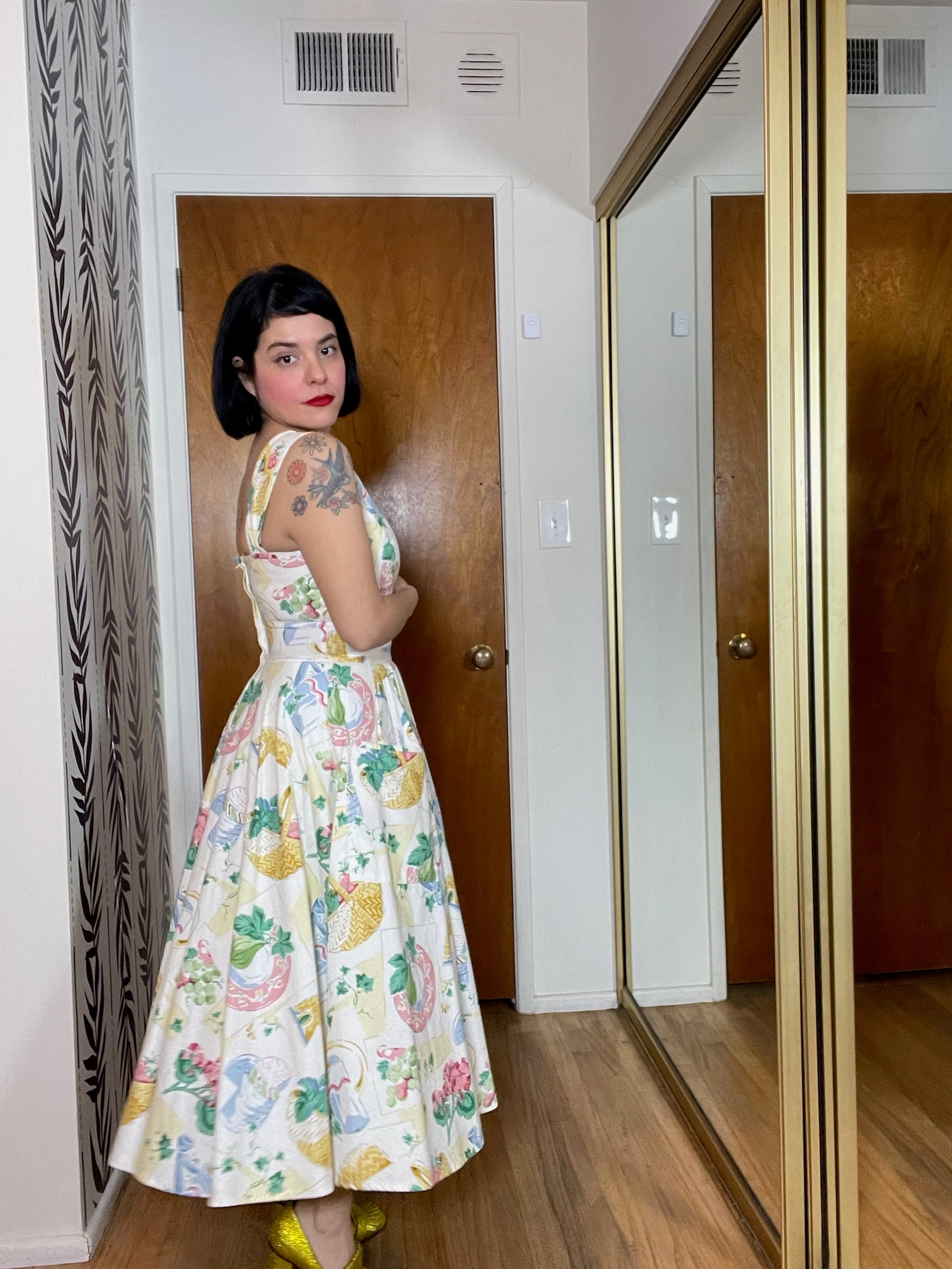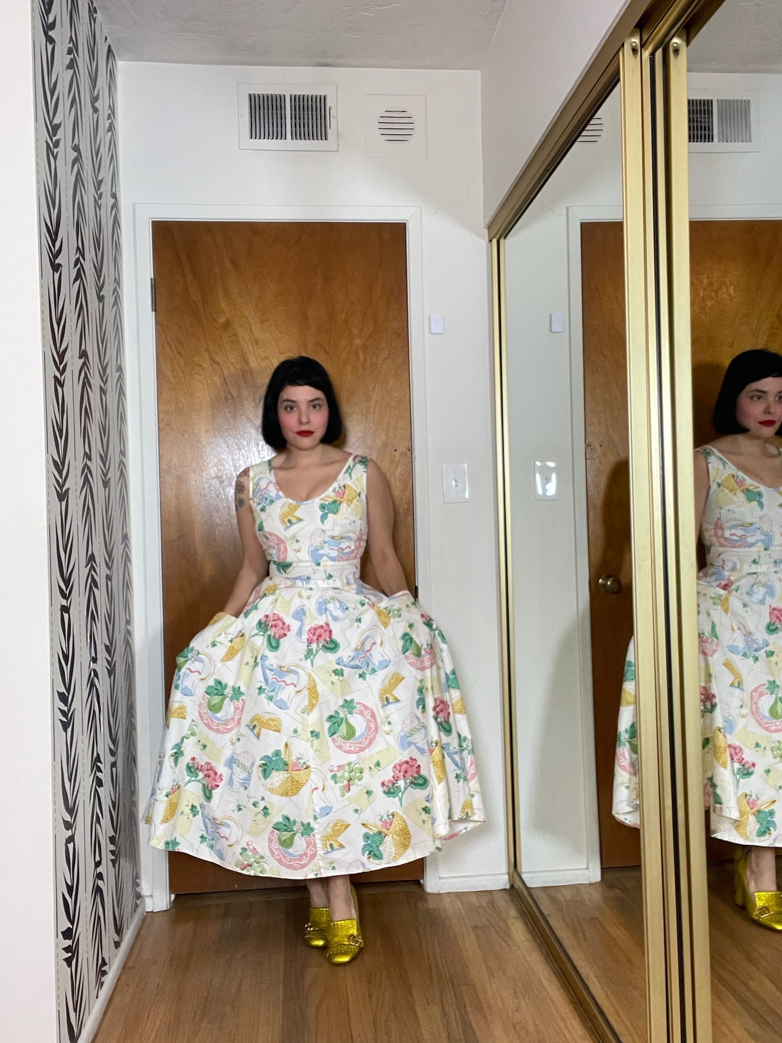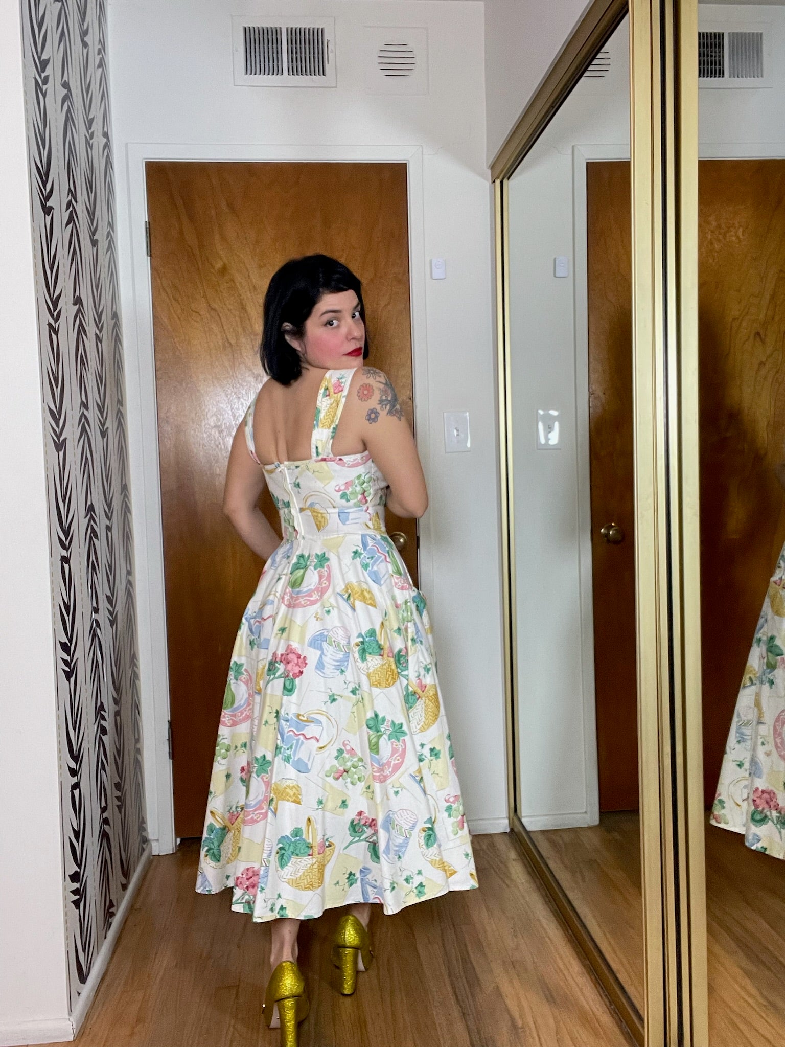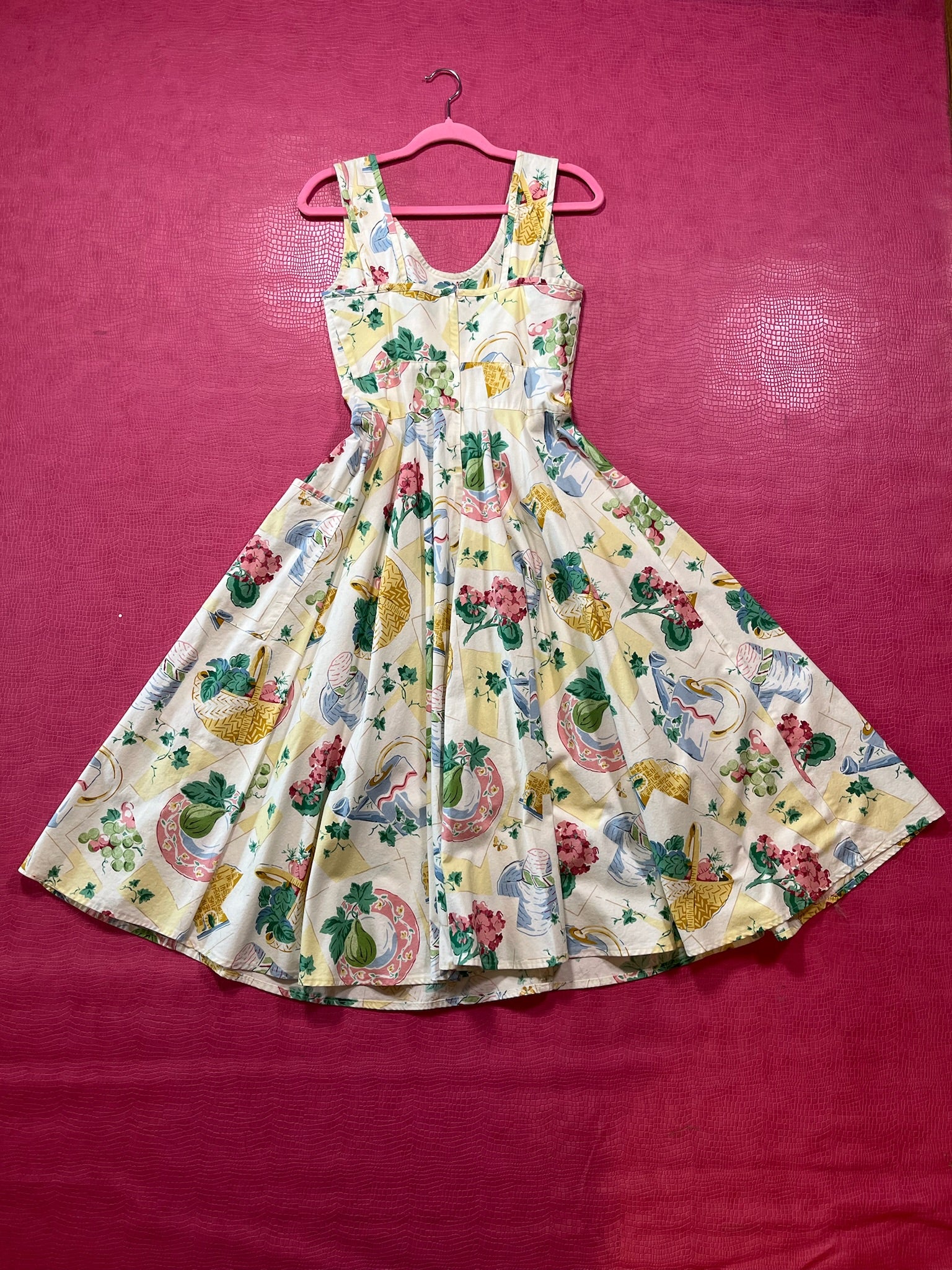 Vintage 80s "Karen Alexander" Picnic Basket Print Dress - Best Fits Size XS-S