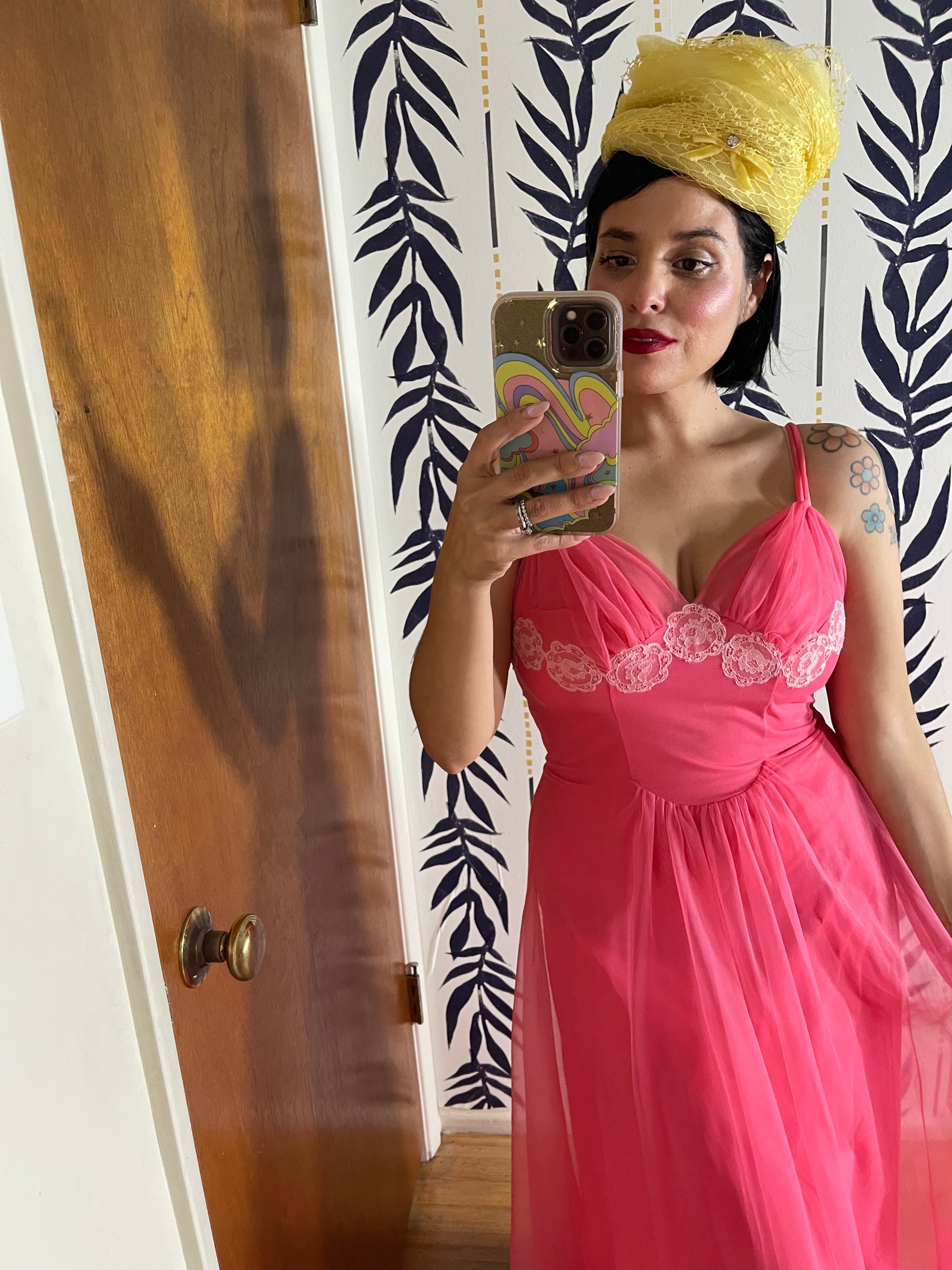 Aldenaire 50s/60s Pillow Box Mesh Net Yellow Hat