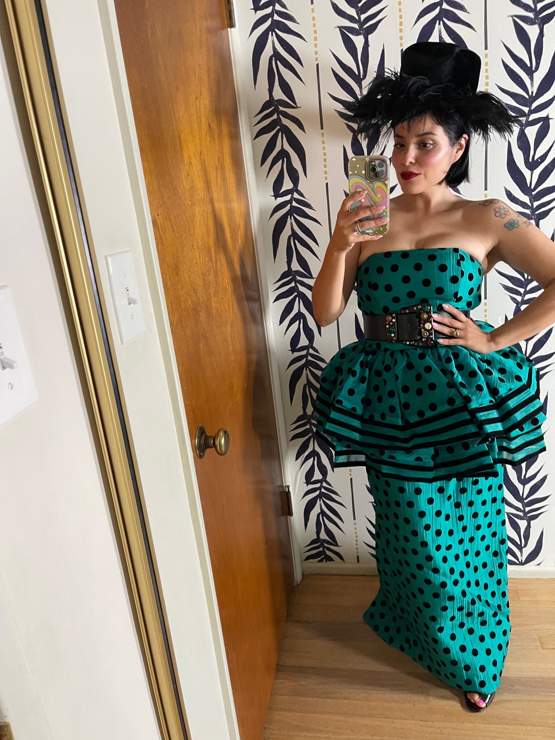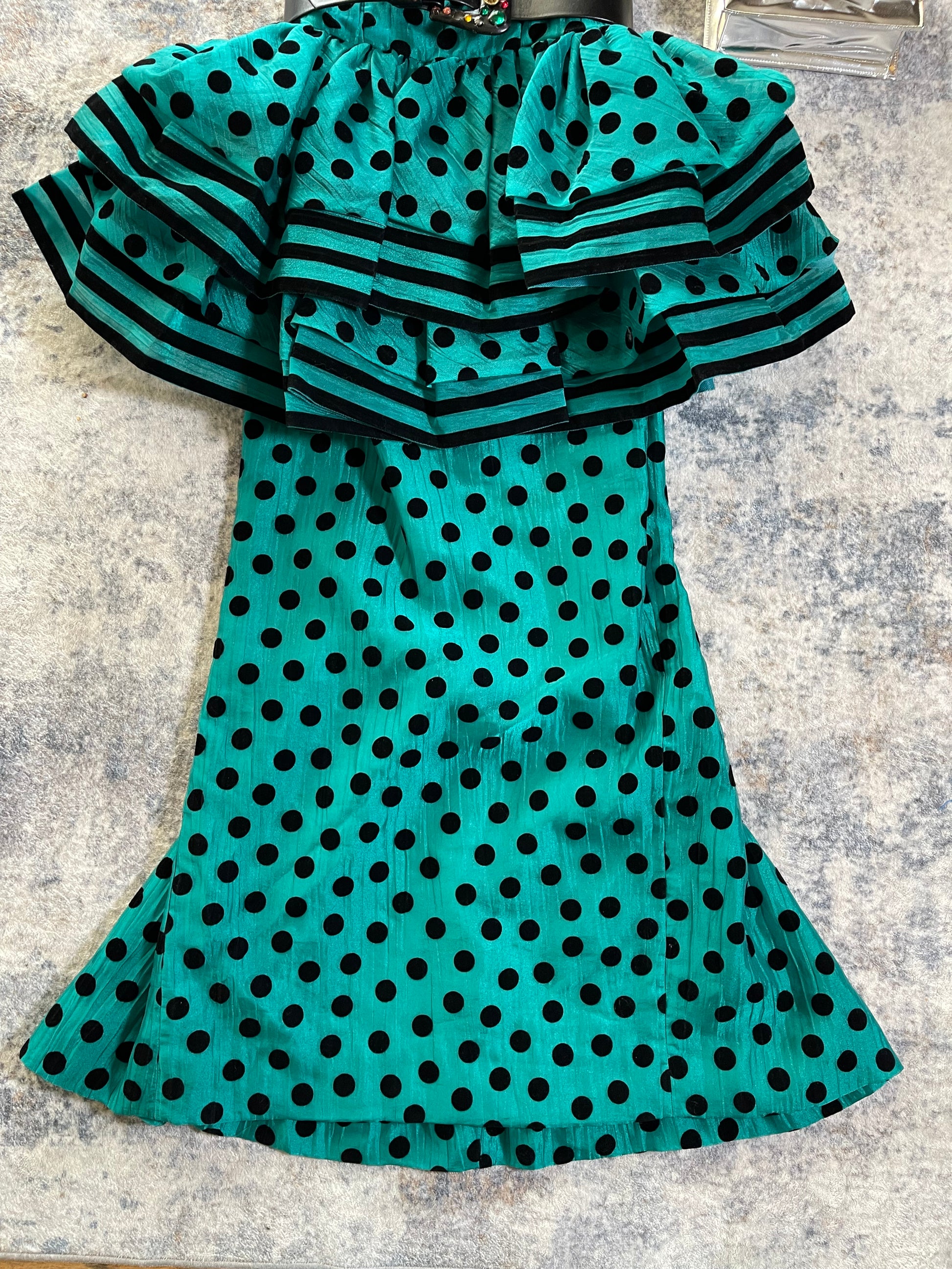 Victor Costa Polka Dot Peplum Aqua Blue Green Gown XS-SM