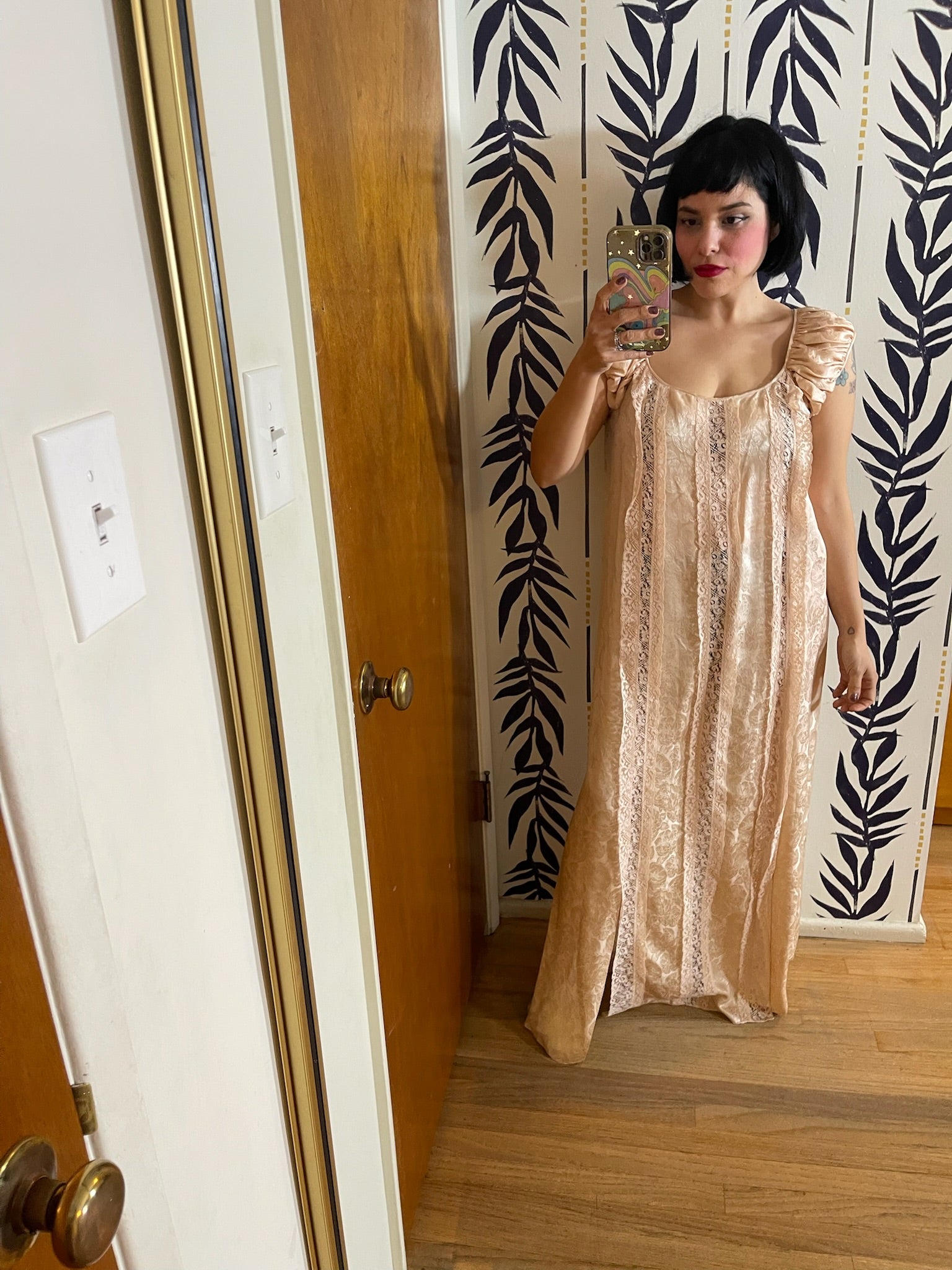 Vintage 30s 40s "Peggy Jennings" Pink Silk Nightgown - Fits Size XS-L
