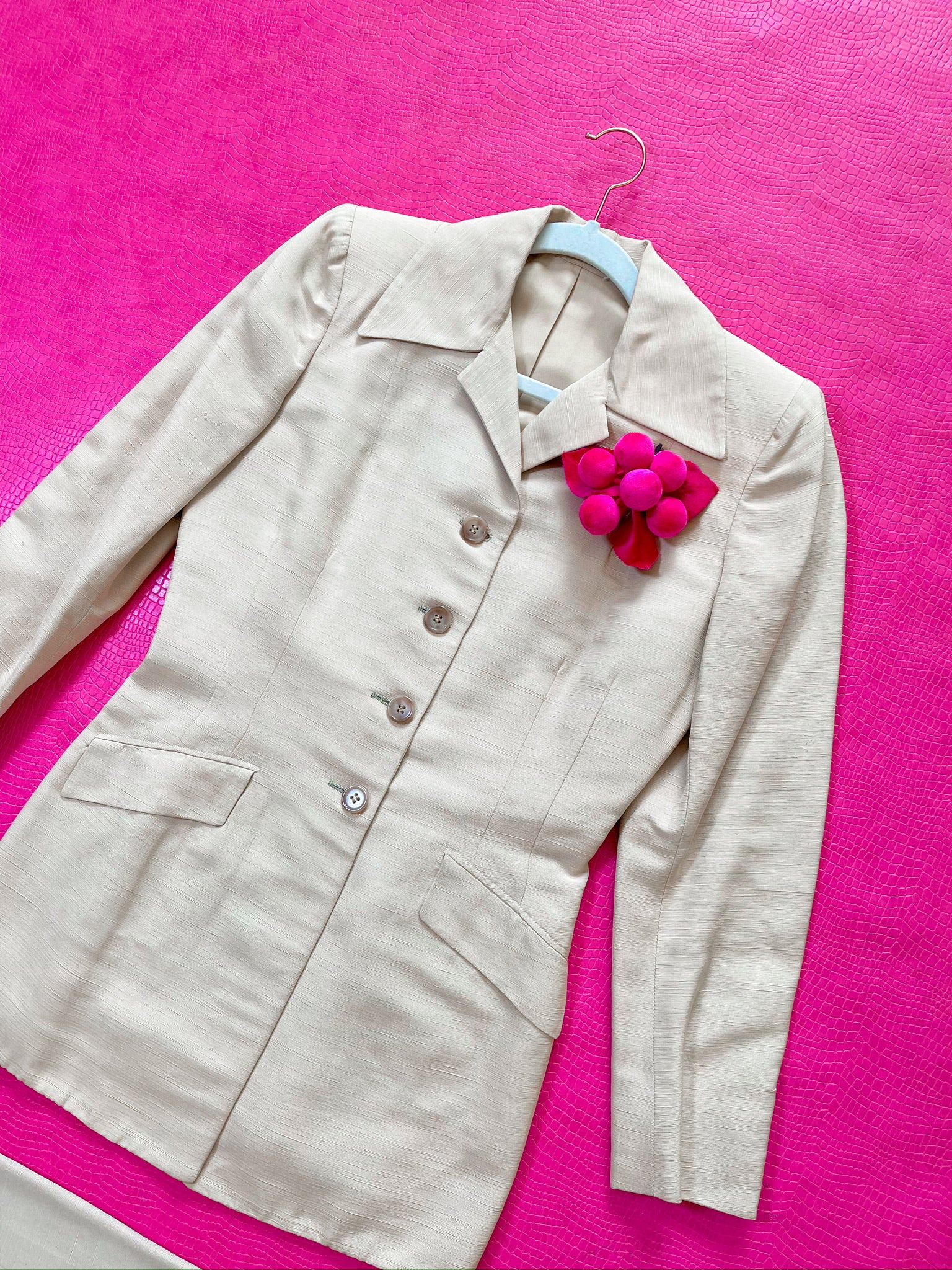 Skirt features - Back Zipper Closure / A-Line Silhouette / Partially Lined / Made Of Same Material as Jacket
