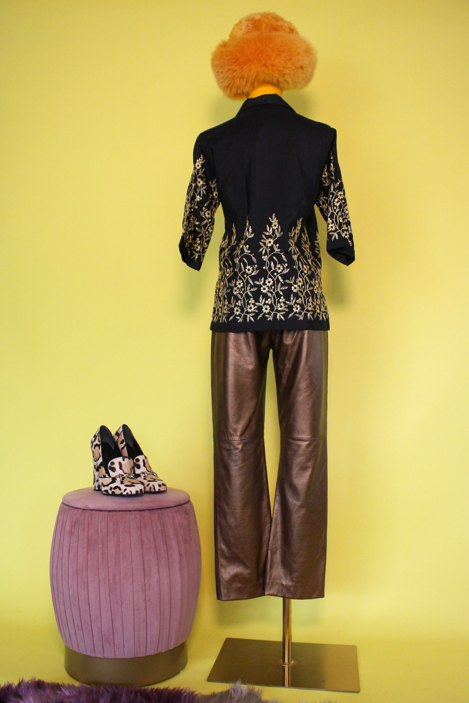 Styled With Our Marigold Baby Alpaca Hat, Vintage Bebe Bronze Leather Pants, and Jaguar Designer Pumps