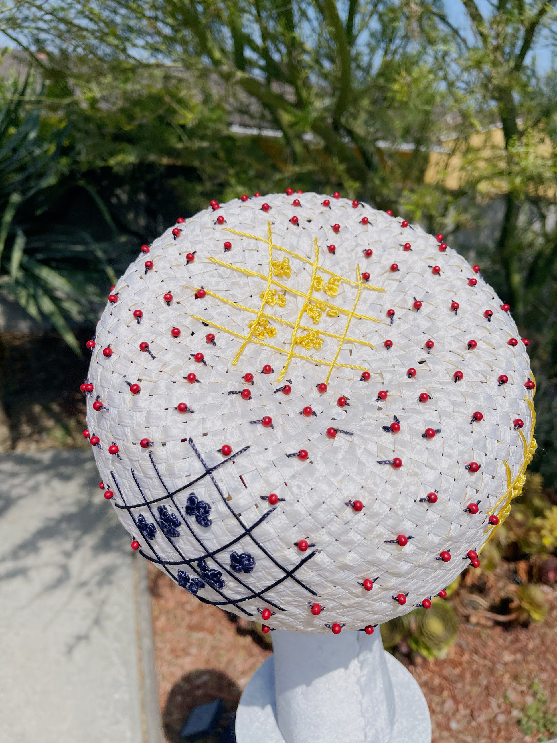 Features: Beaded Details / Inner Brand Label / Structured Brim Intended To Sit On Top Of The Head