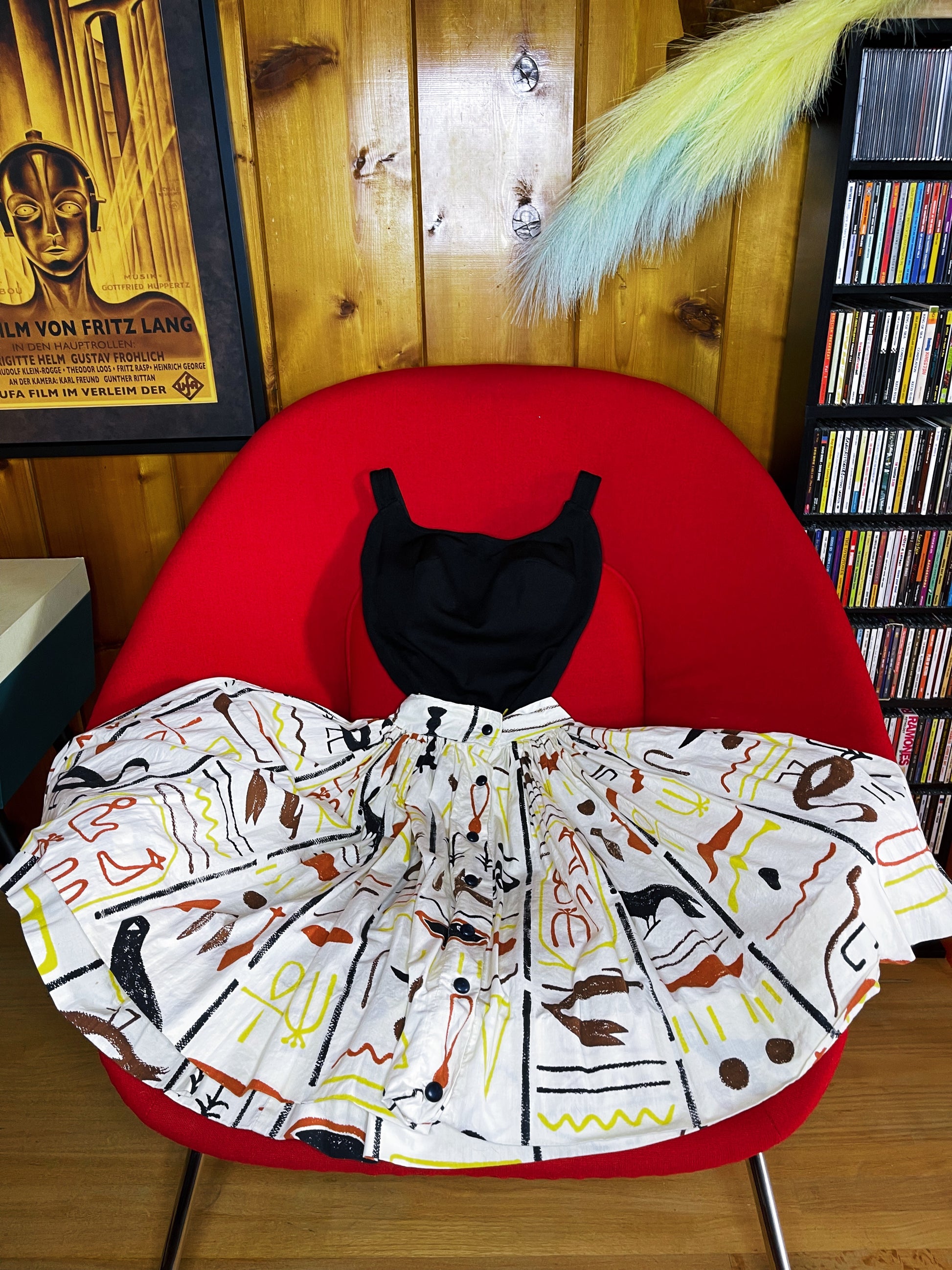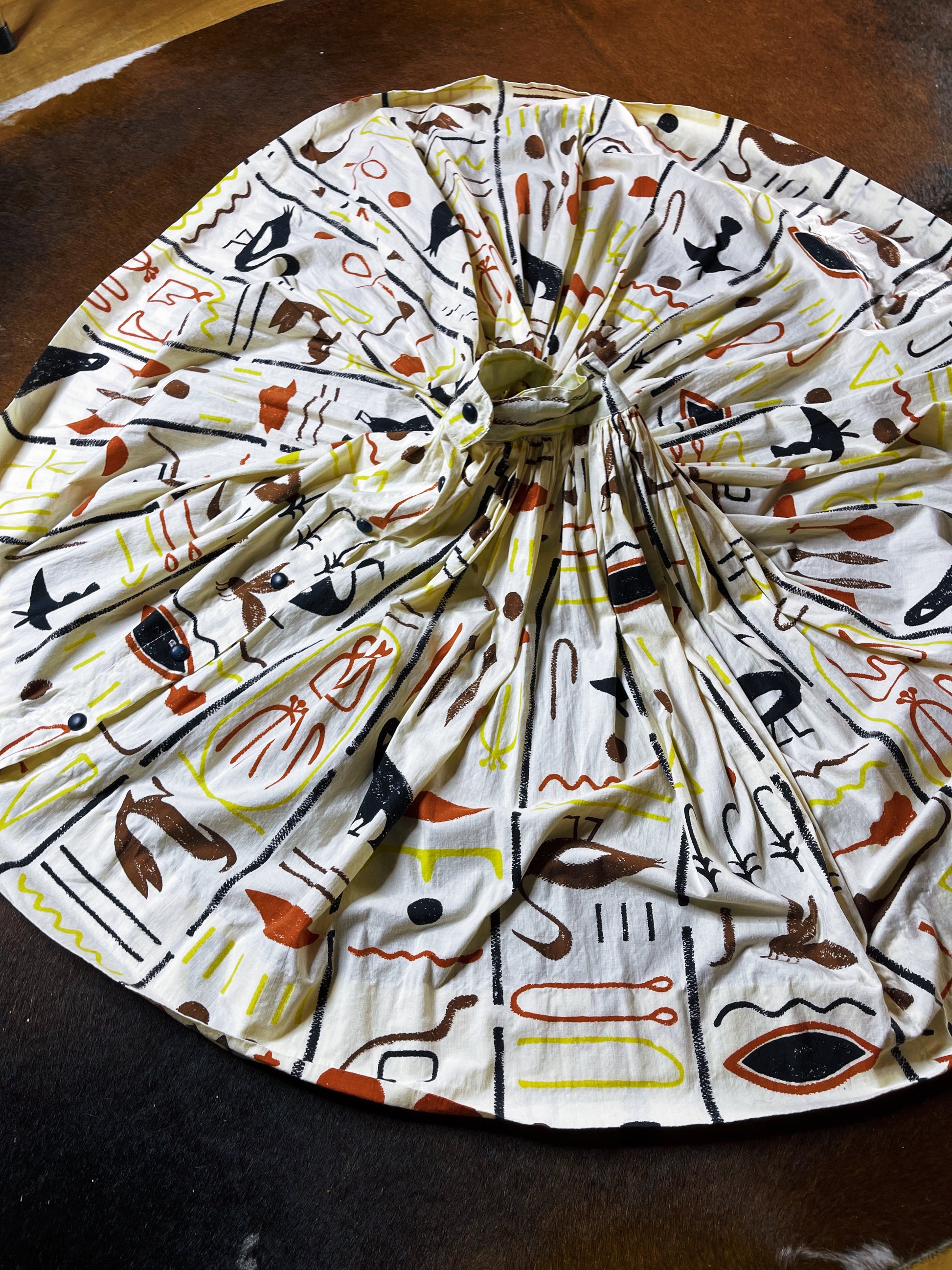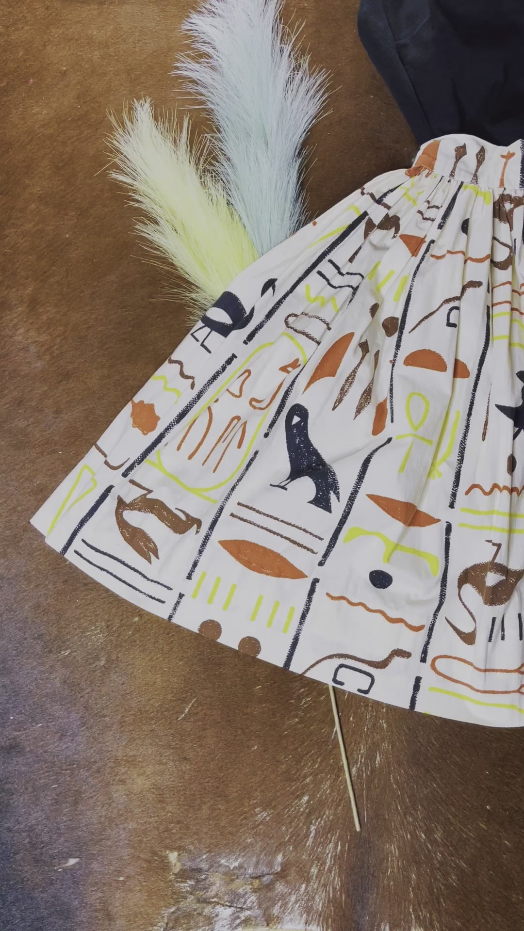 Vintage 50s Hieroglyphics Egyptian Novelty Print Full Skirt Fits Sizes XXS-XS