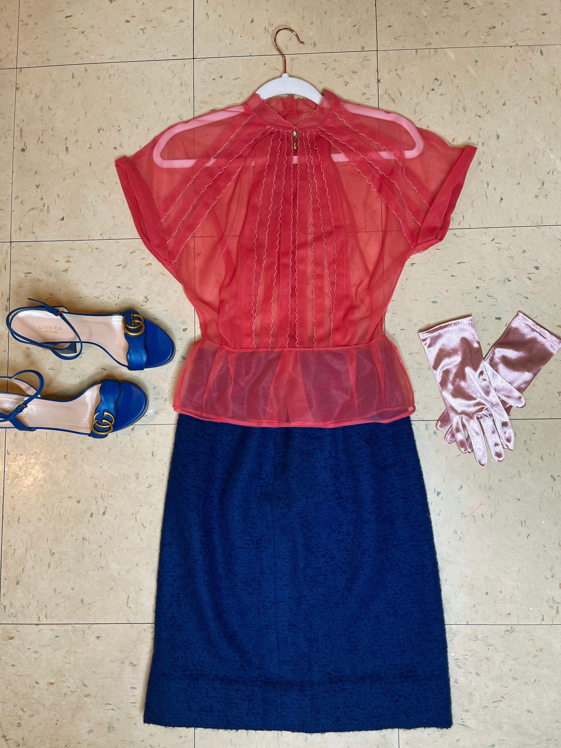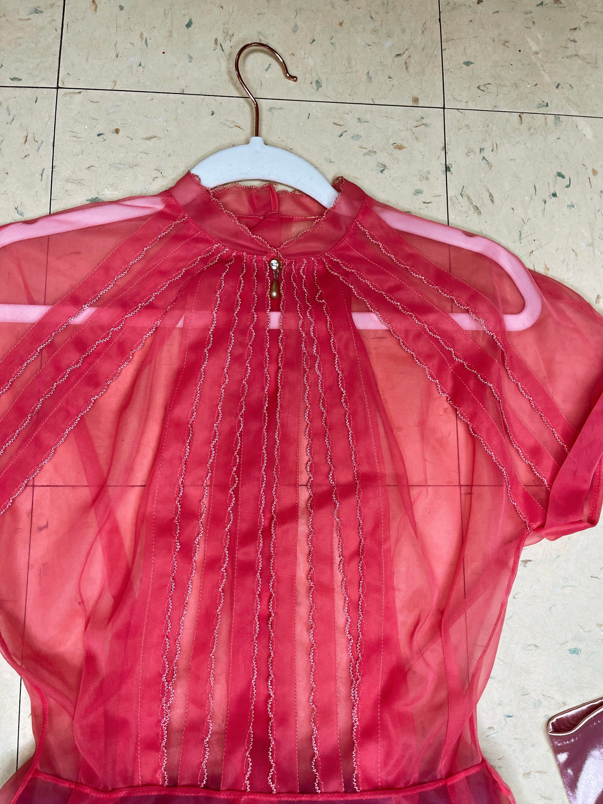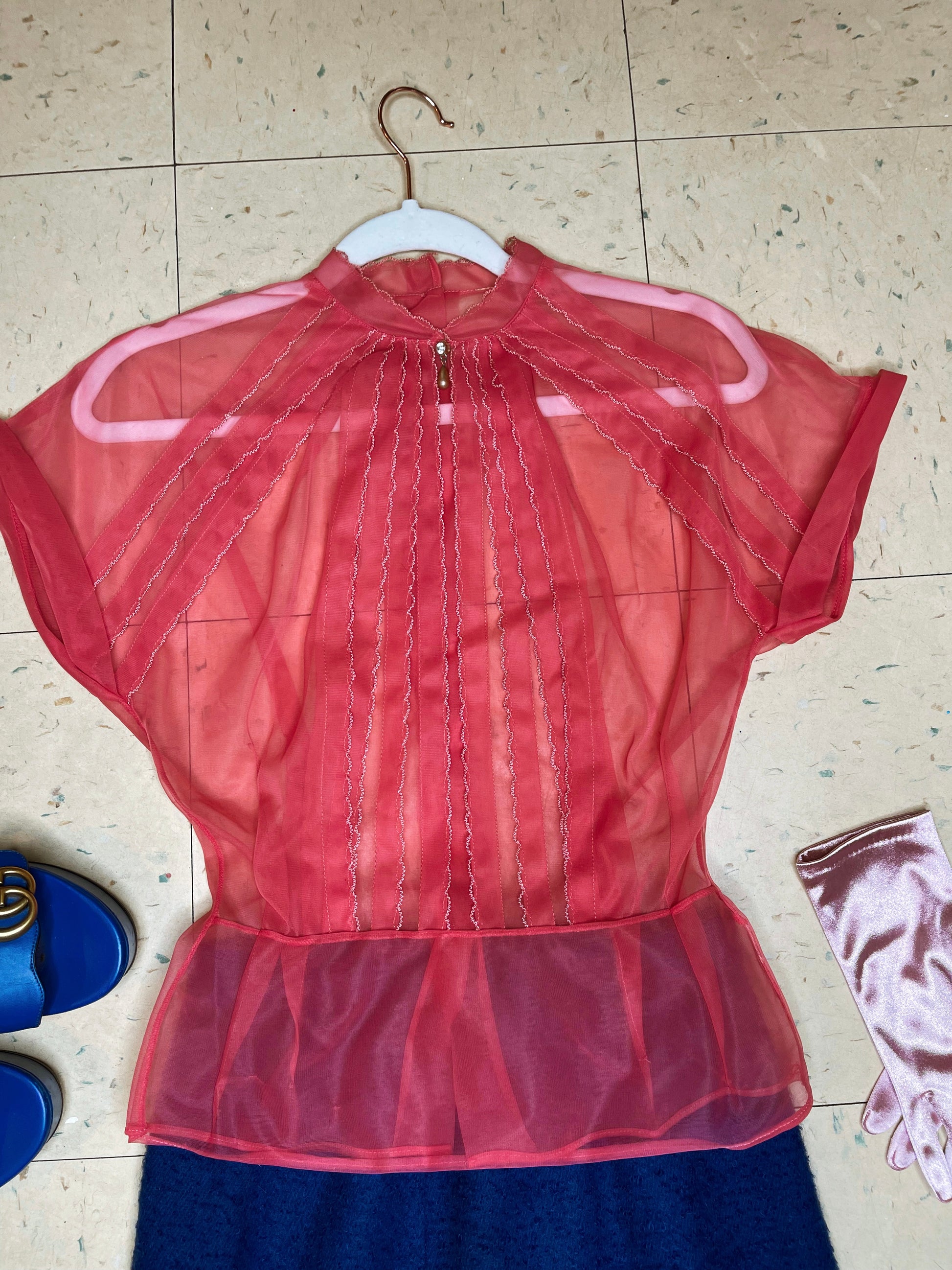 Vintage 50s Nylon Sheer Blouse with Pearl Collar Fits Sizes XXS-SM