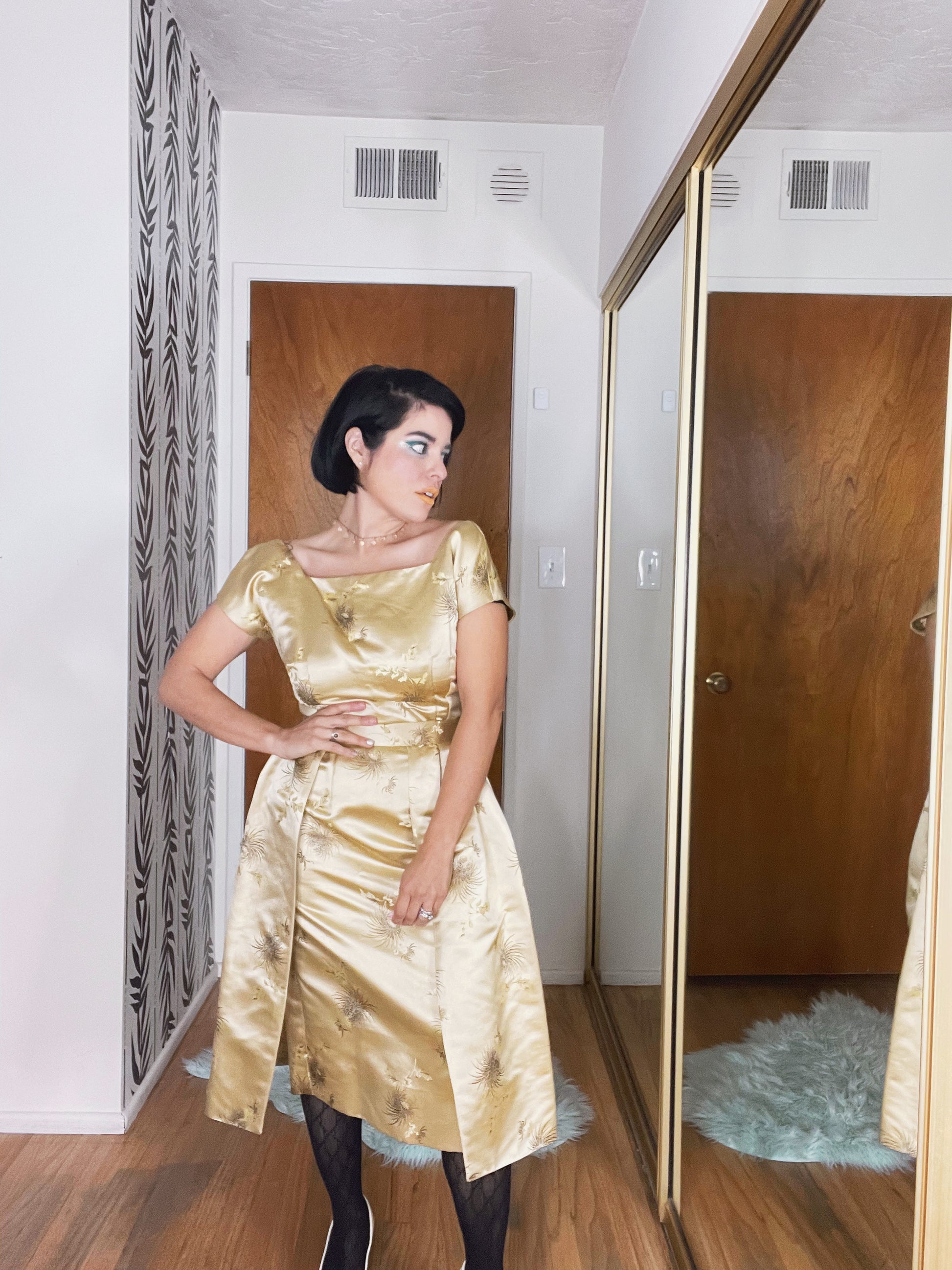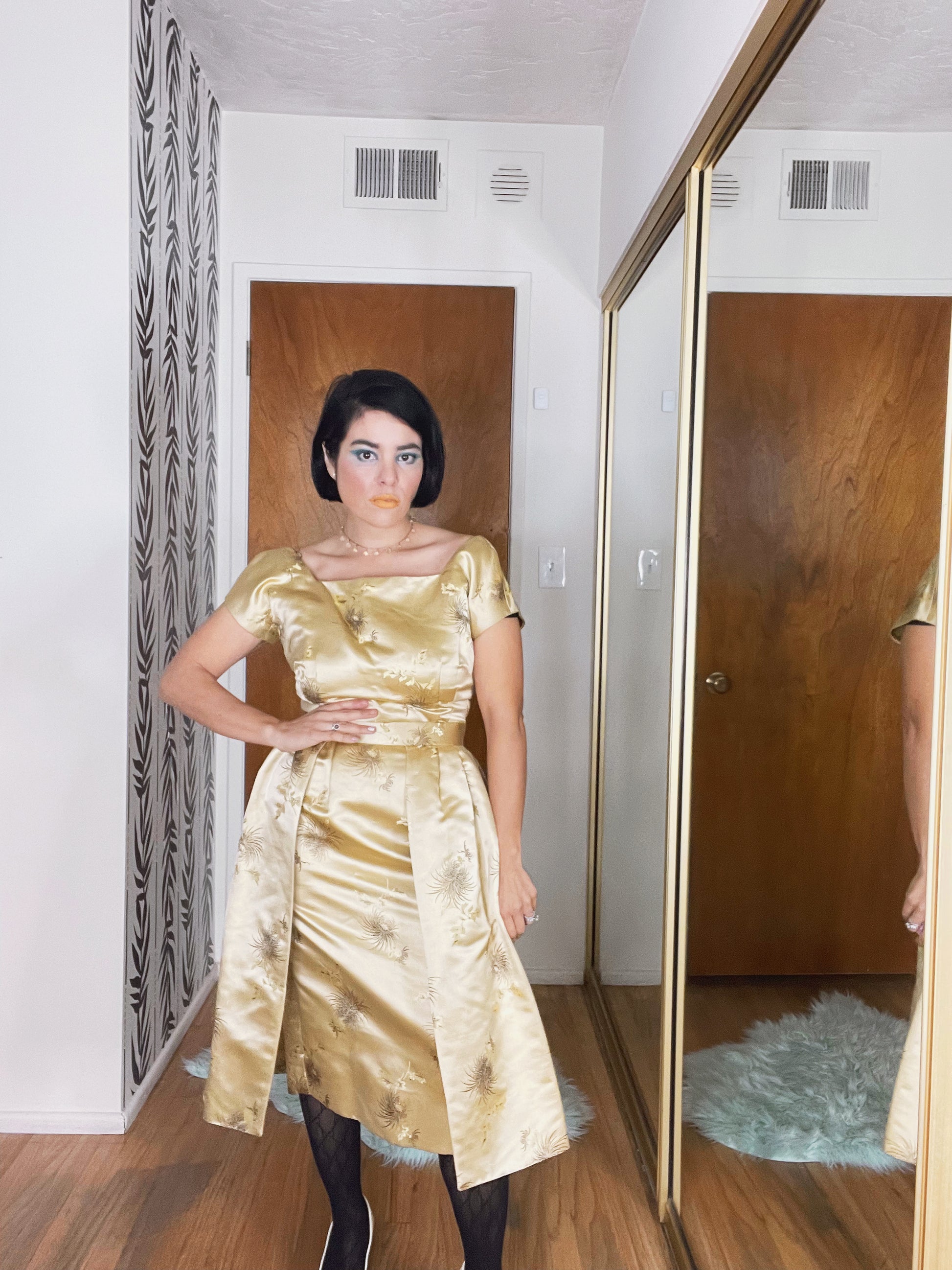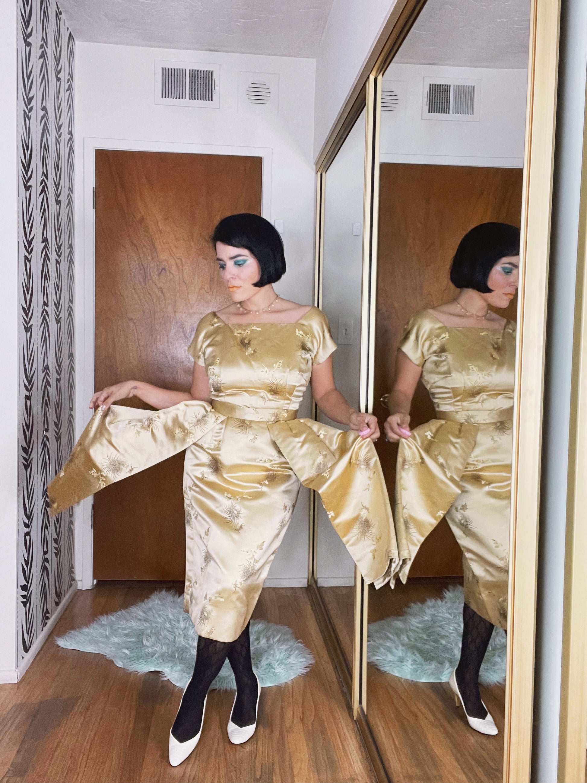 Vintage 50s Silk Custom Wiggle dress with Detachable skirt. Fits sizes XS-SM