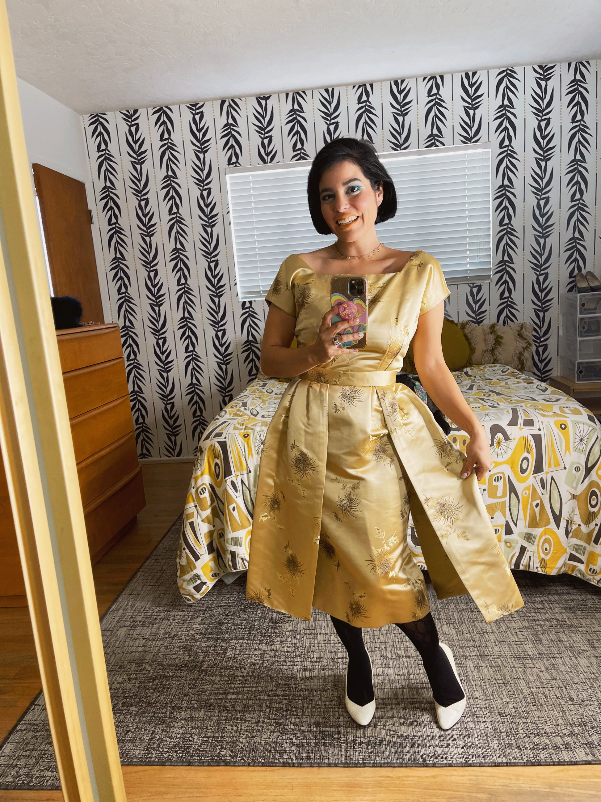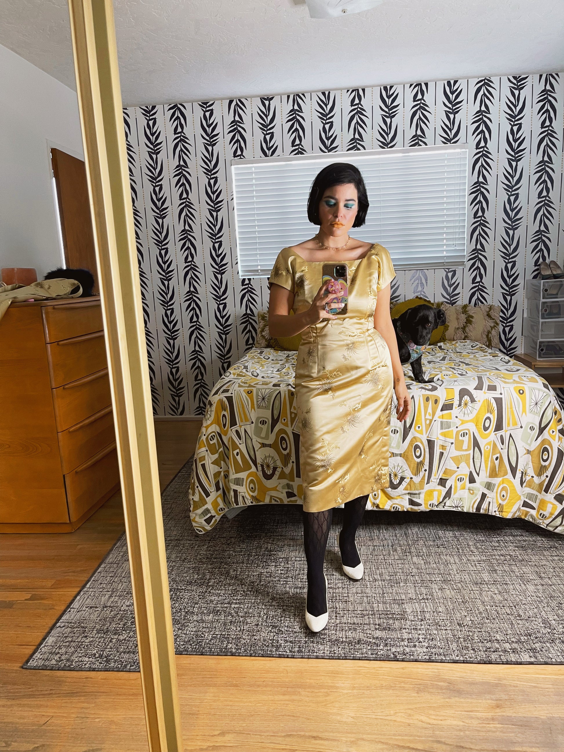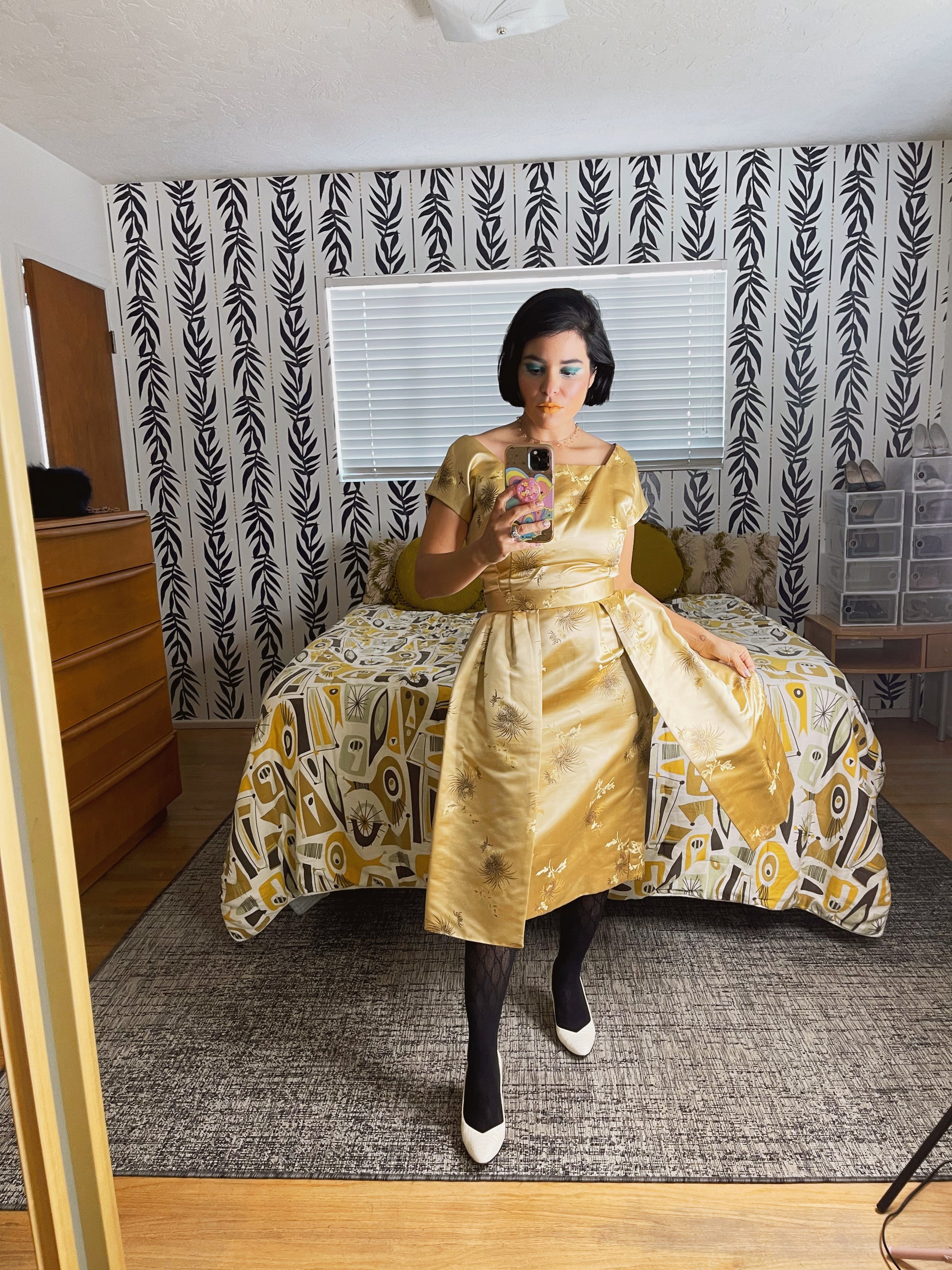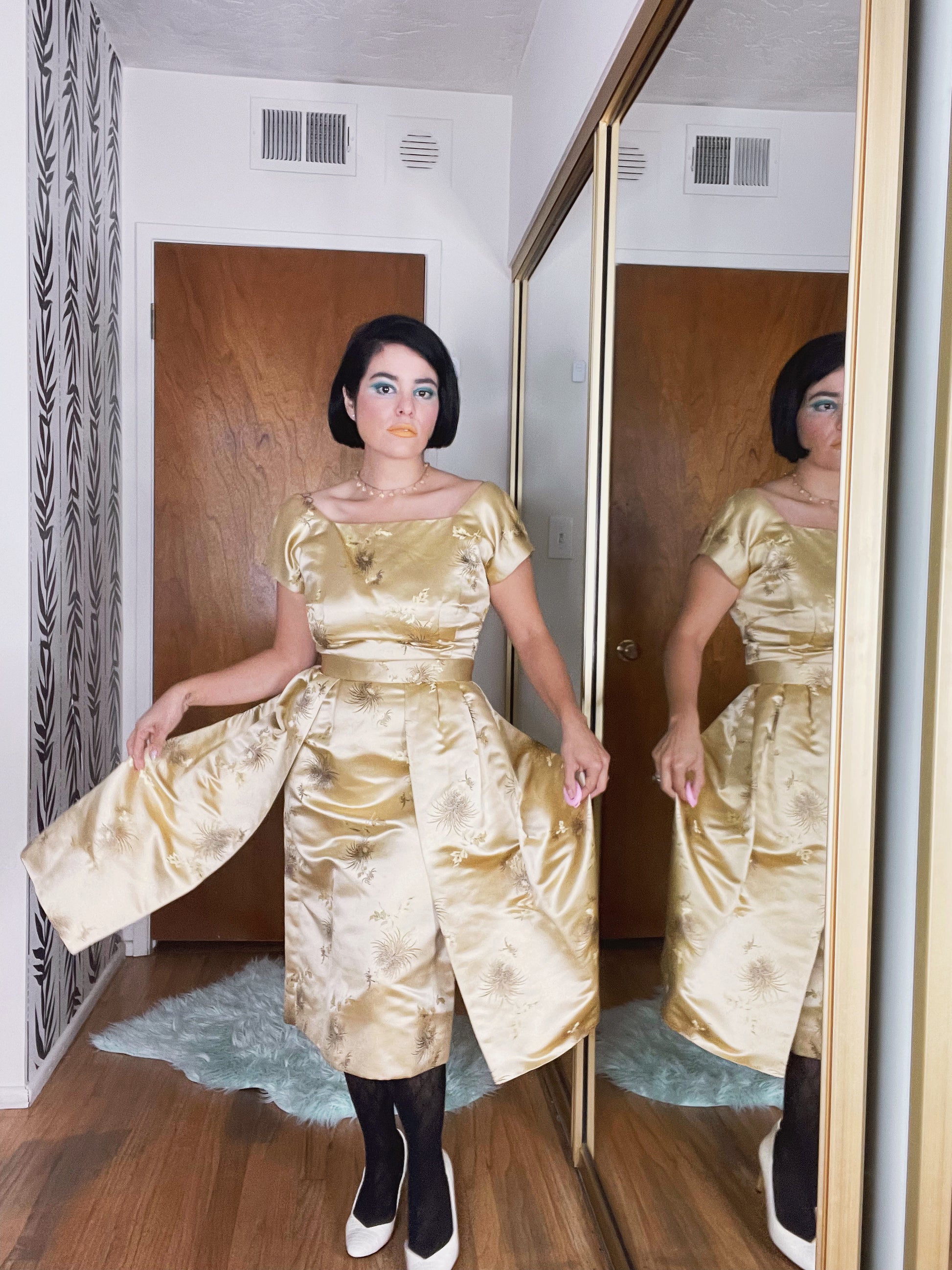 Vintage 50s Silk Custom Wiggle dress with Detachable skirt. Fits sizes XS-SM