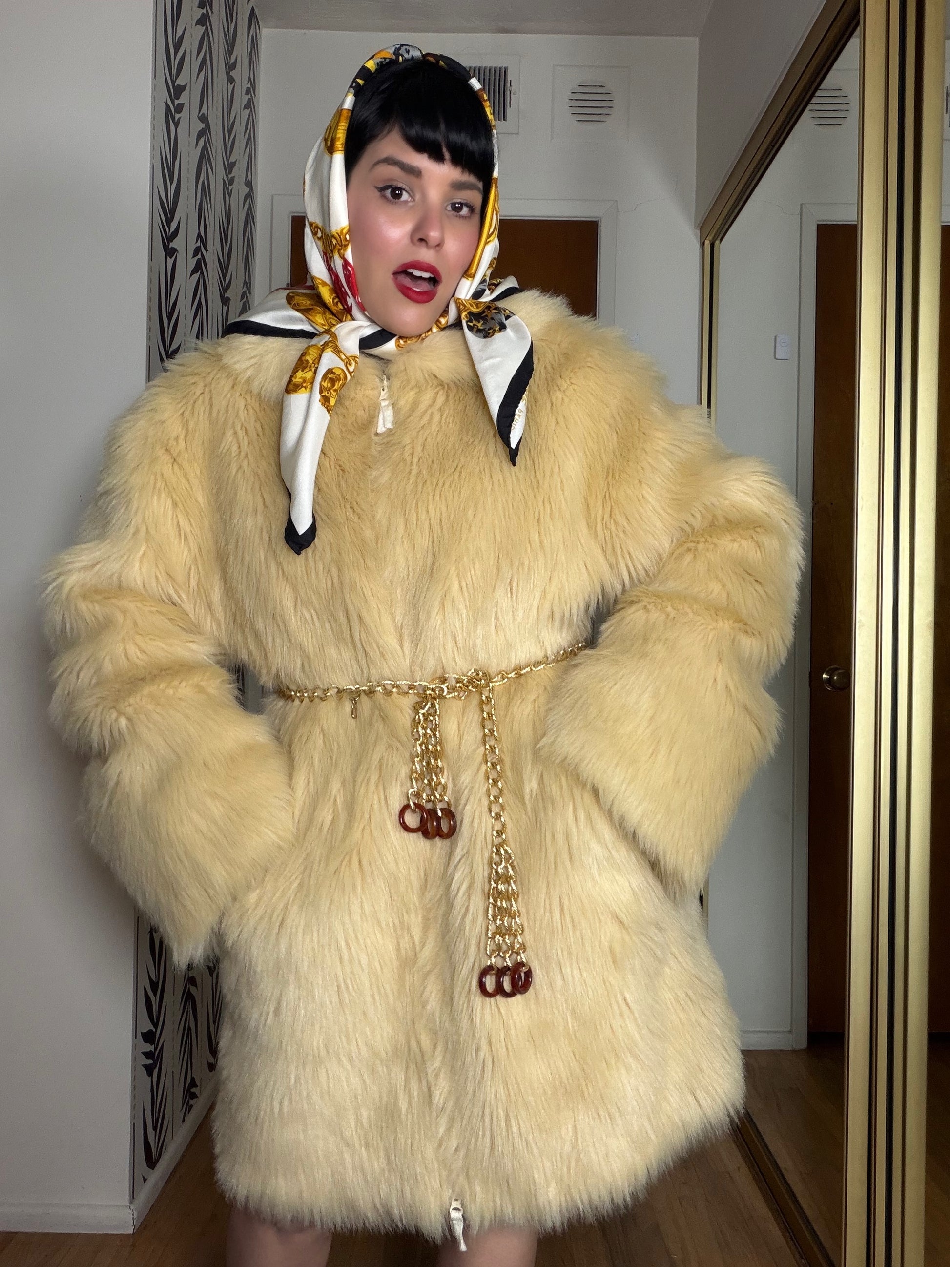 Vintage 60s / 70s Faux Fur Shag Coat Fits S-L