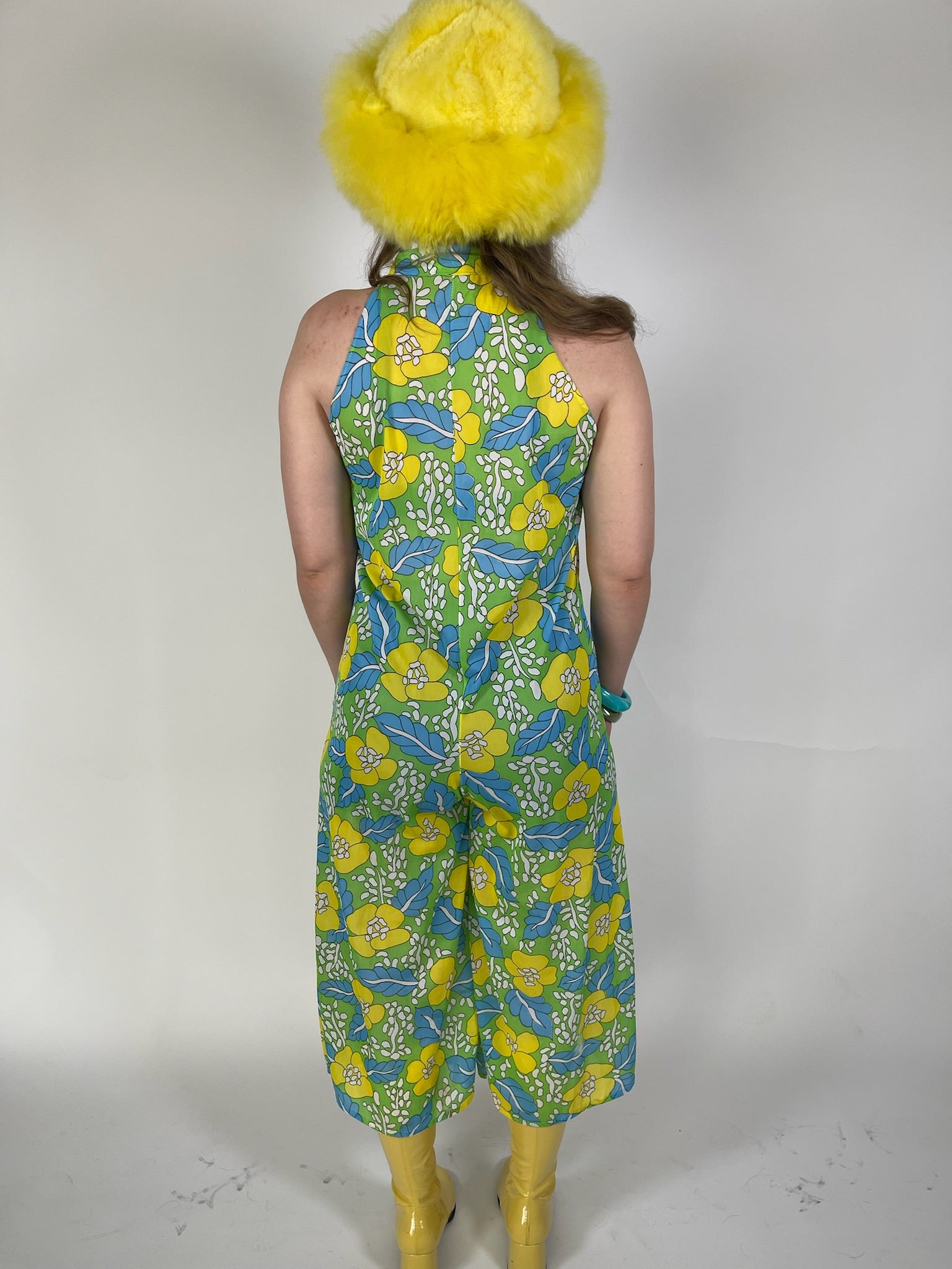 Vintage 60s 70s Nylon Flower Print Jumpsuit - Best Fits Size XS-M
