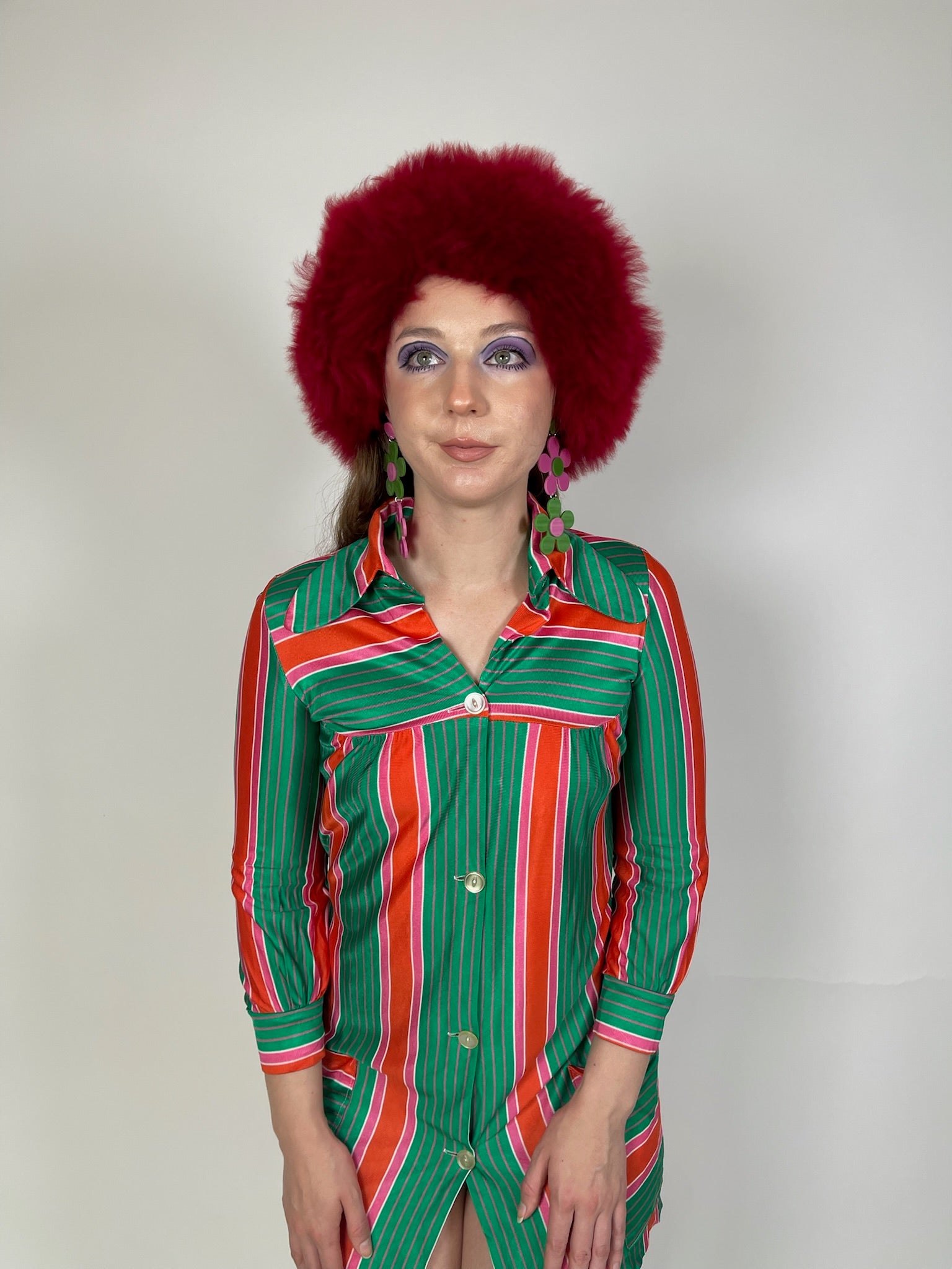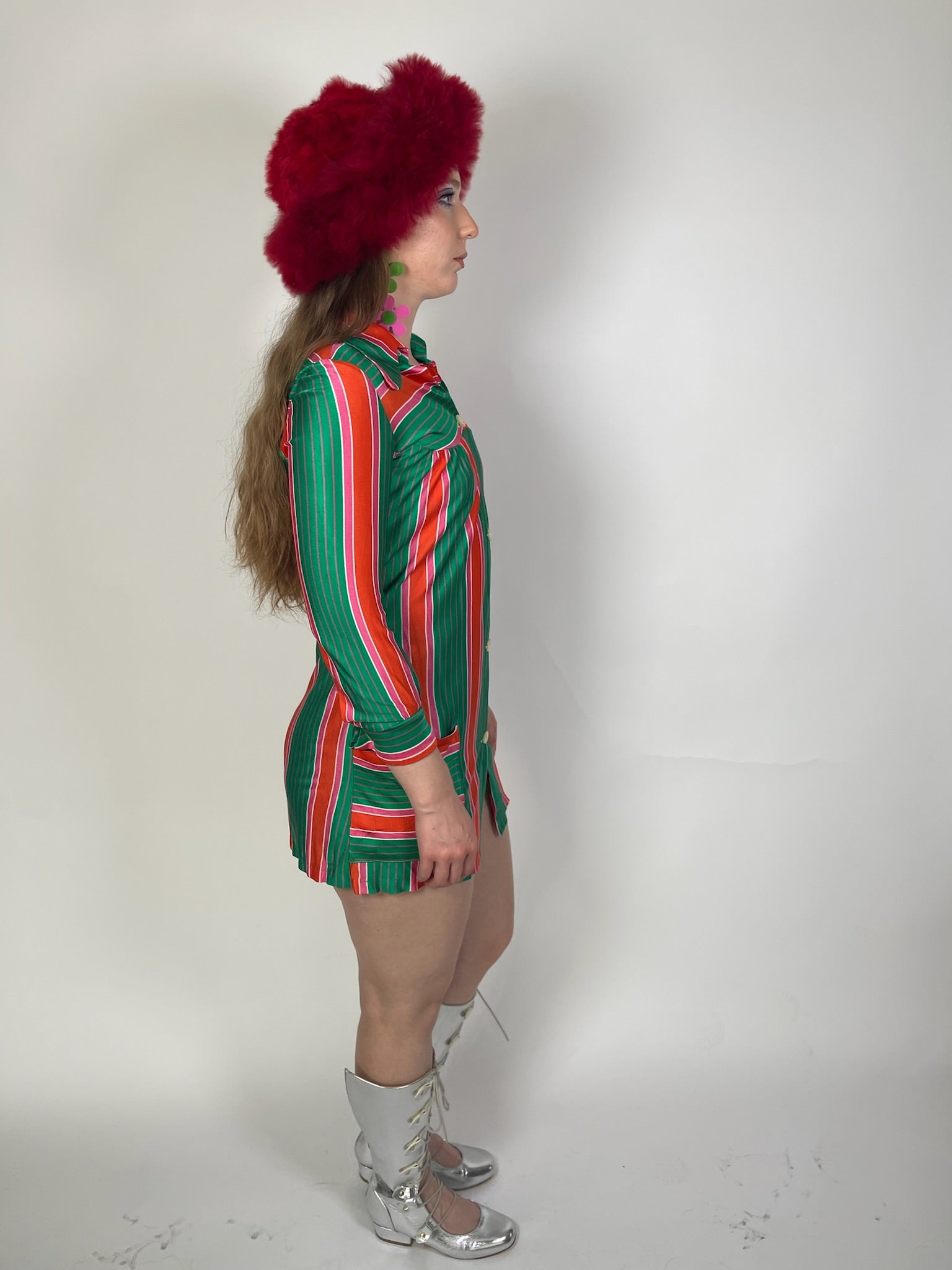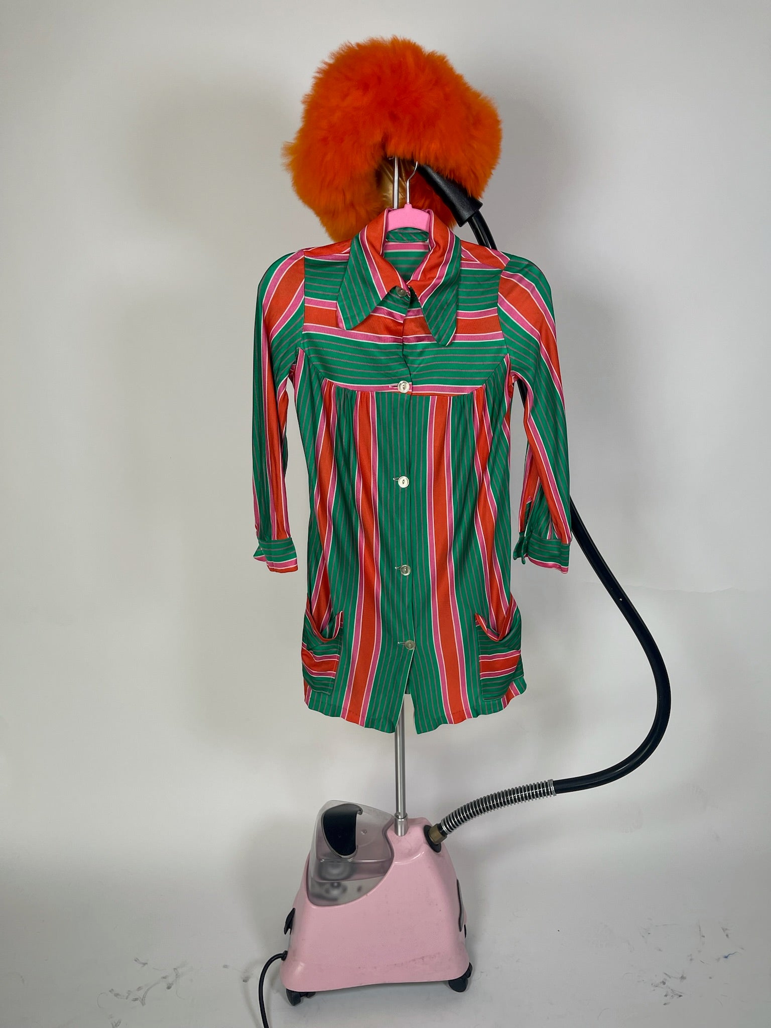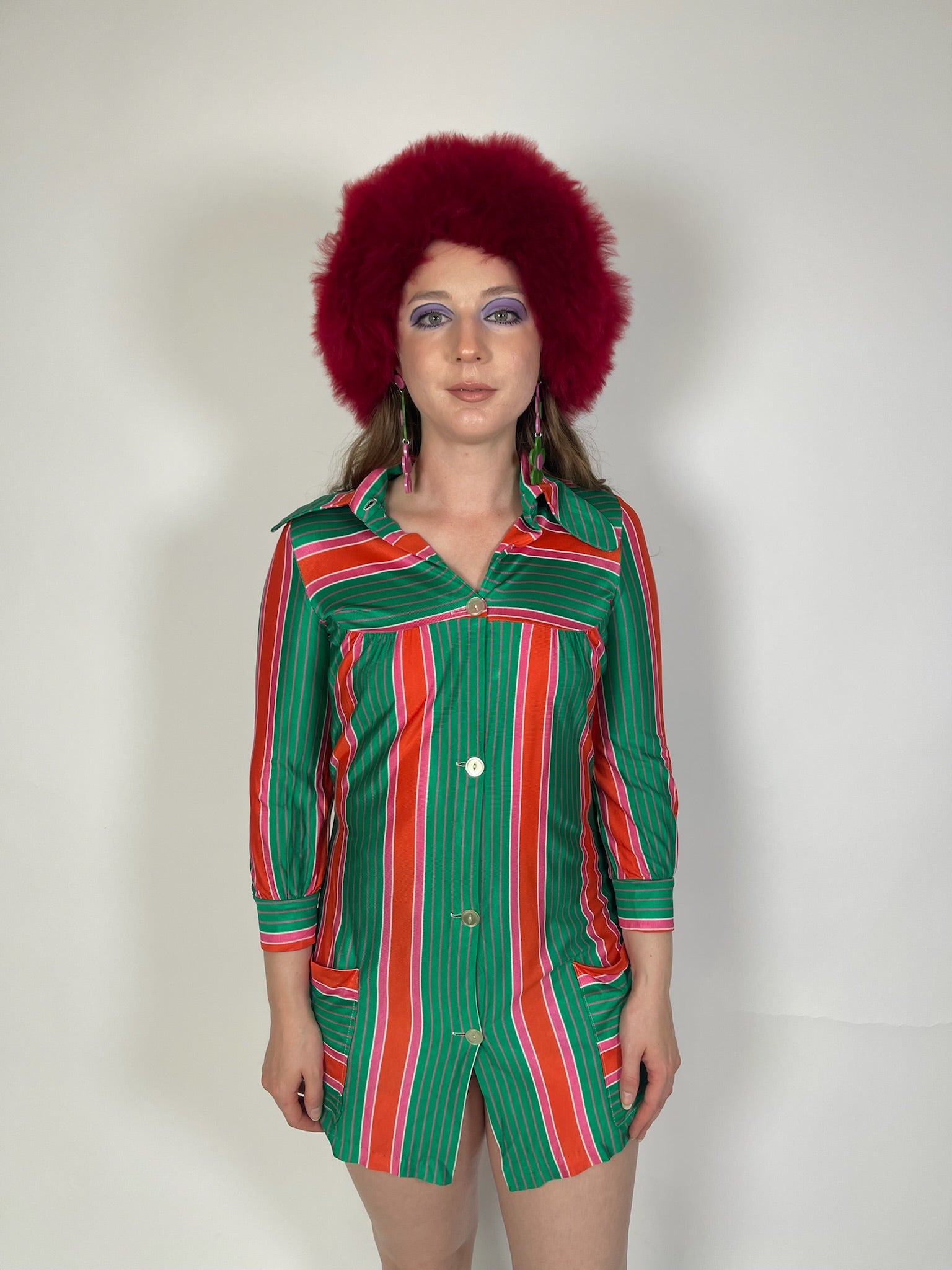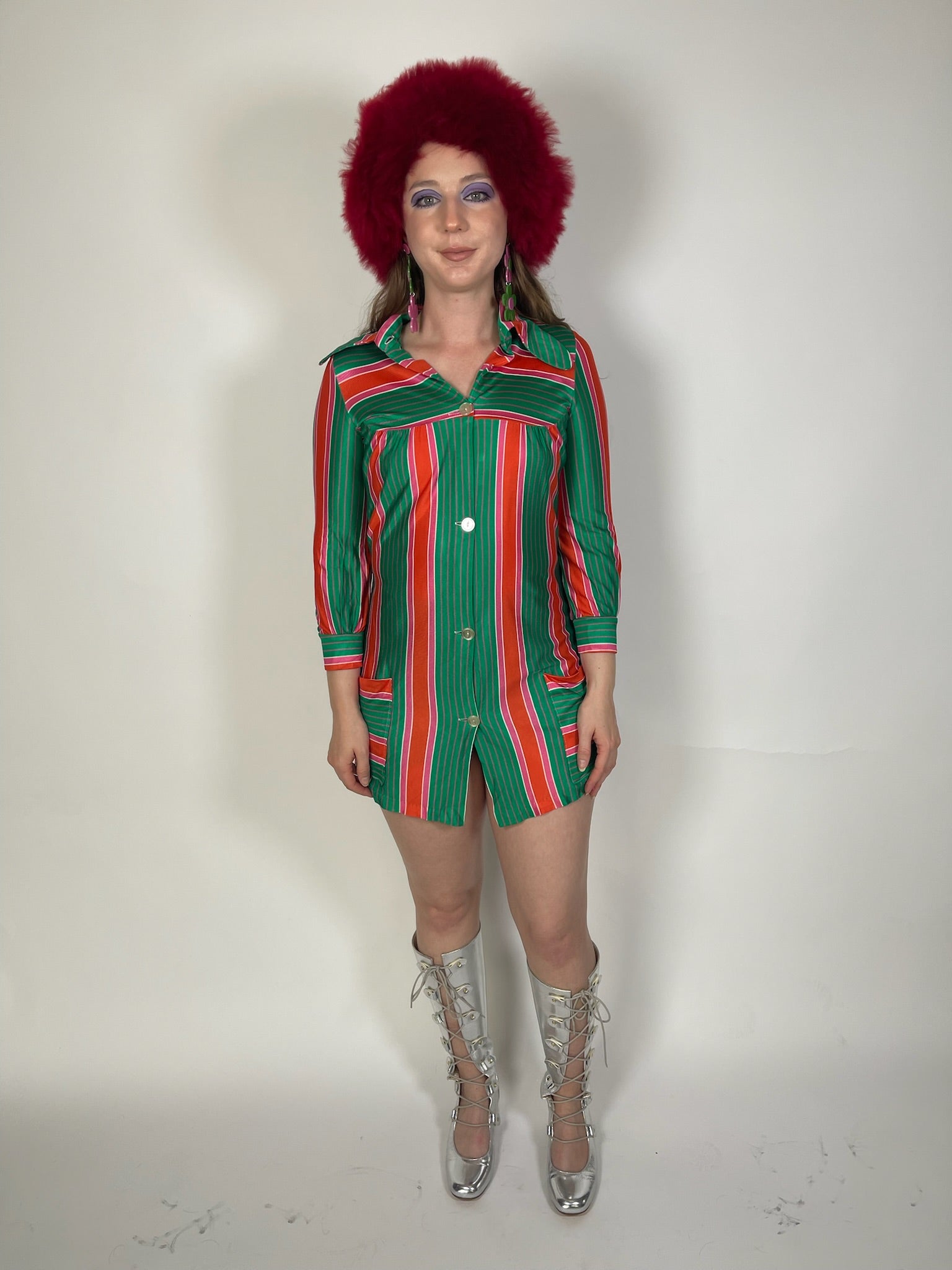 Vintage 60s 70s Striped Shirt Dress - Best Fits XS-S