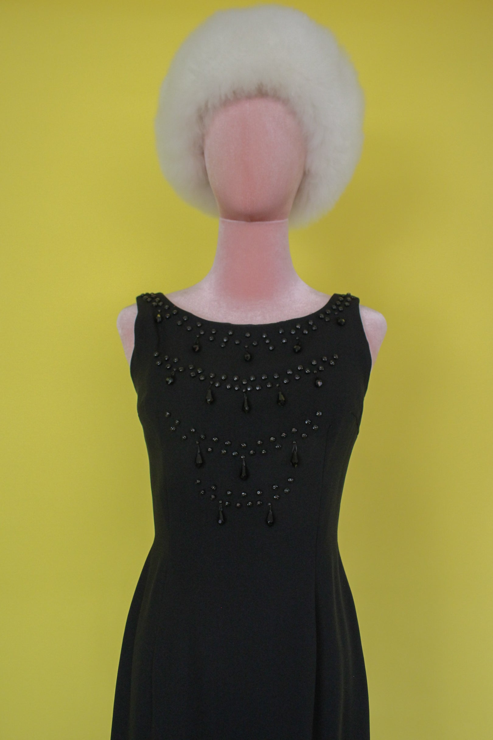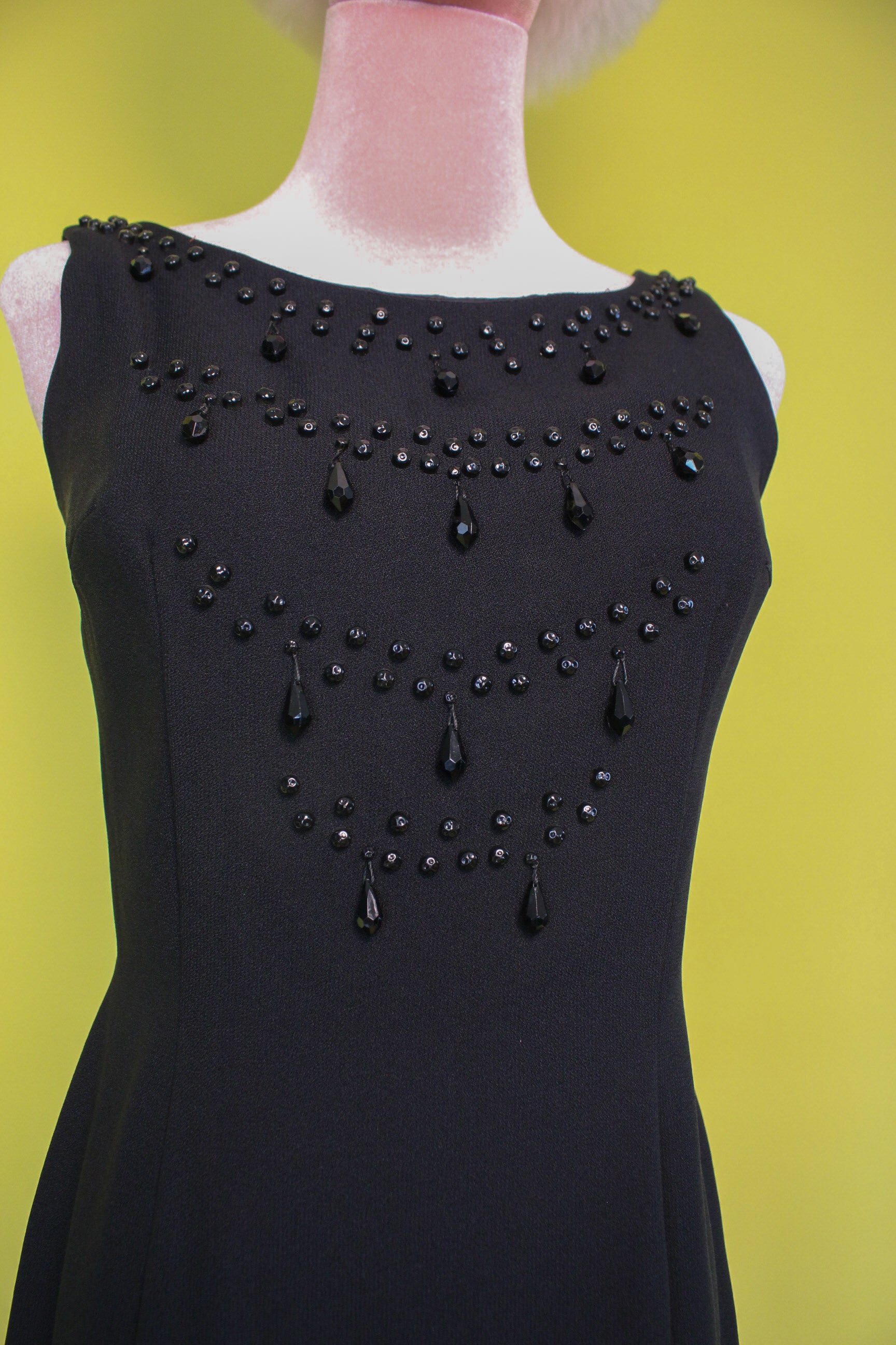 Vintage 60s Black Teardrop Beaded Wiggle Dress Best Fits Size S