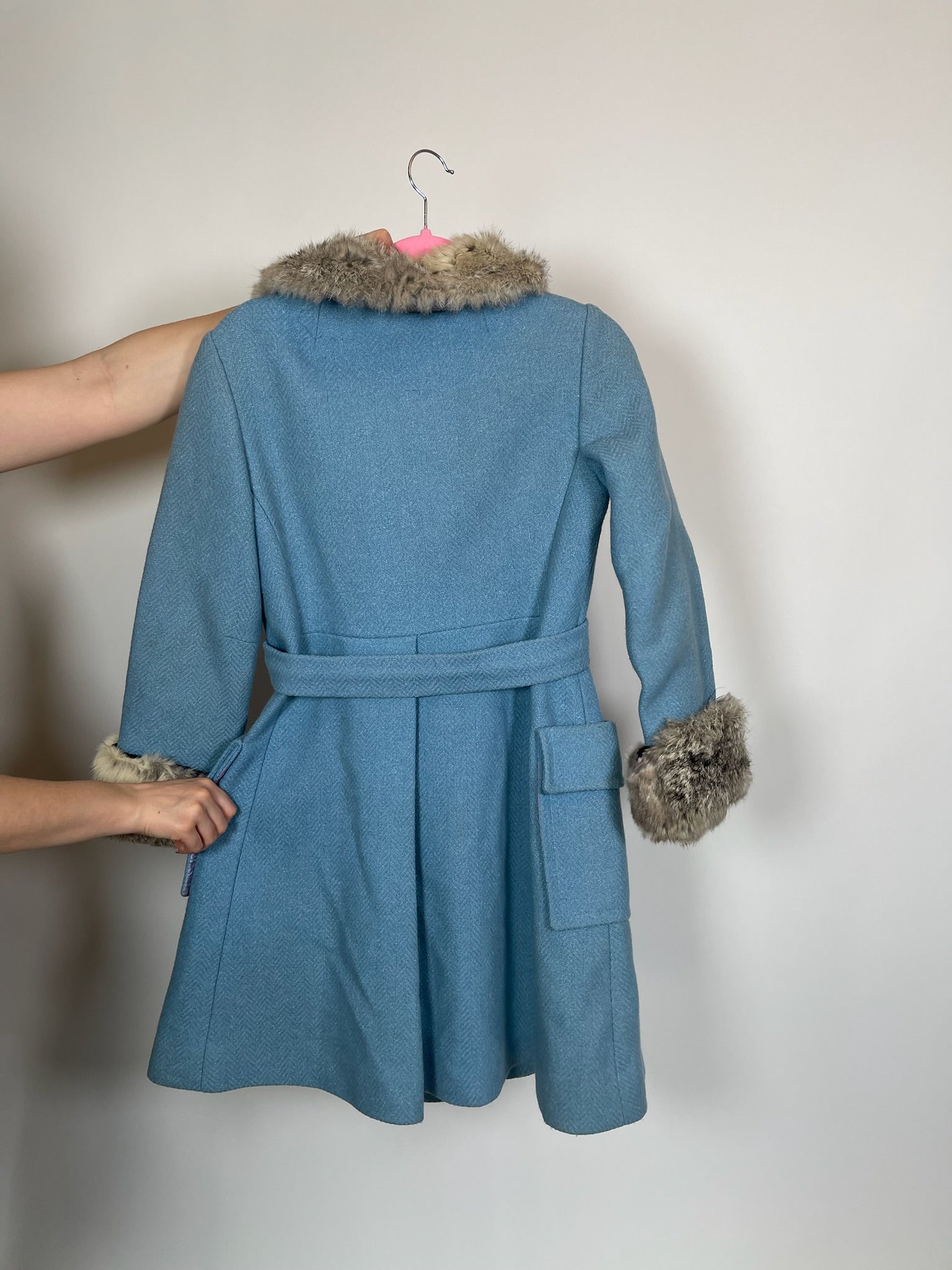 Vintage 60s Blue Coat With Rabbit Hair Collar - Best Fits Sizes XS-M