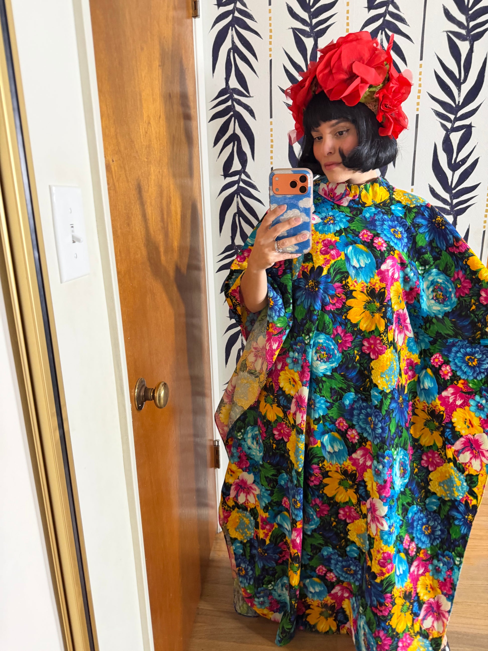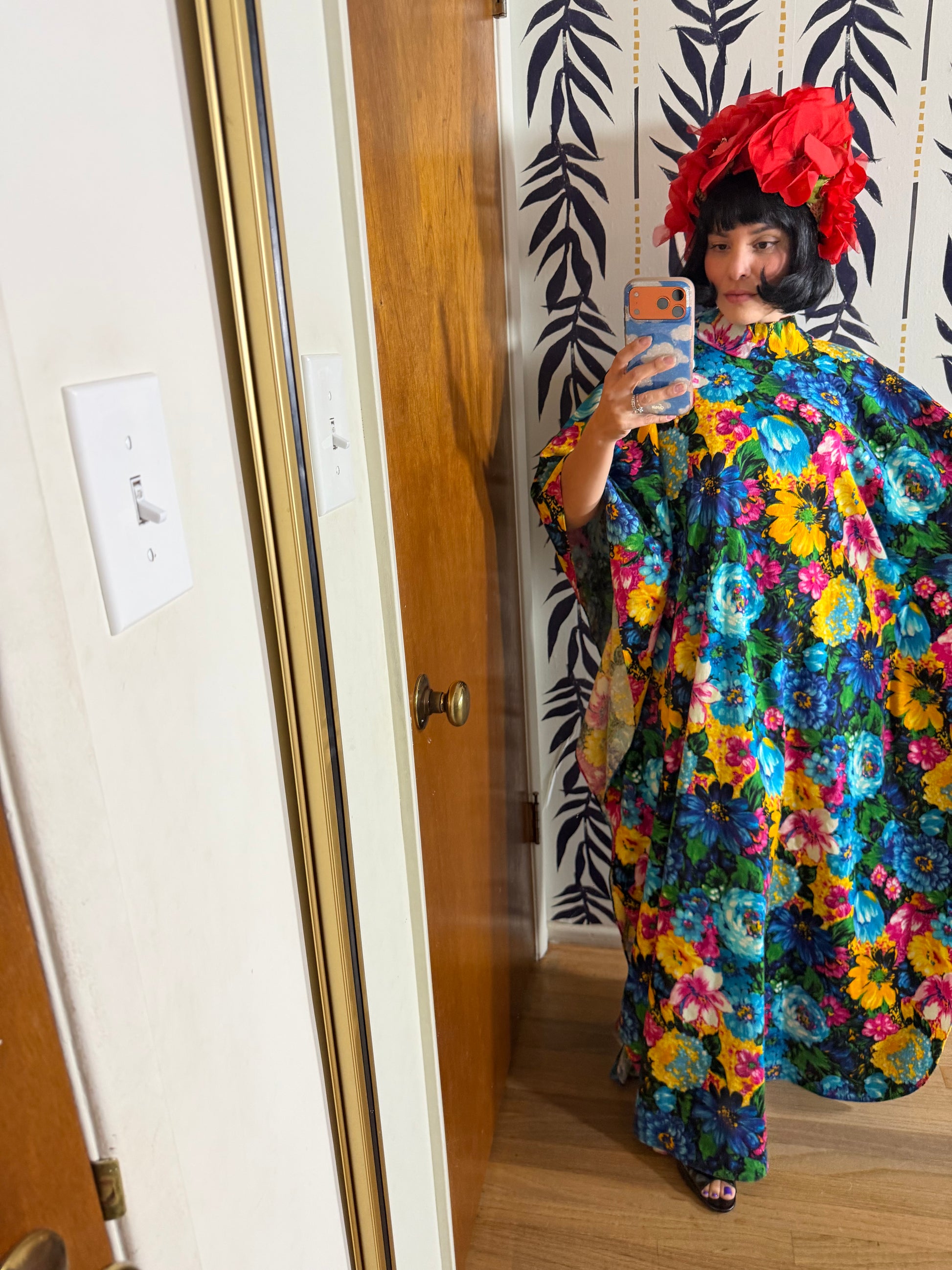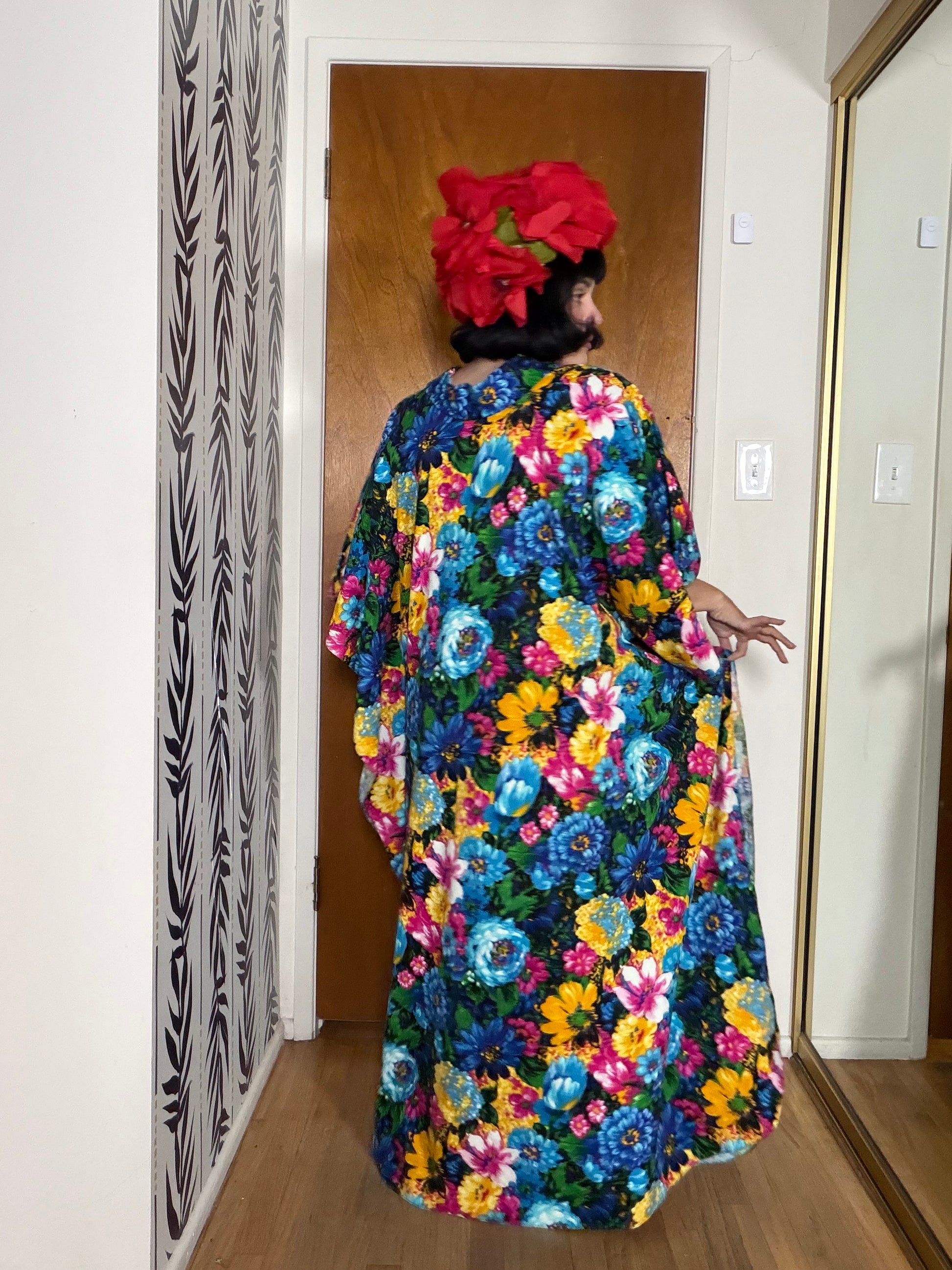 Measured Flat: Bust up to 23”/ waist up to 23”/ hips up to 26”/ caftan length 55.5”
