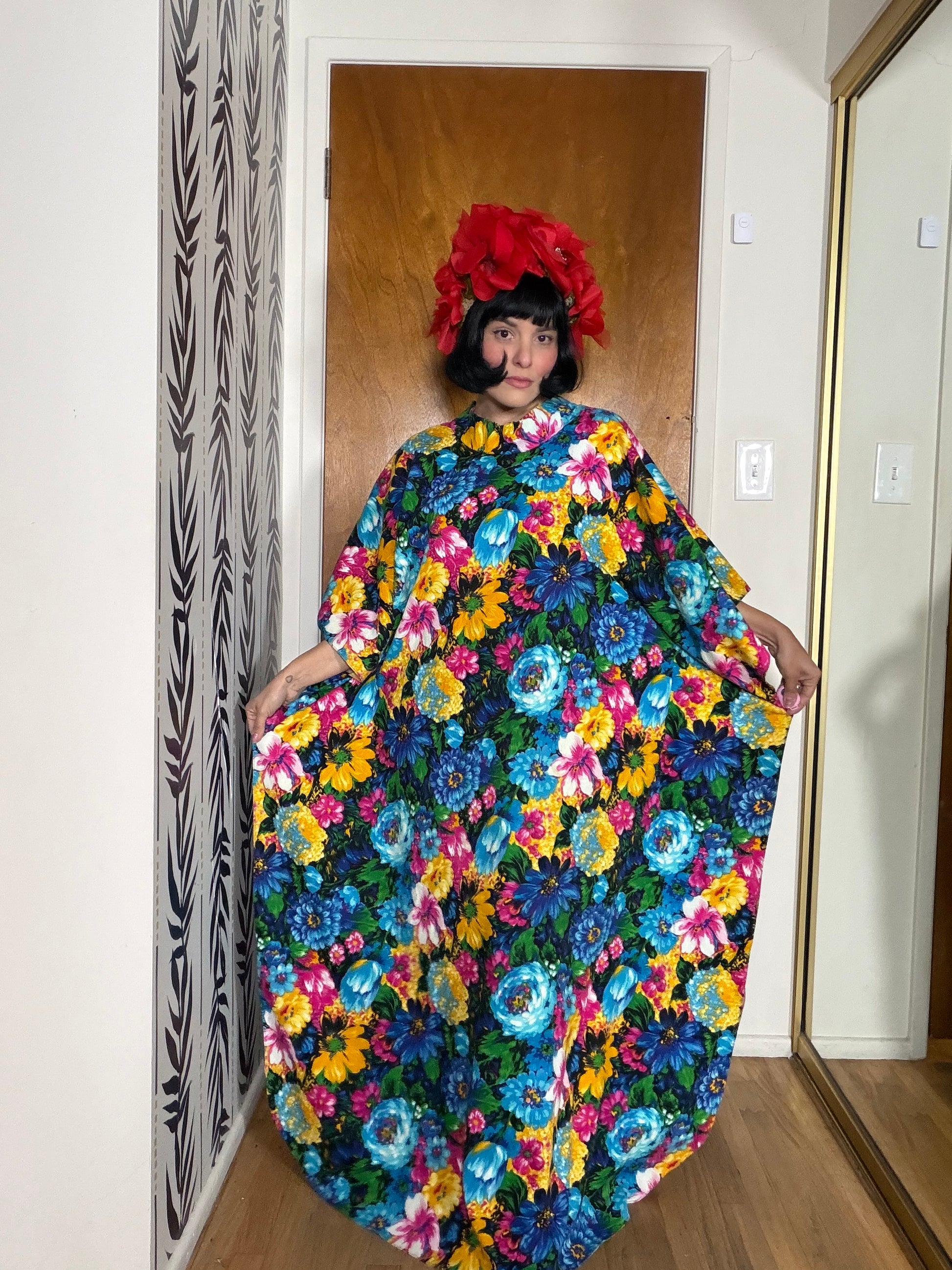 Vintage 60s Hilo Hattie Fashions Hawaii Caftan Dress Fits S-L