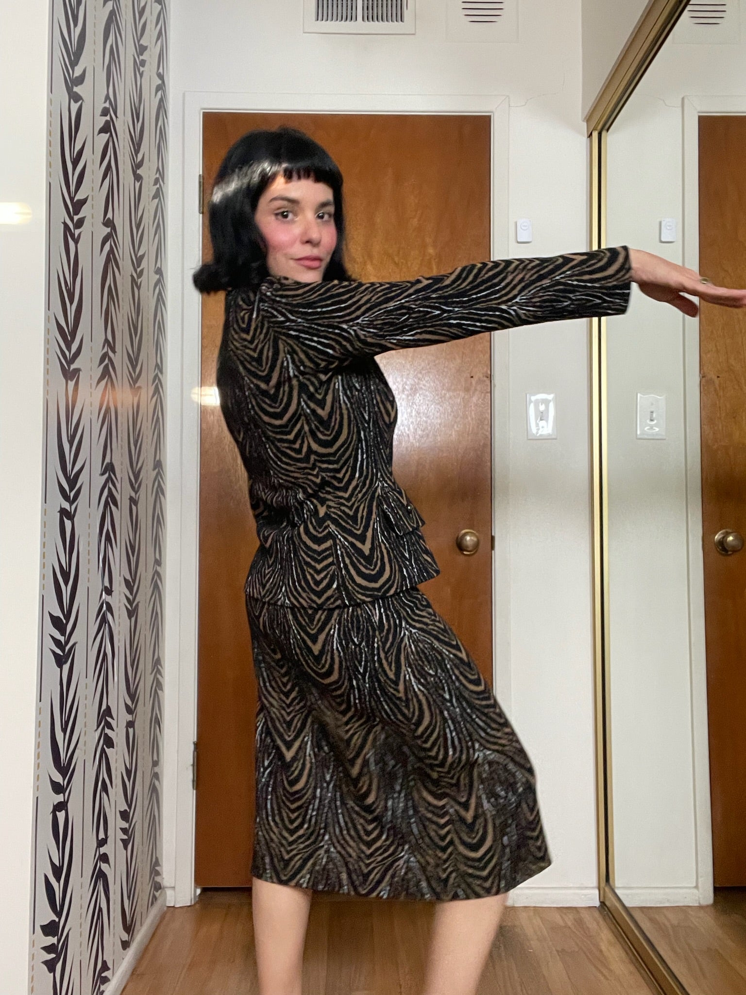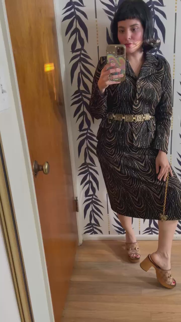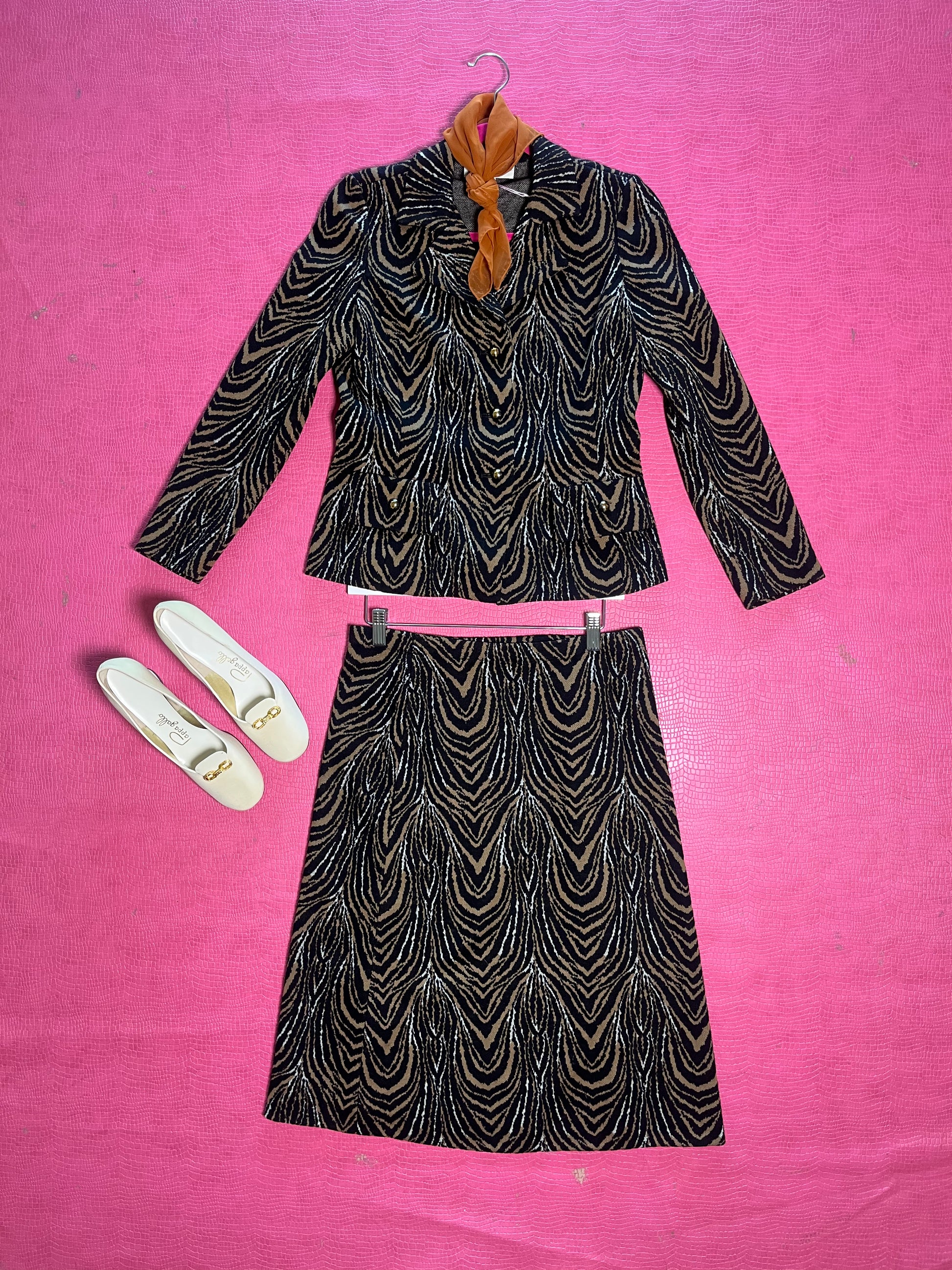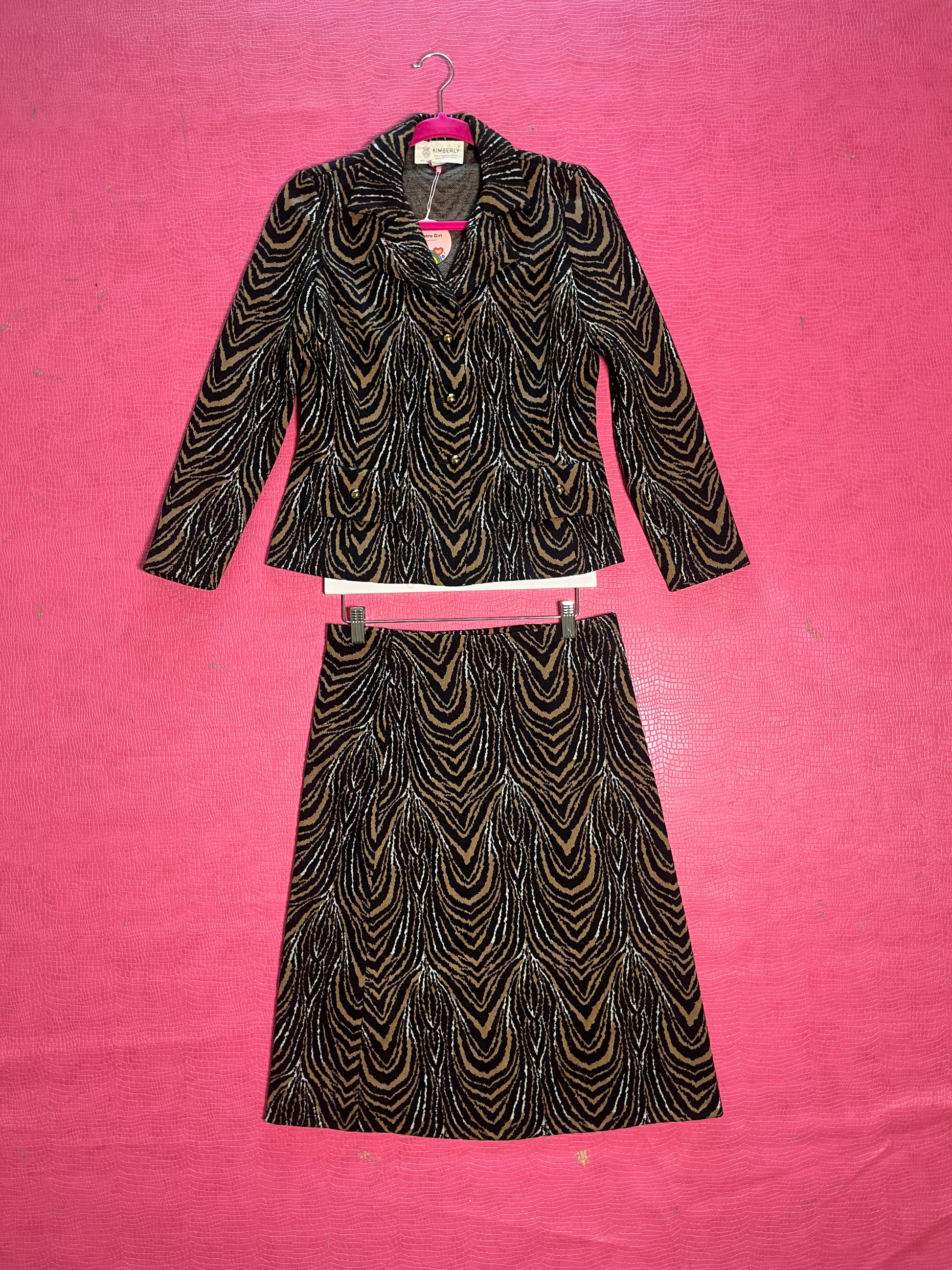 Vintage 60s "Kimberly Knits" Tiger Print 2-Piece Skirt Set - Best Fits Size XS-M