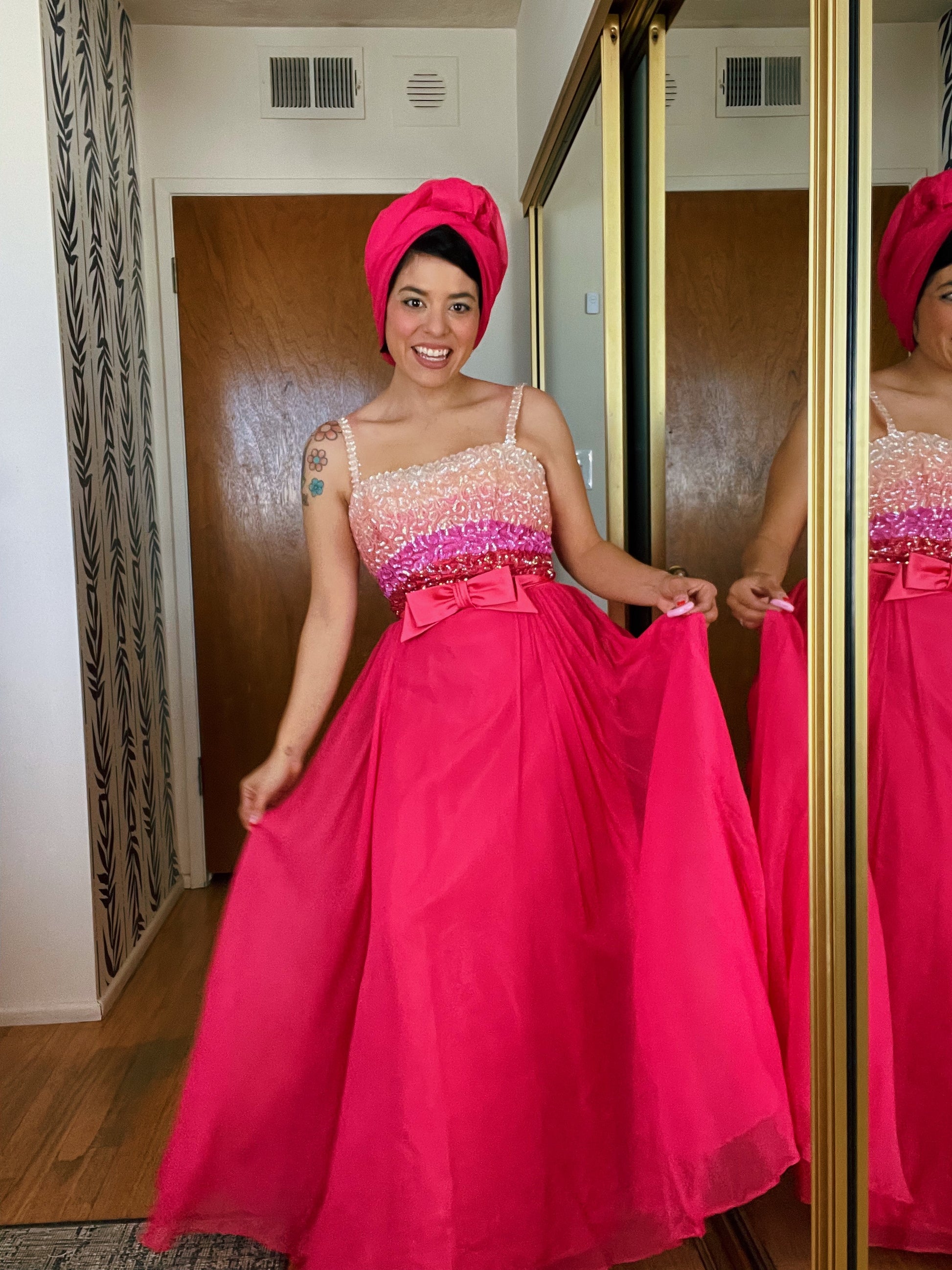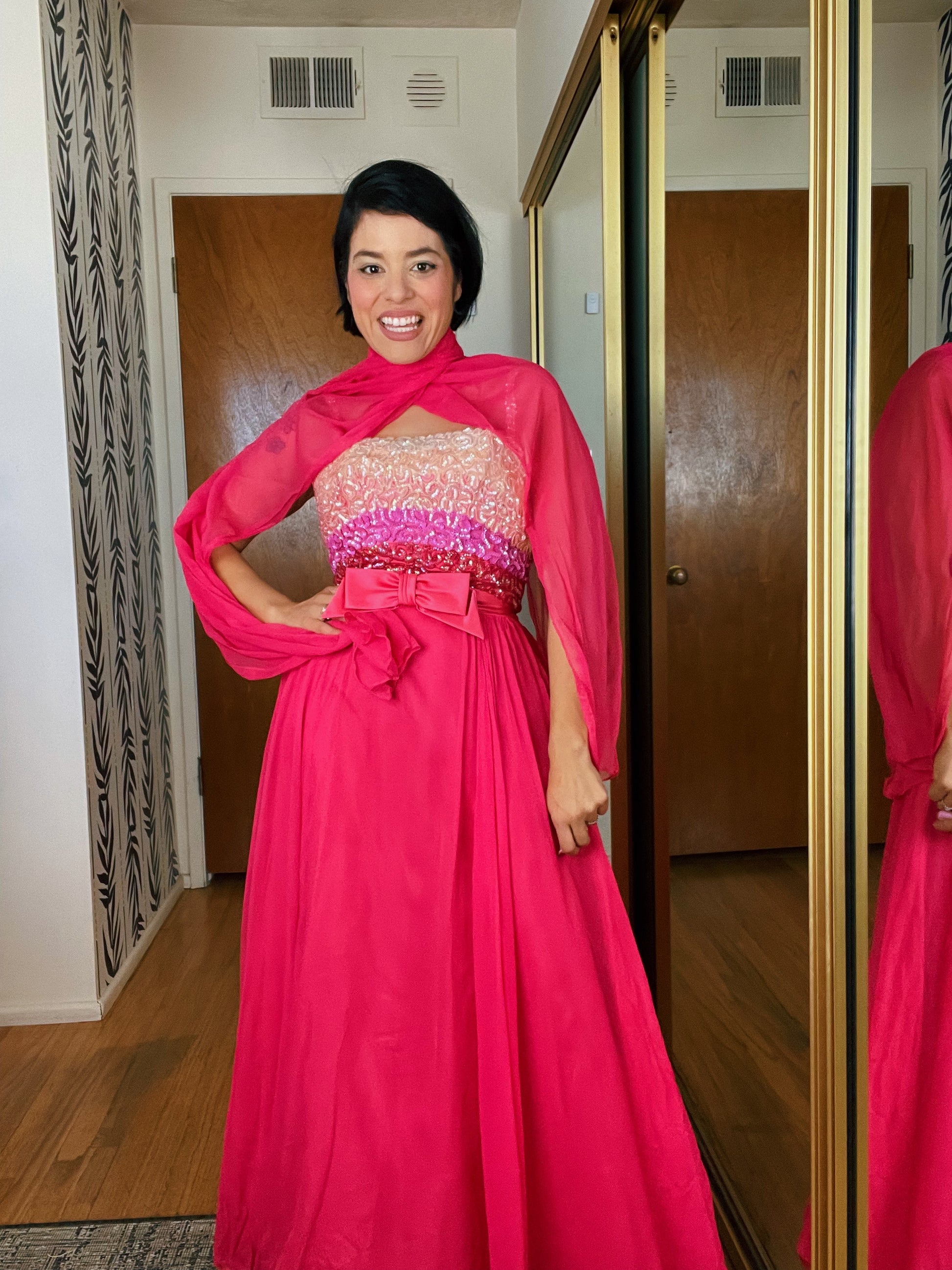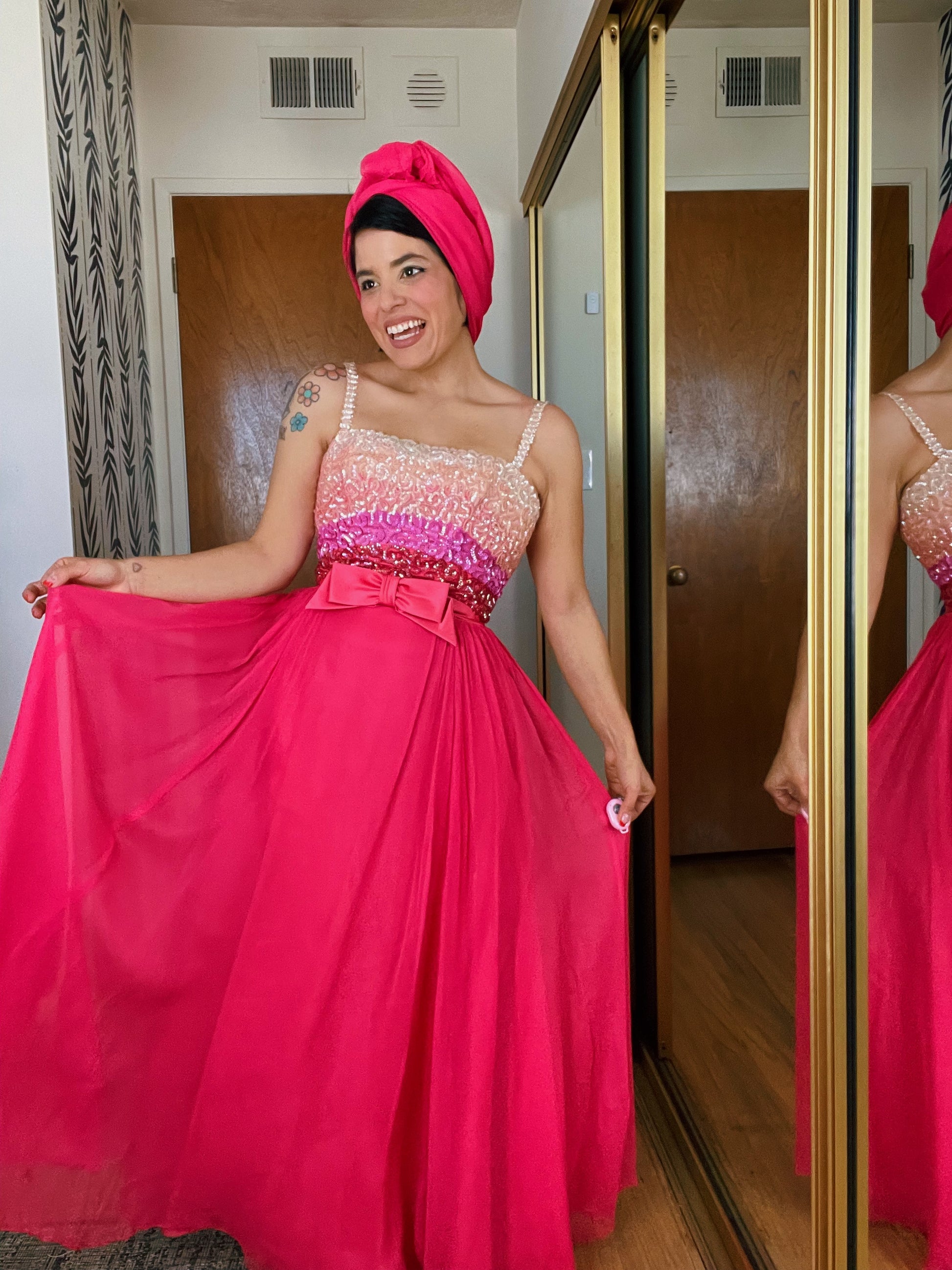 Vintage 60s Ombré Emma Domb Sequins Chiffon Gown Set Fits Sizes XXS-XS