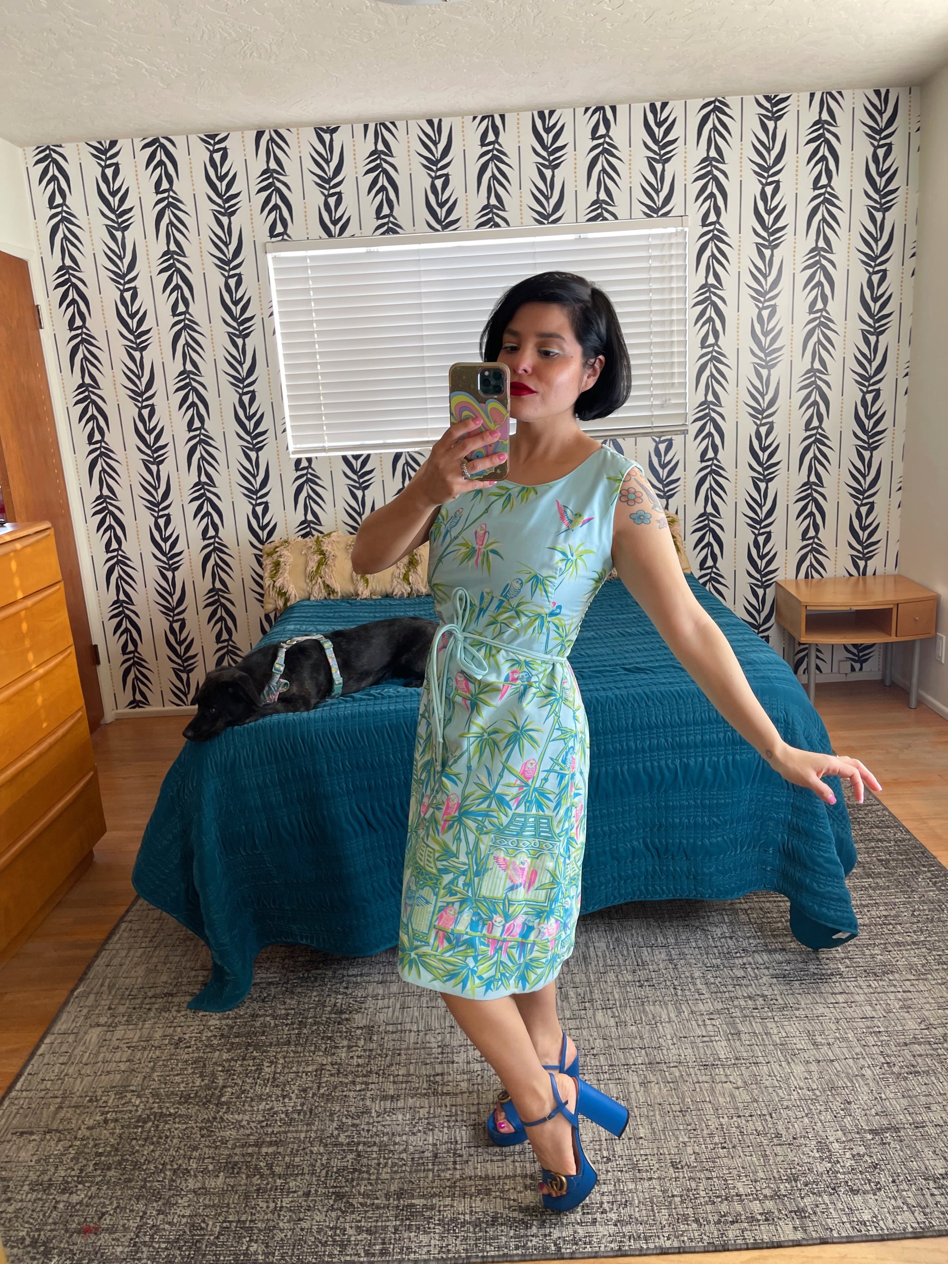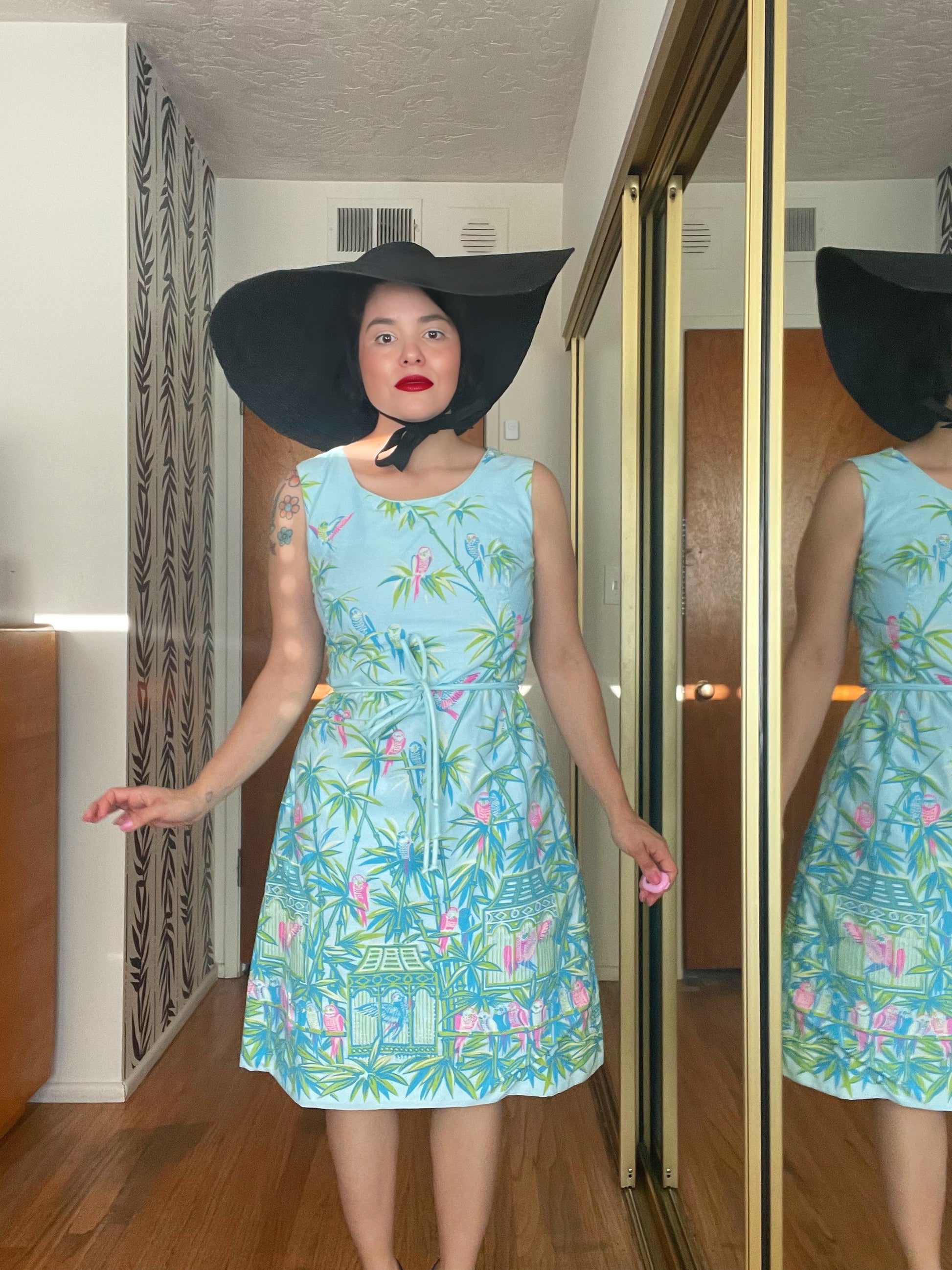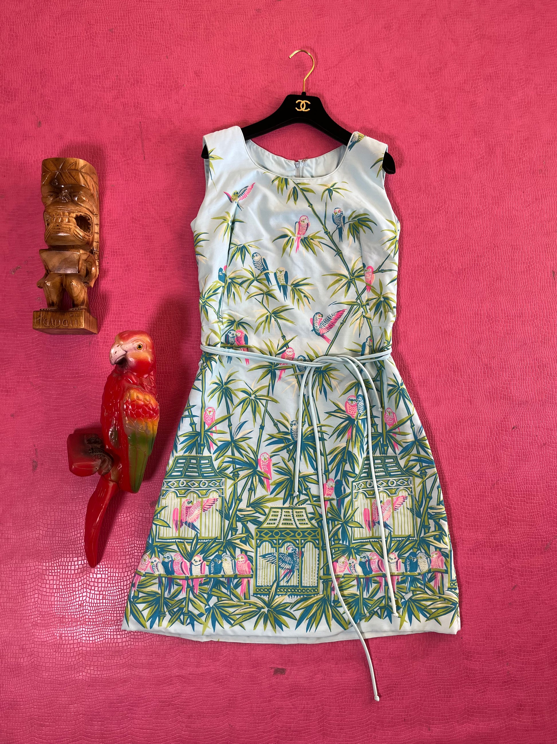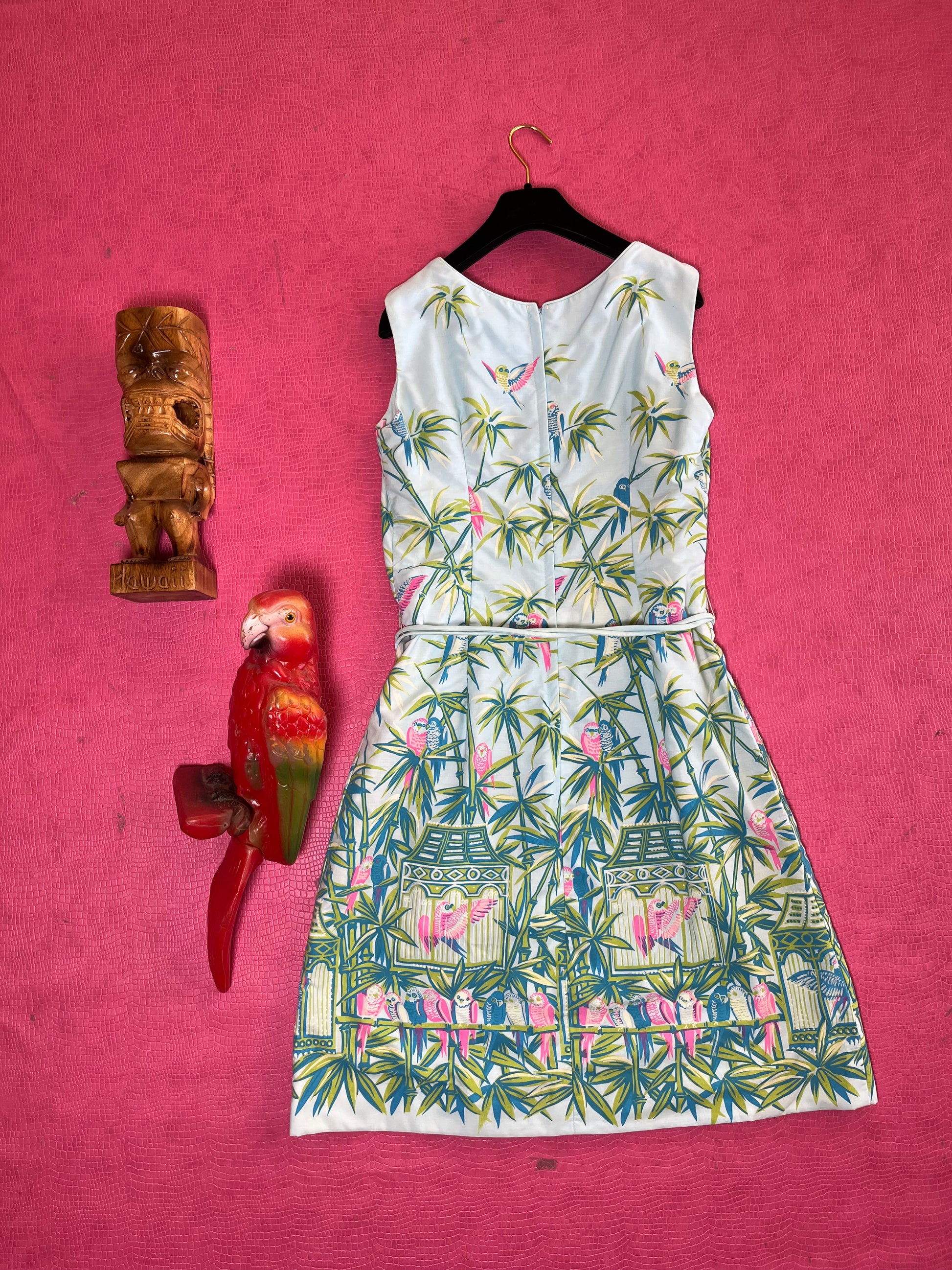 Dress Features: Inner Lining / Back Zipper / Detachable Waist Ties / Tropical Bird Print Give Disney's Tiki Room Vibes / Attached Brand Label / Back Zipper