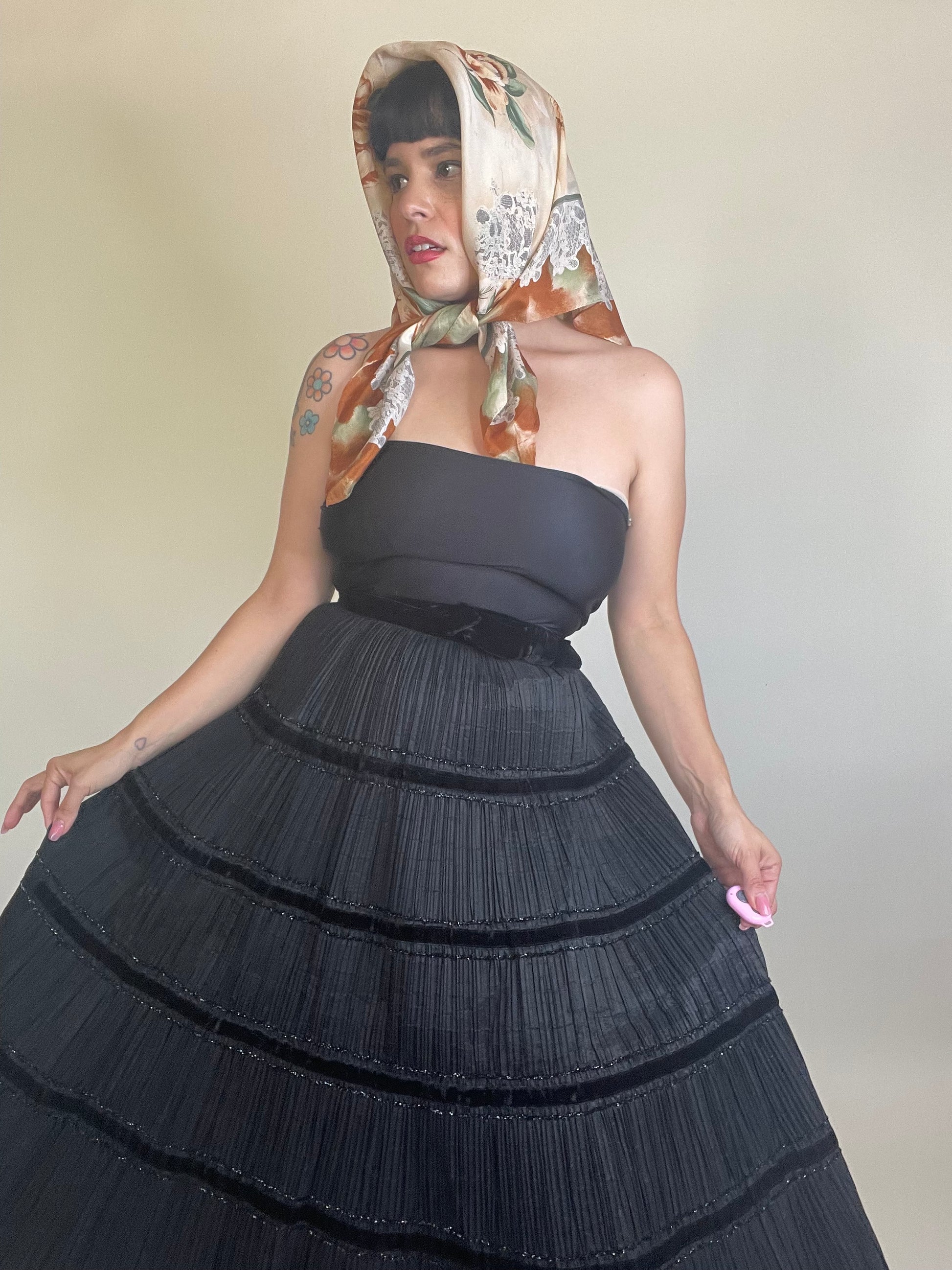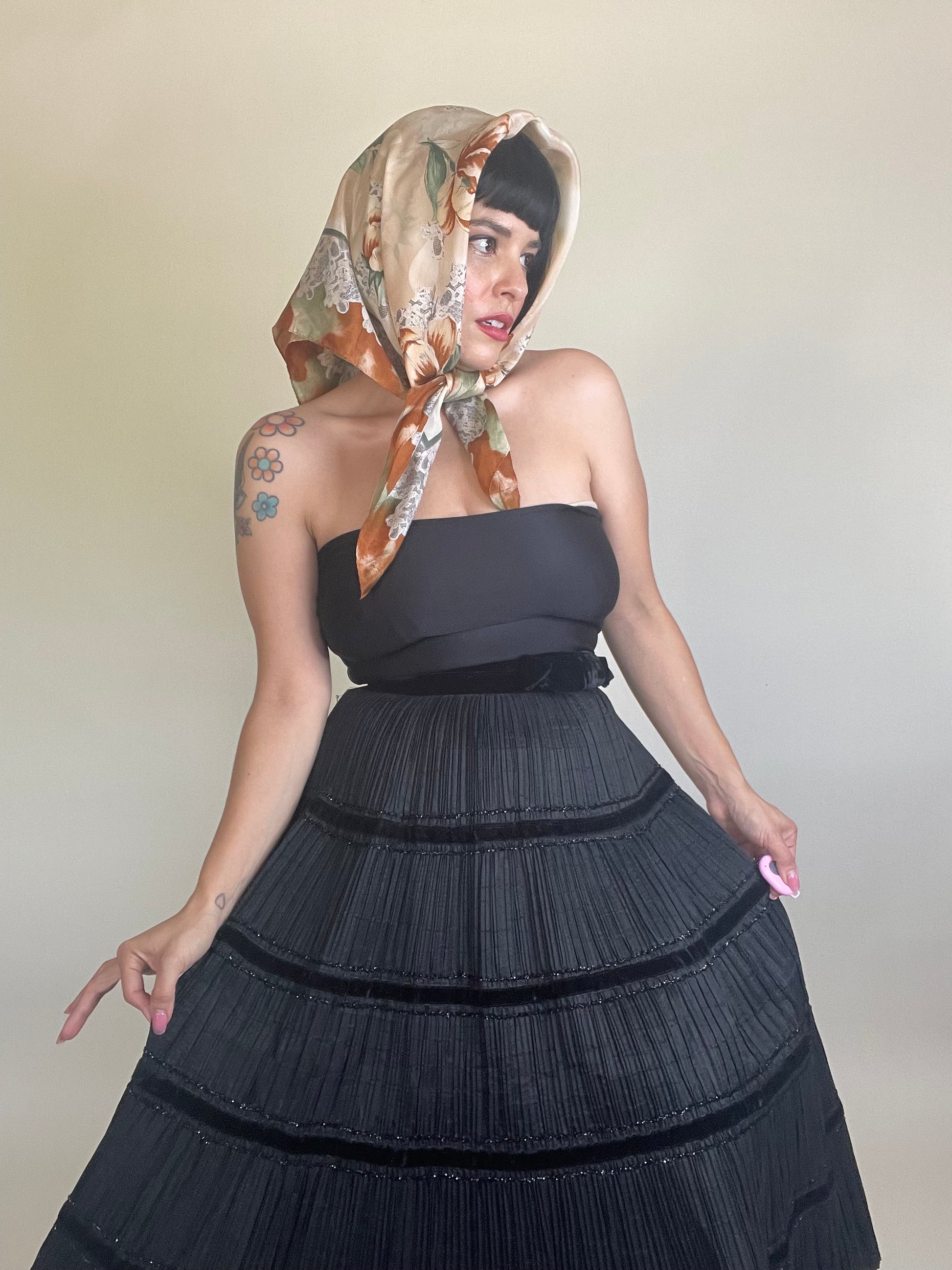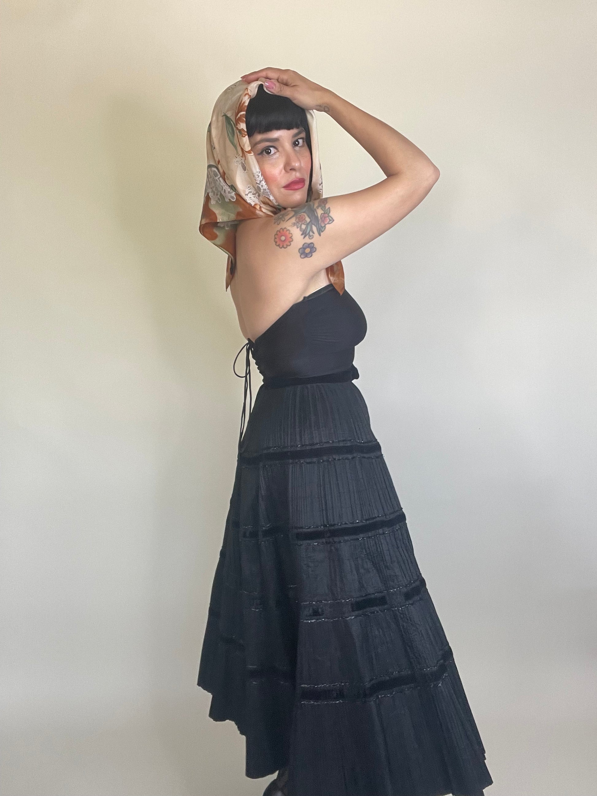 Vintage 70s / 80s Silk Lace Floral Print Scarf