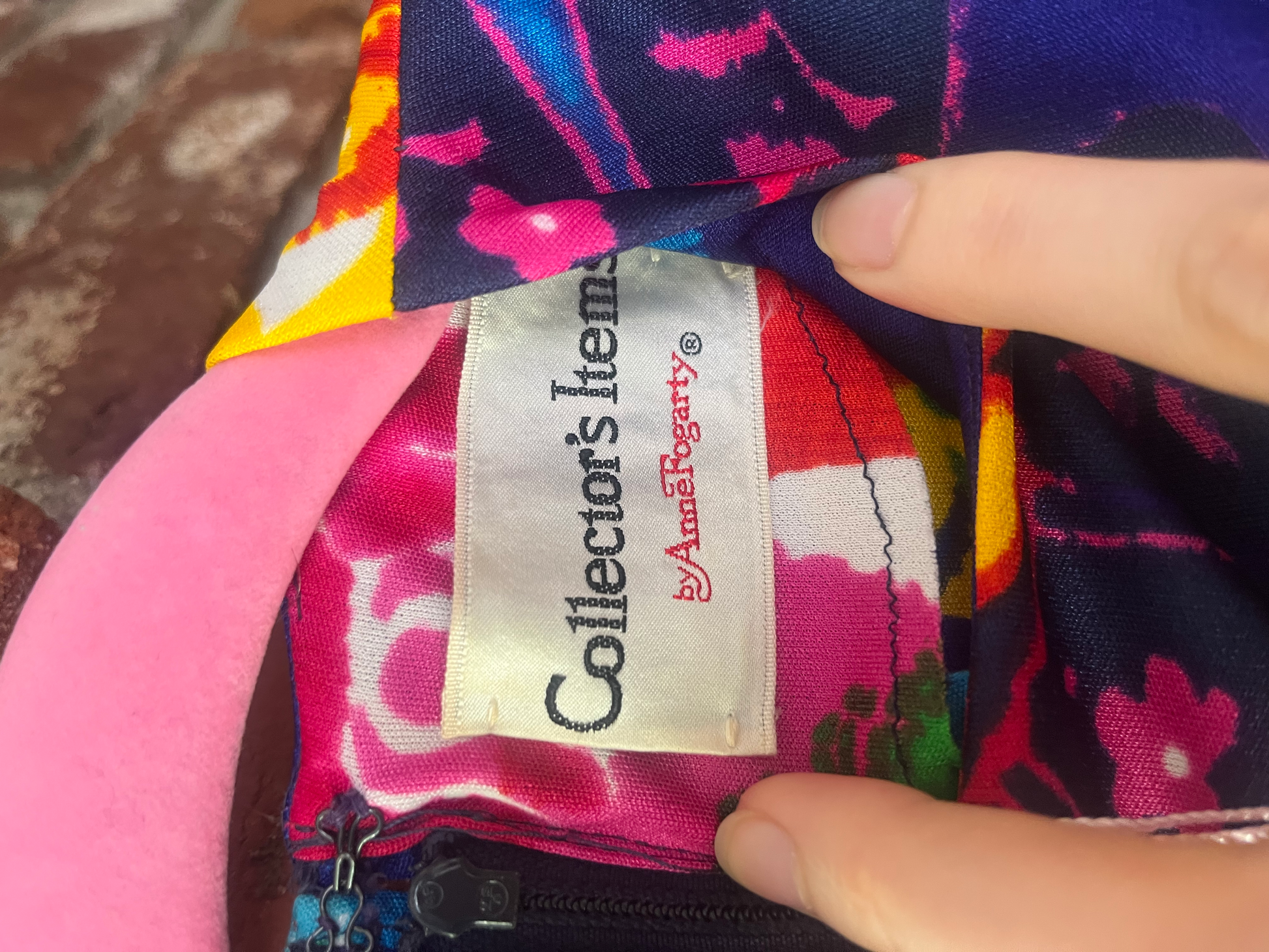This dress has two labels: "Collector's Items by Anne Fogarty" and "Designer Clothes from Patricia Burn Nashville"