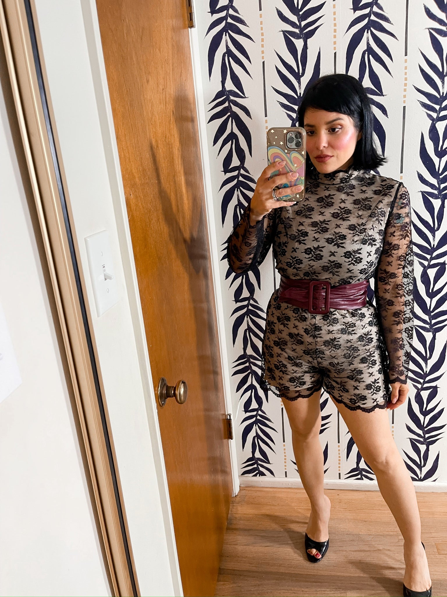 Vintage 70s "Daymor Couture" Black Lace Romper - Best Fits Size M