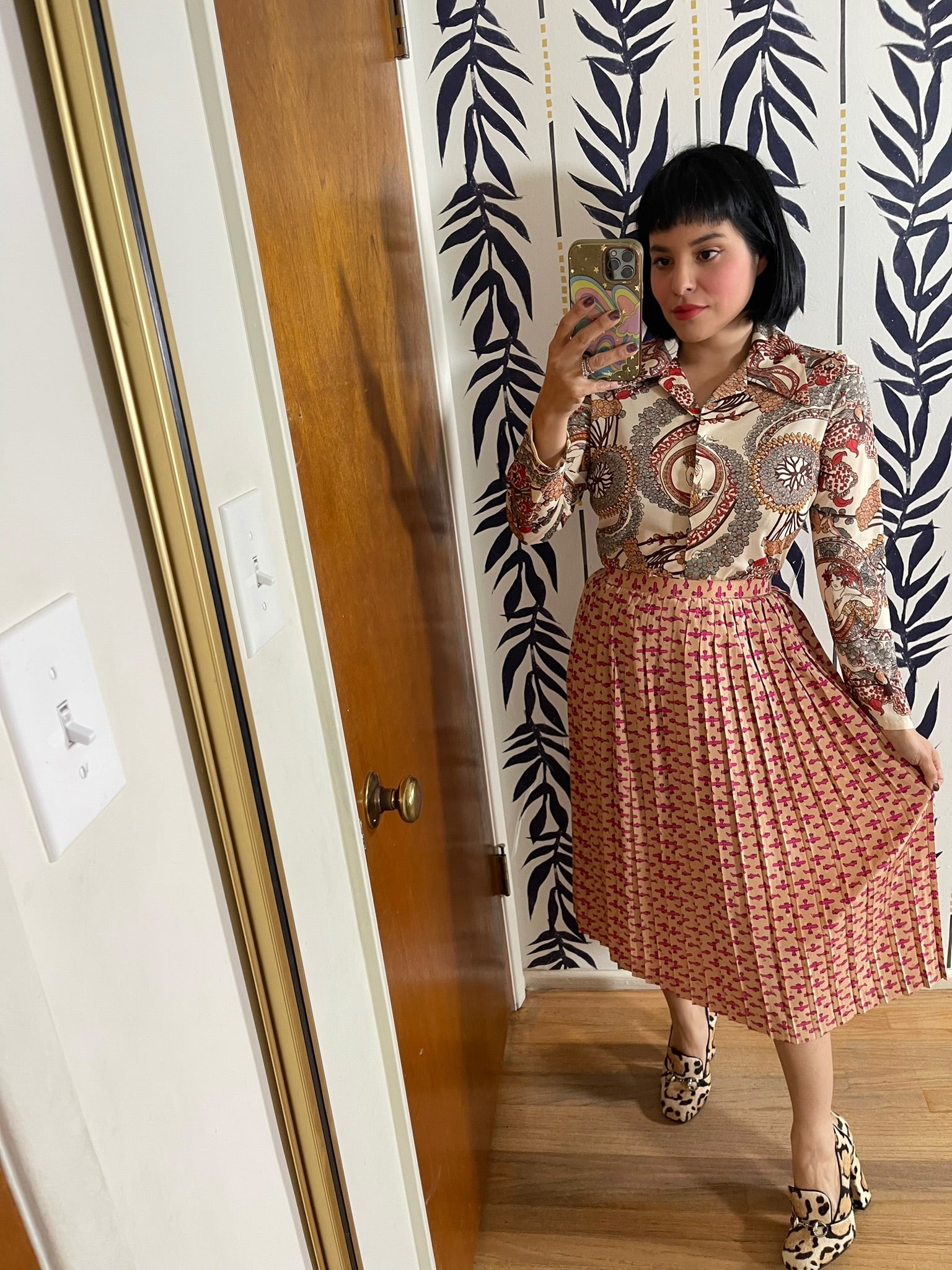 Vintage 70s Novelty Art Nouveau Print 3-piece - Best Fits Size XS-M