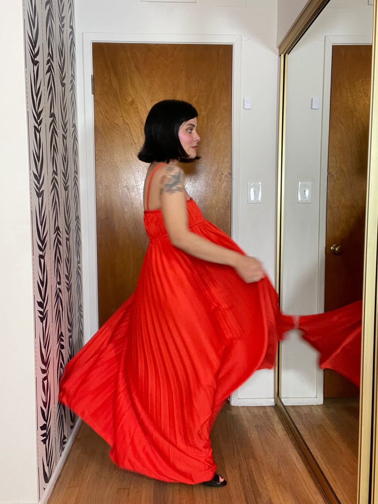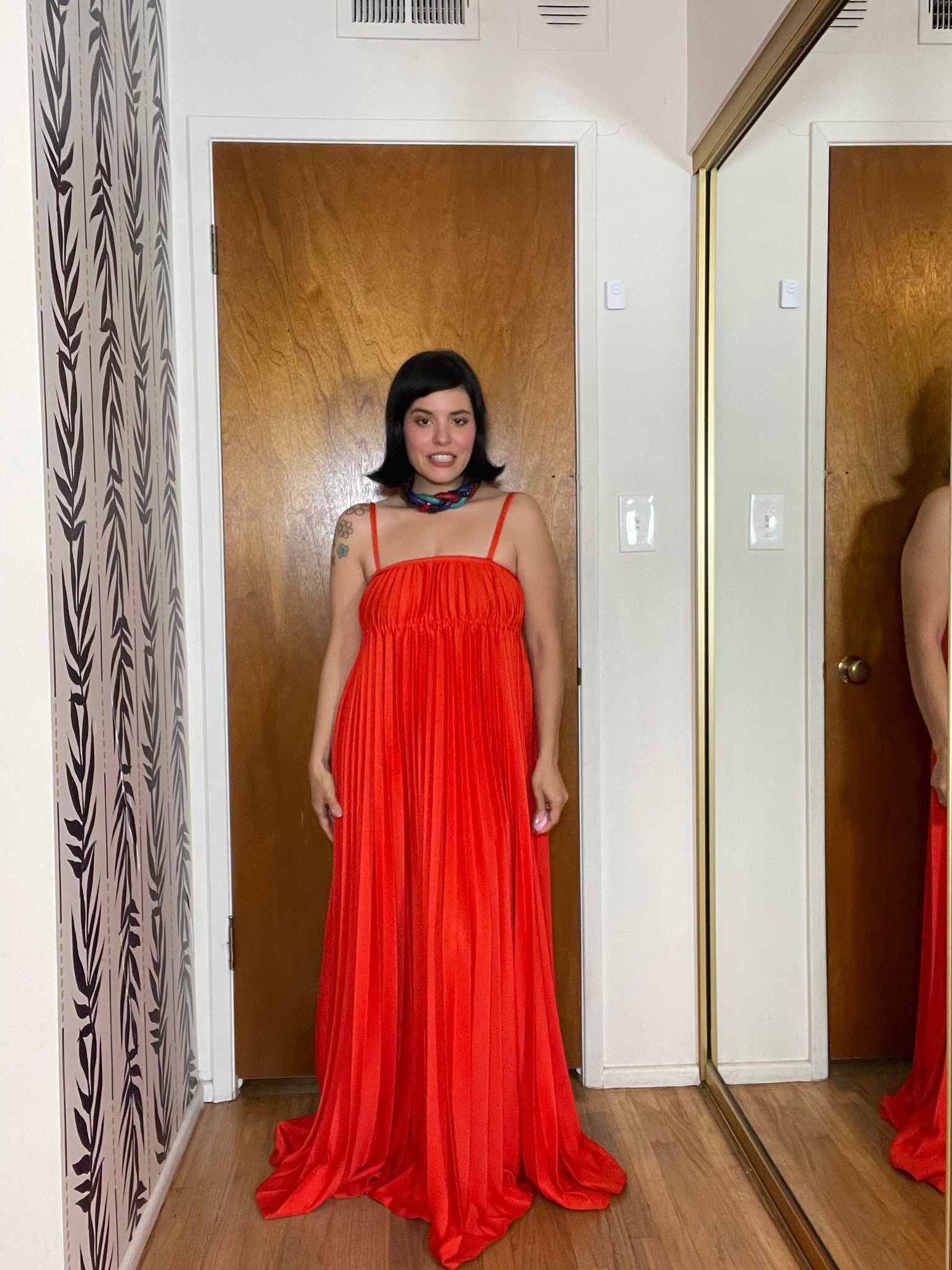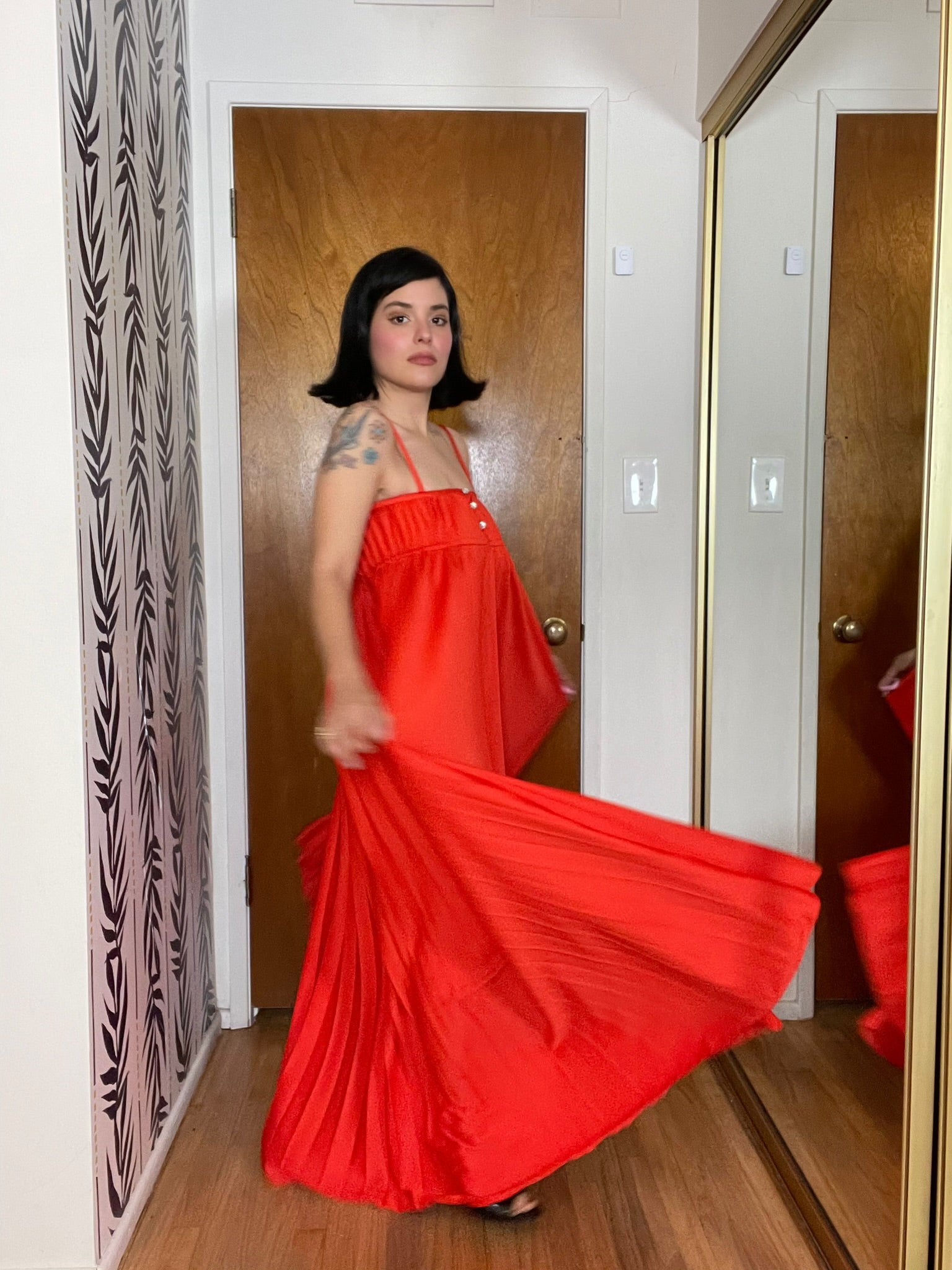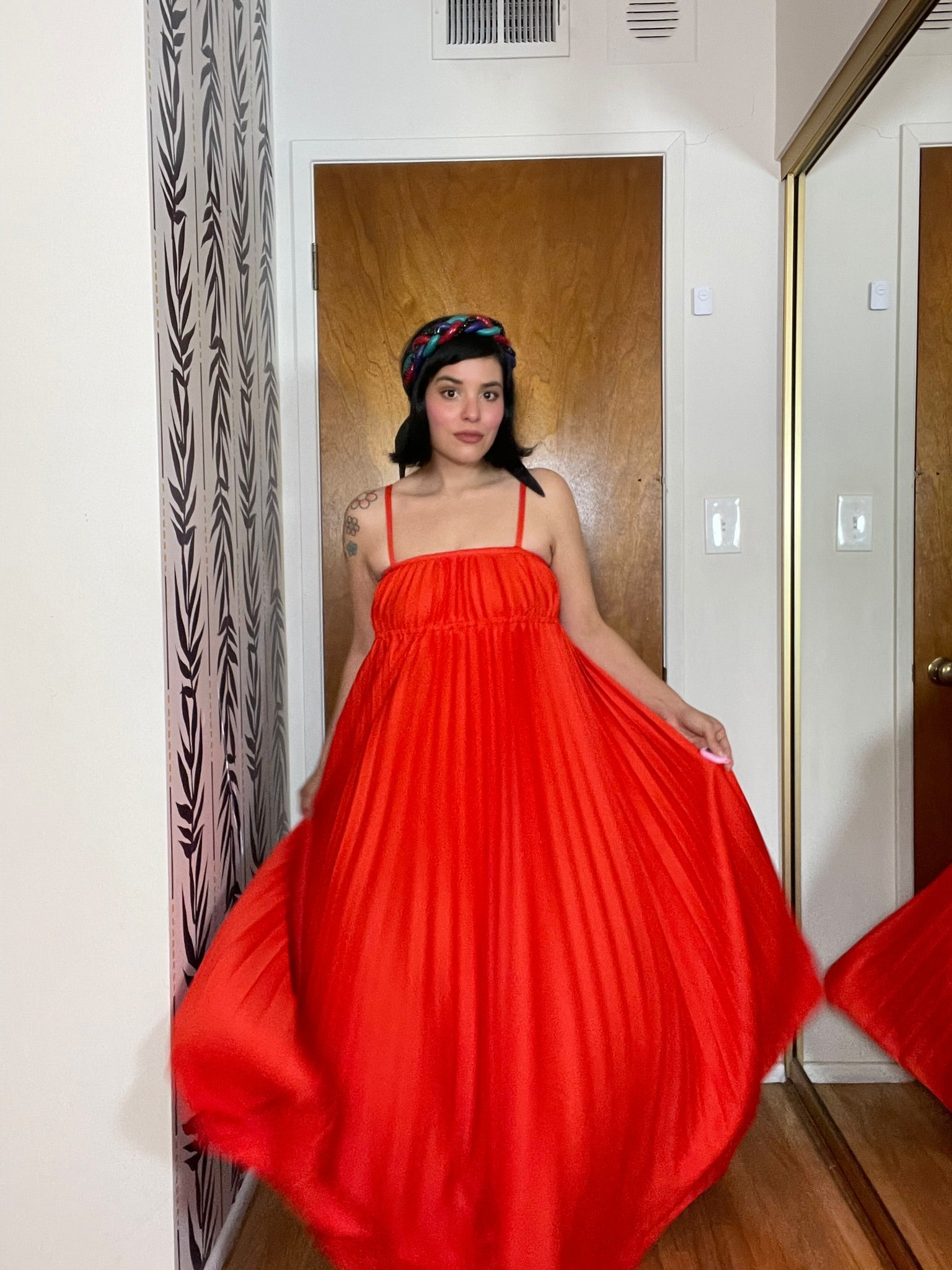 Vintage 70s "Oggee" Red Pleated Dress - Best Fits Size XS-S, Possibly M