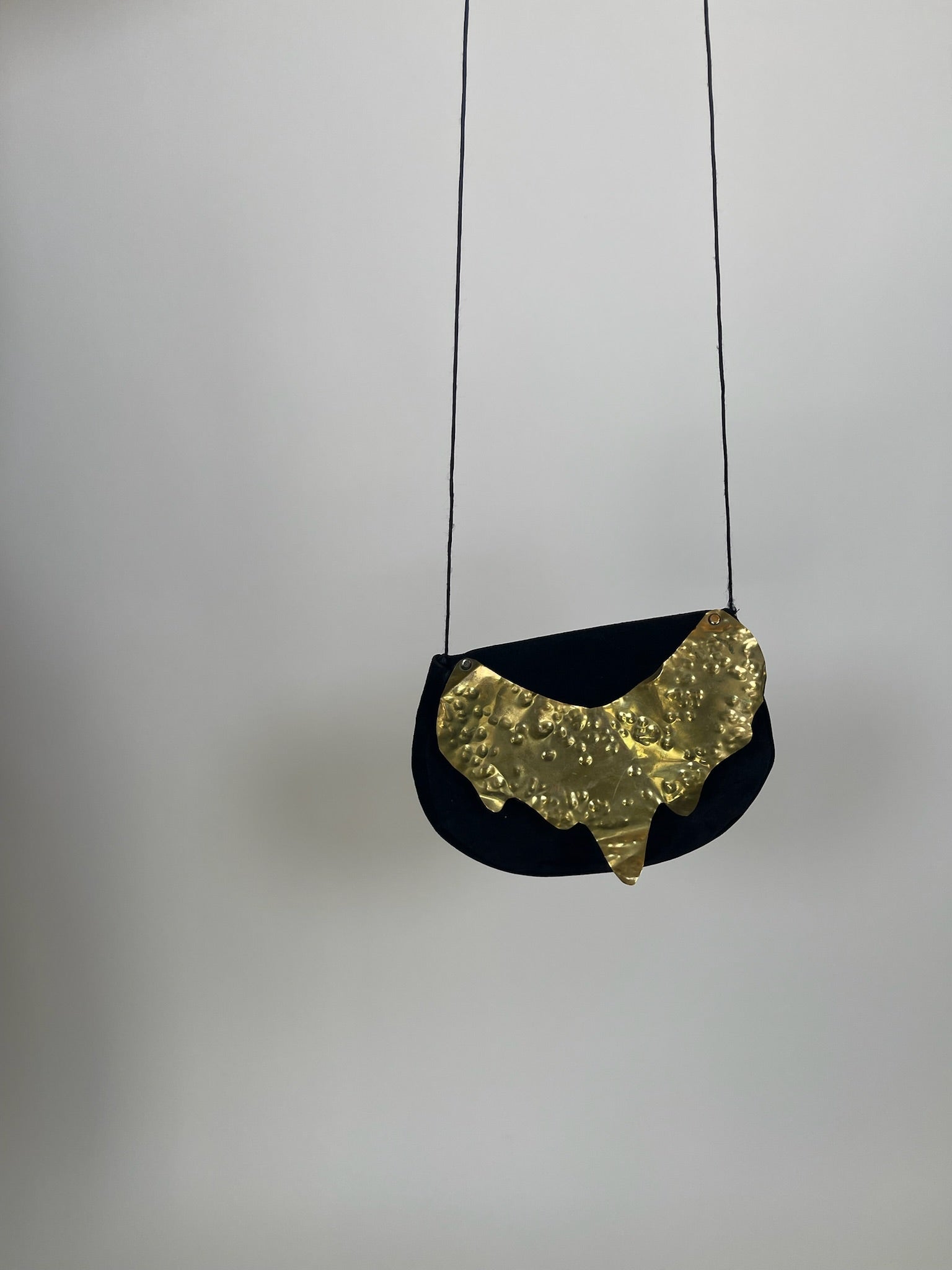 Bag Features: Tin Gold Decorative Flap / Suede Leather Material / Snap Button Closure / Lined with Satin