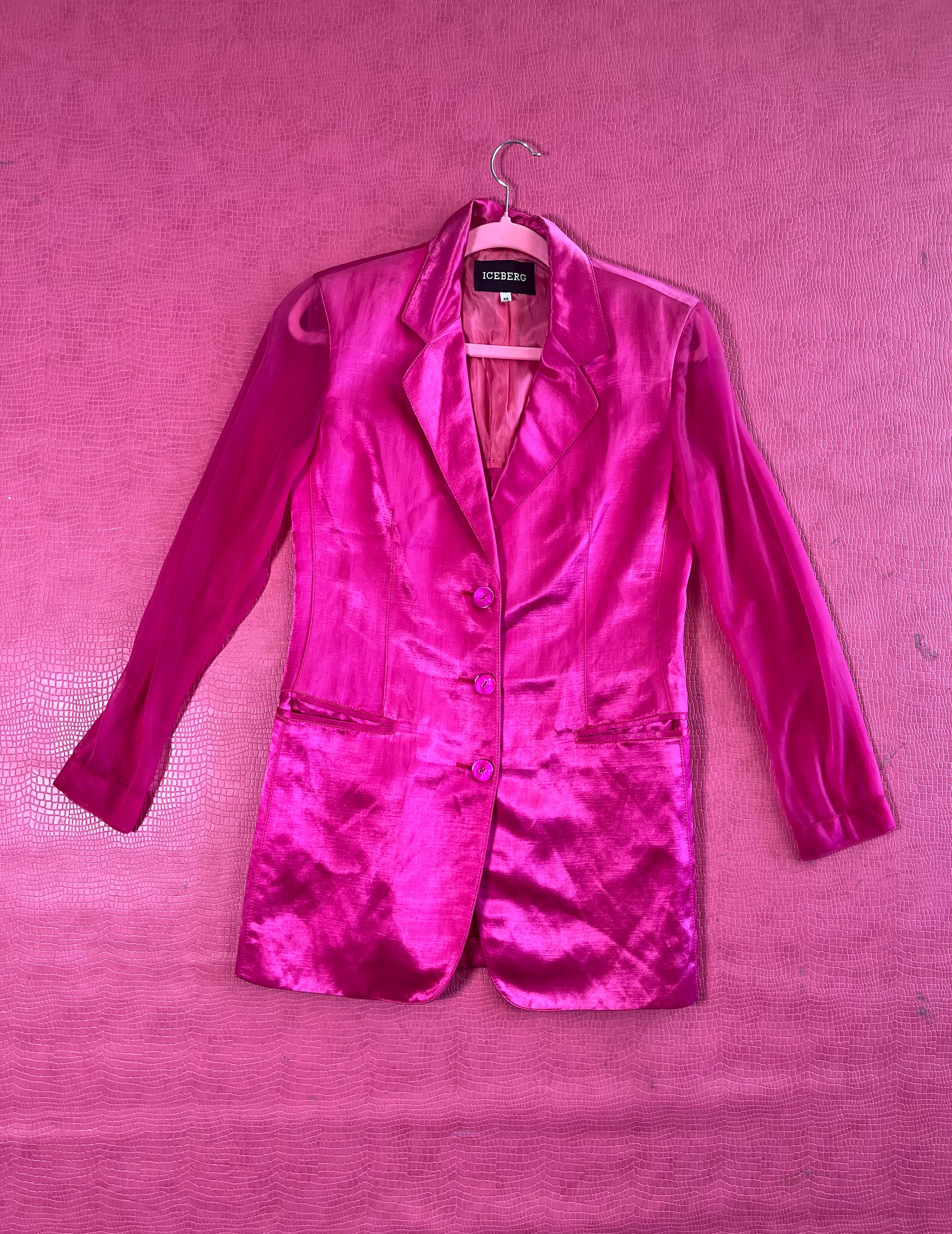 Vintage 80s "Iceberg" Pink Blazer Jacket Dress - Best Fits Size XS-S