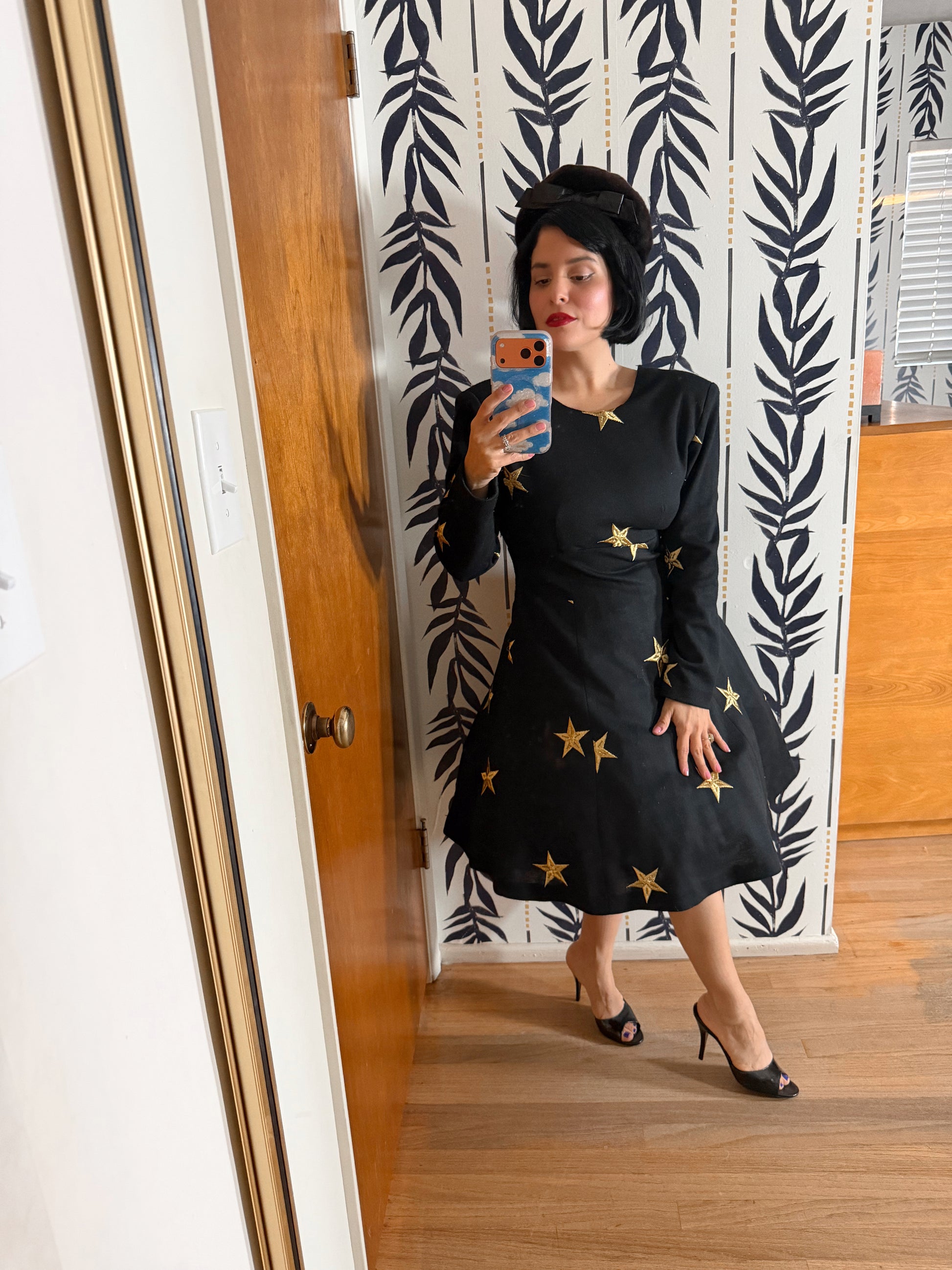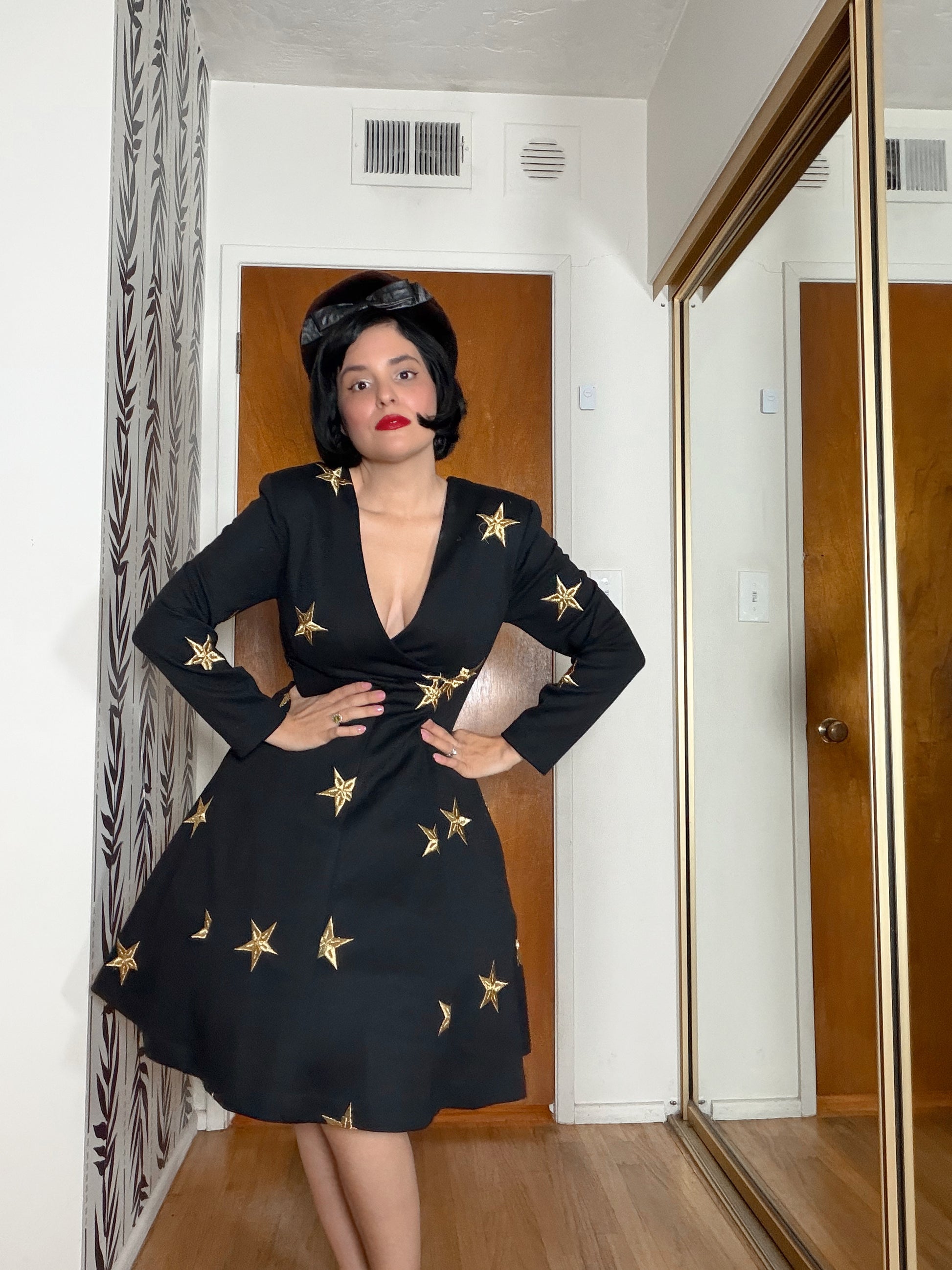 80s Meets 50s Star Embroidered Knit Soft Dress XS-SM