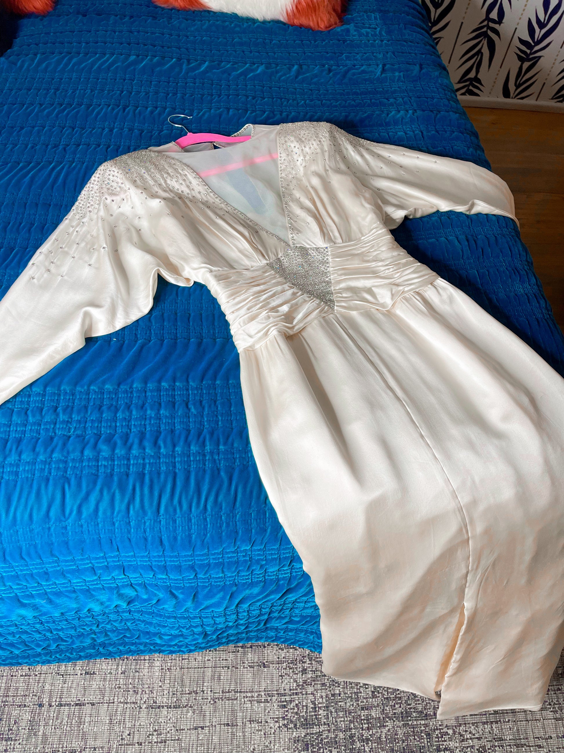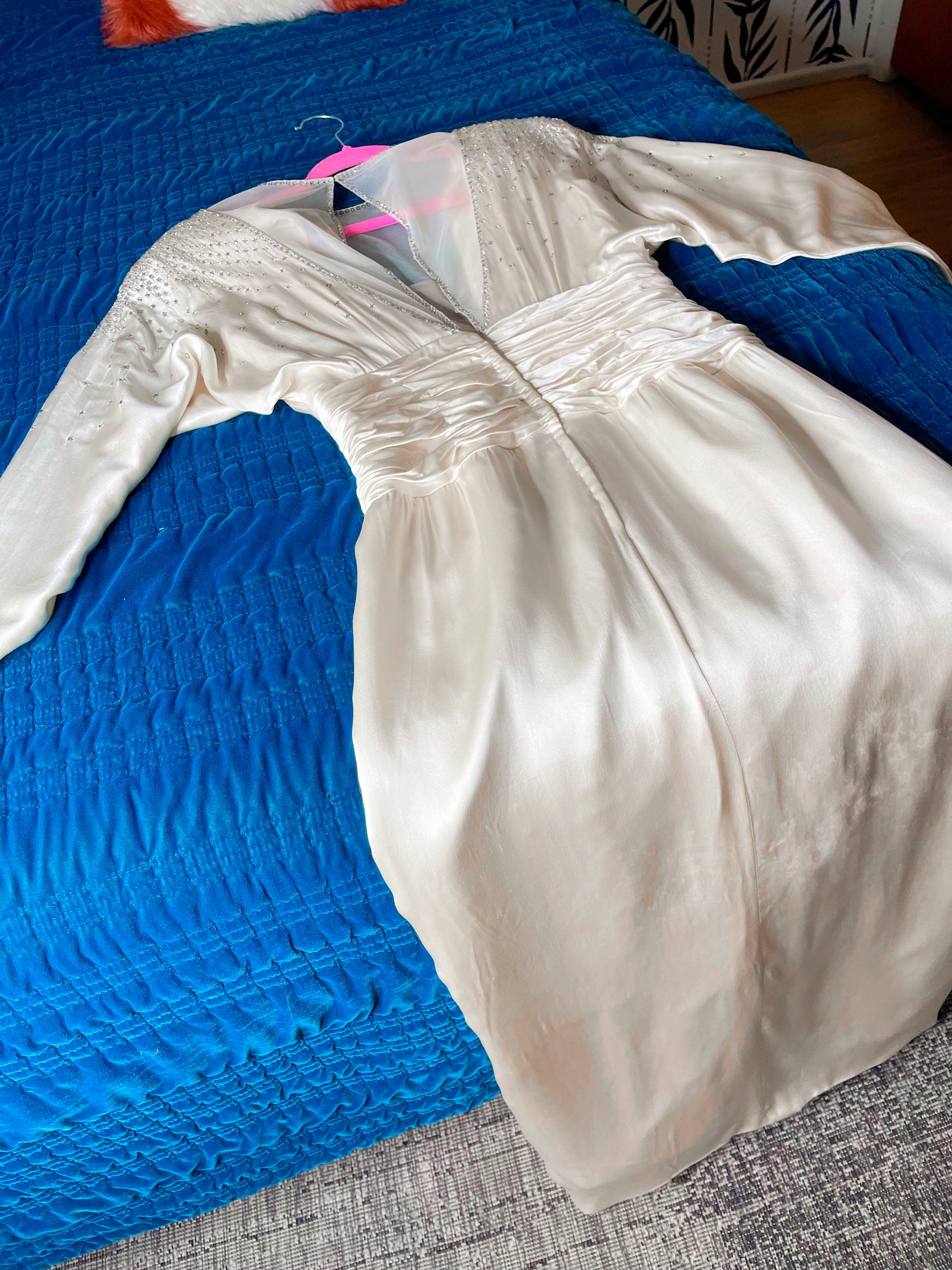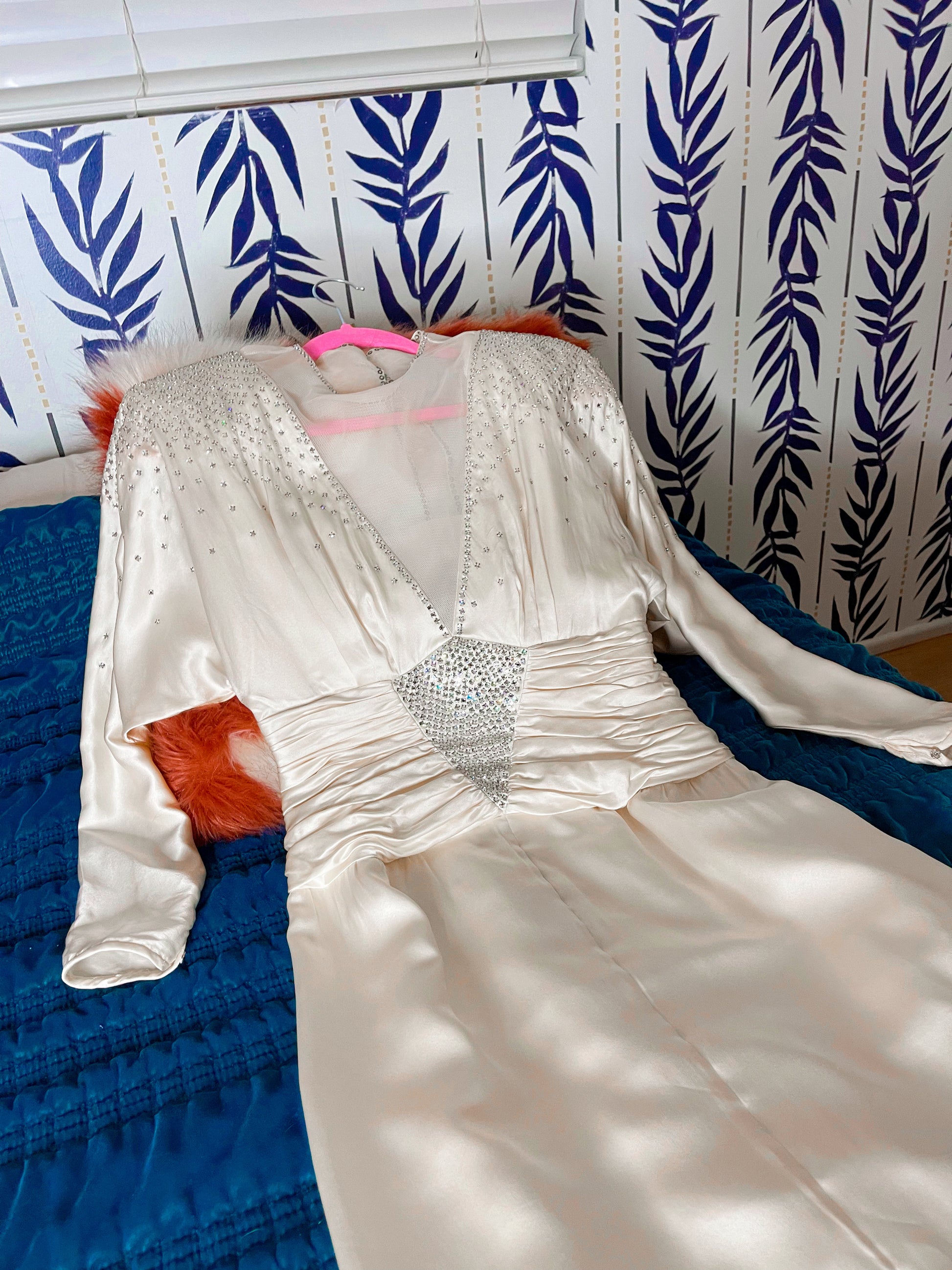 Vintage 80s Silk Rhinestone Wiggle Dress Fits Sizes XS-SM