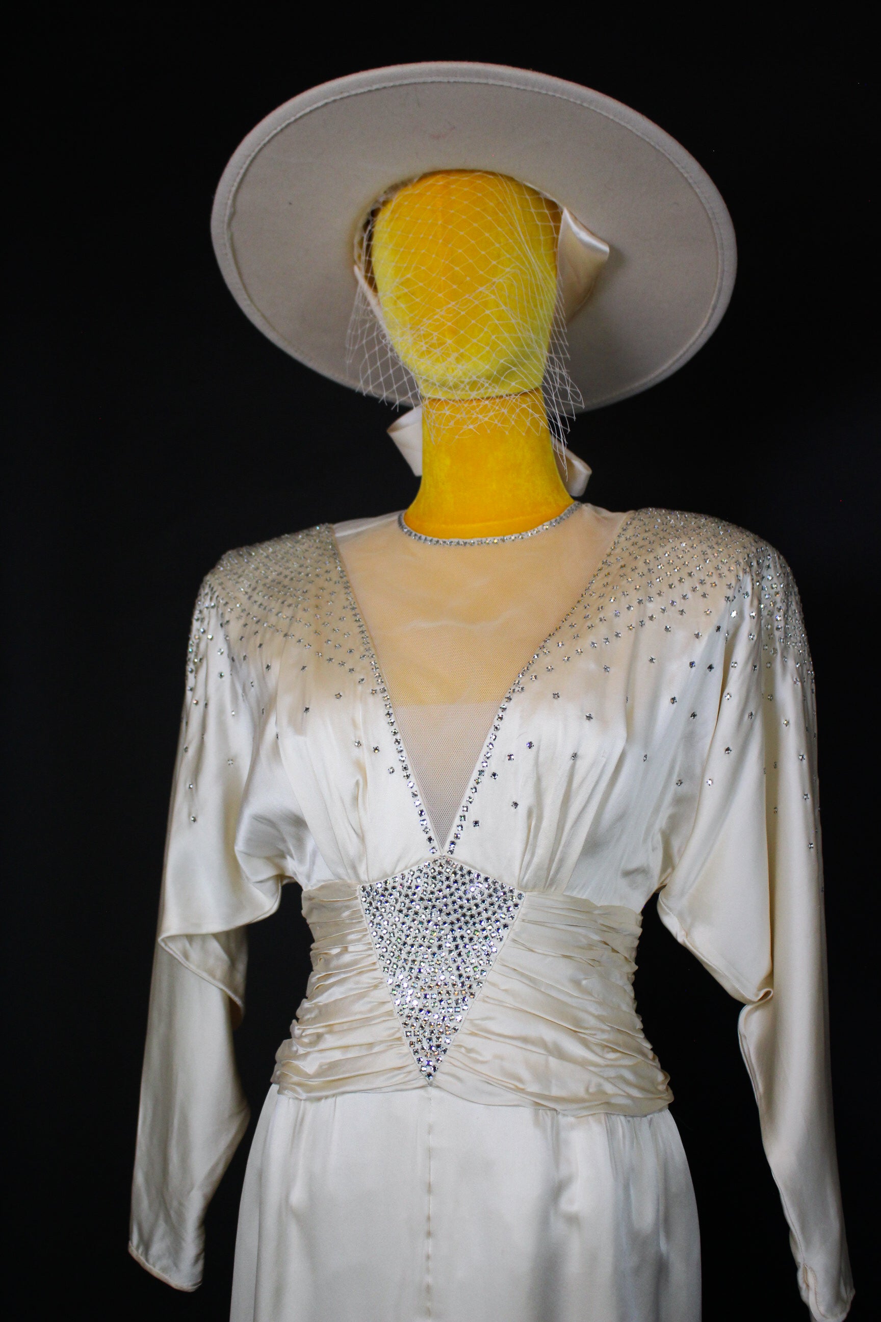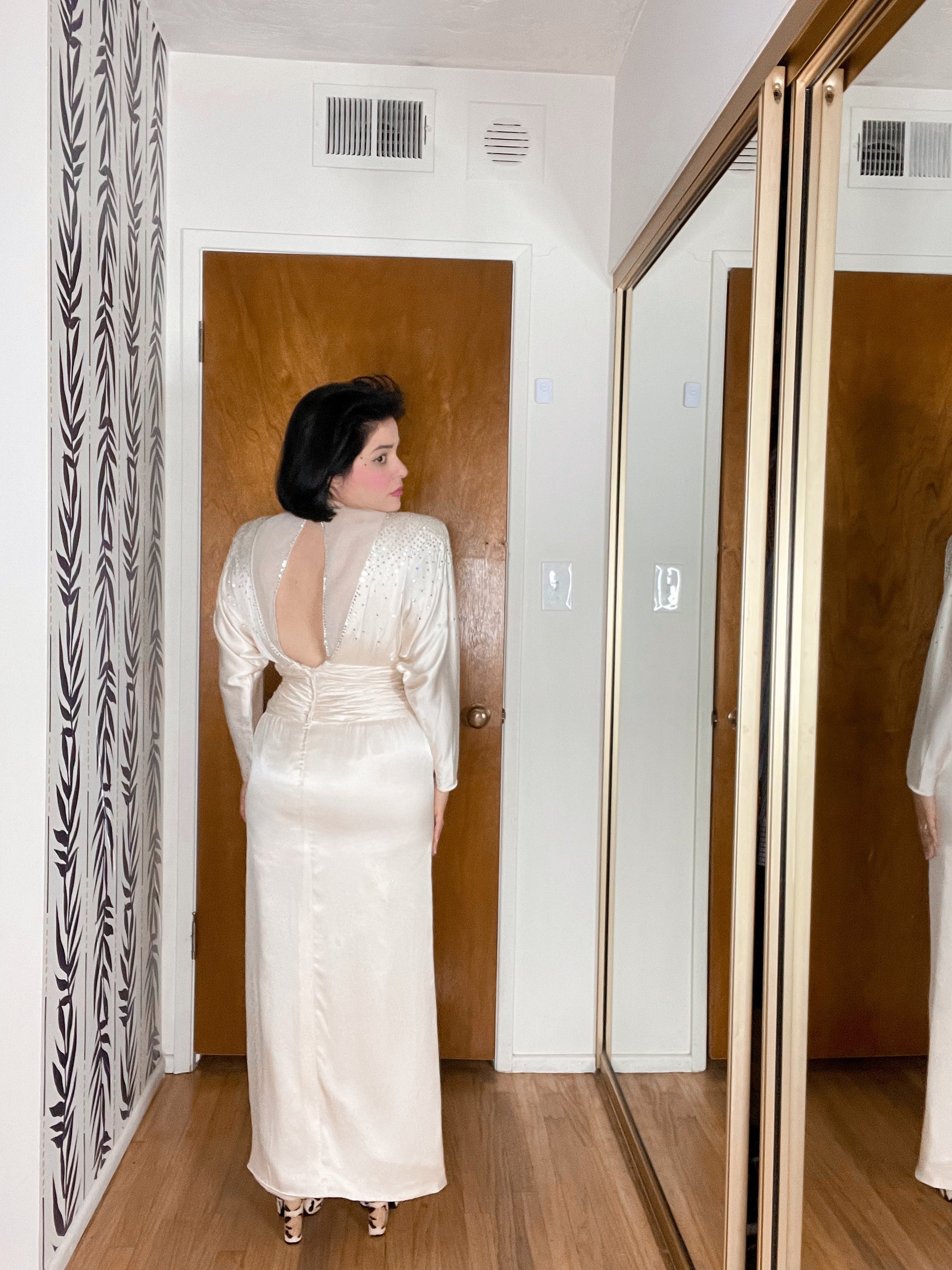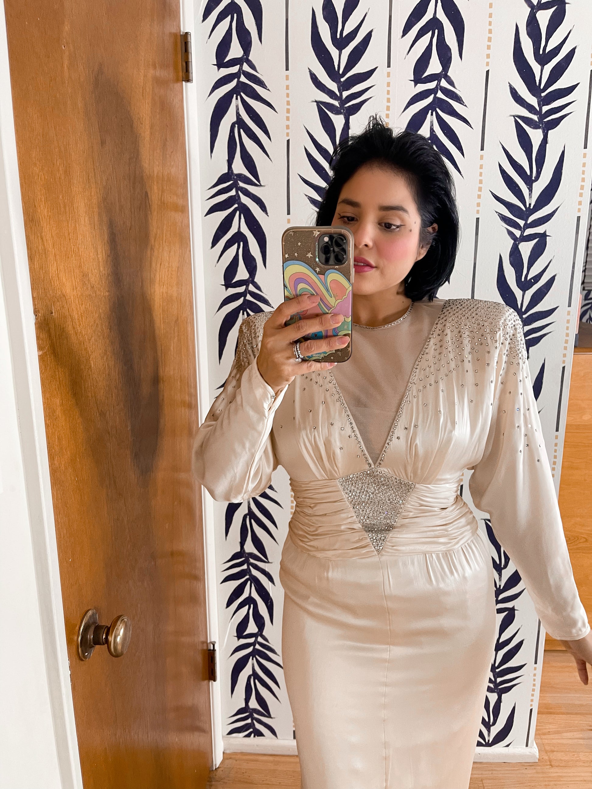 Vintage 80s Silk Rhinestone Wiggle Dress Fits Sizes XS-SM