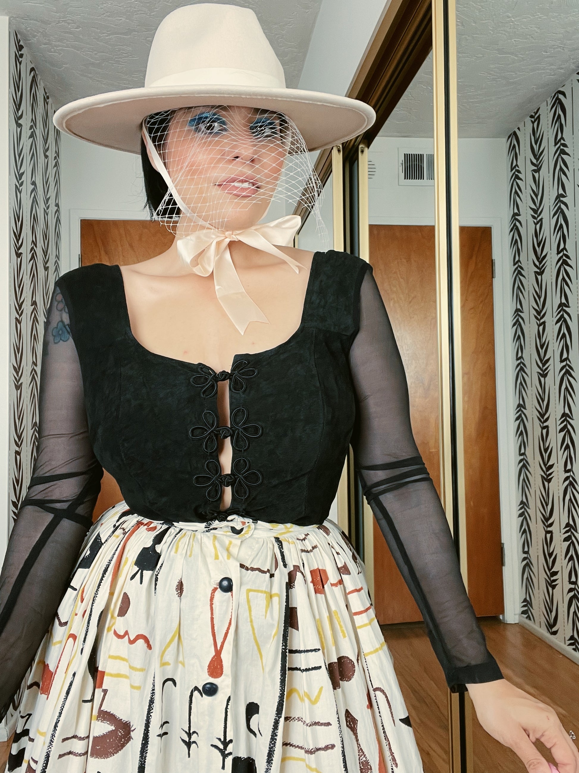 Vintage 80s Suede Peekaboo Front Sheer Sleeves Back Bodysuit Fits Sizes S-L