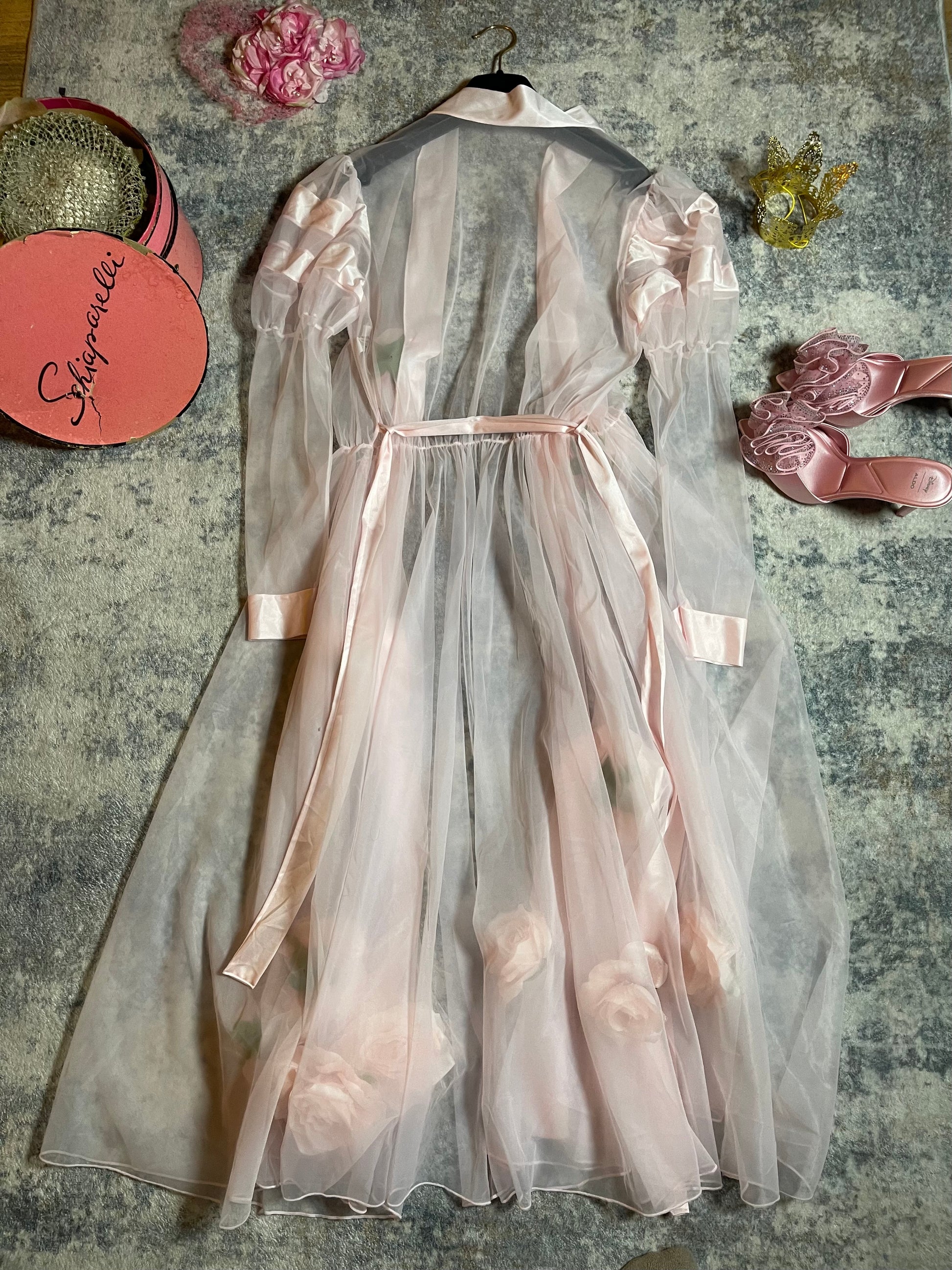 Vintage Custom 60s 70s Powder Pink Nylon Puffy Balloon Shoulders Custom 3-D Duster Fits XS-M