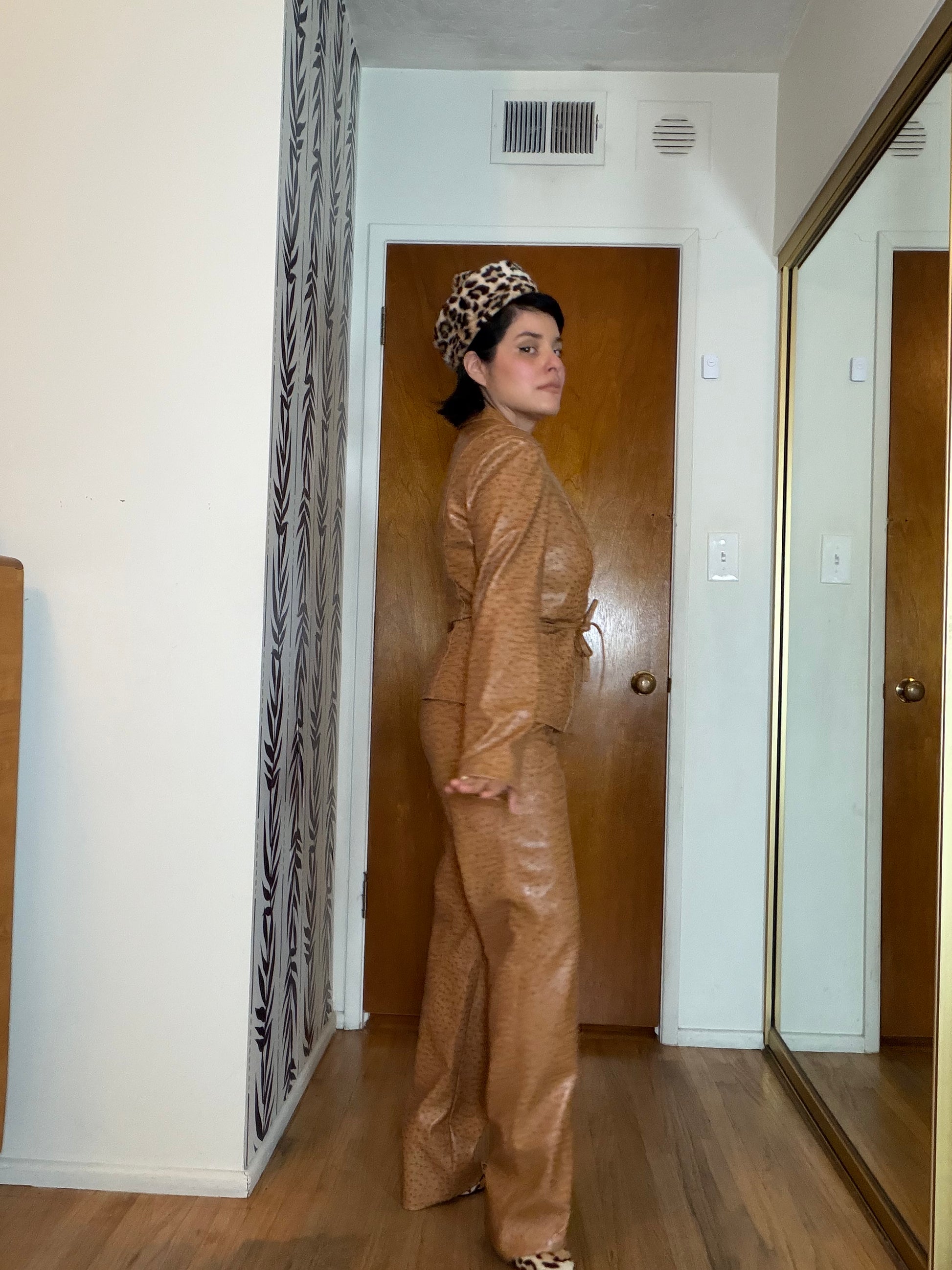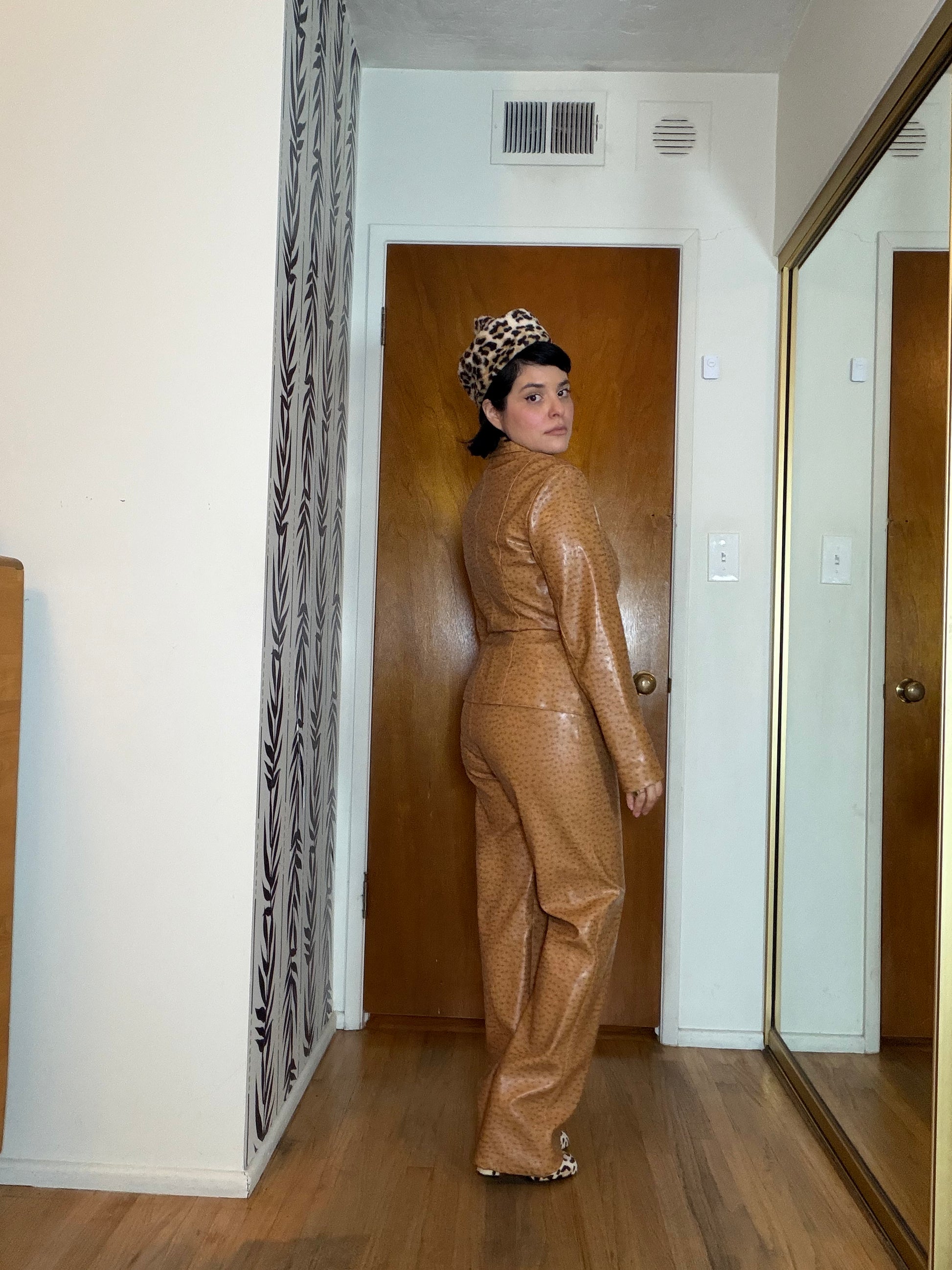 Vintage Vegan Leather 90s / Y2K Ostritch Embossed Blazer Pant Set Fits S-M
